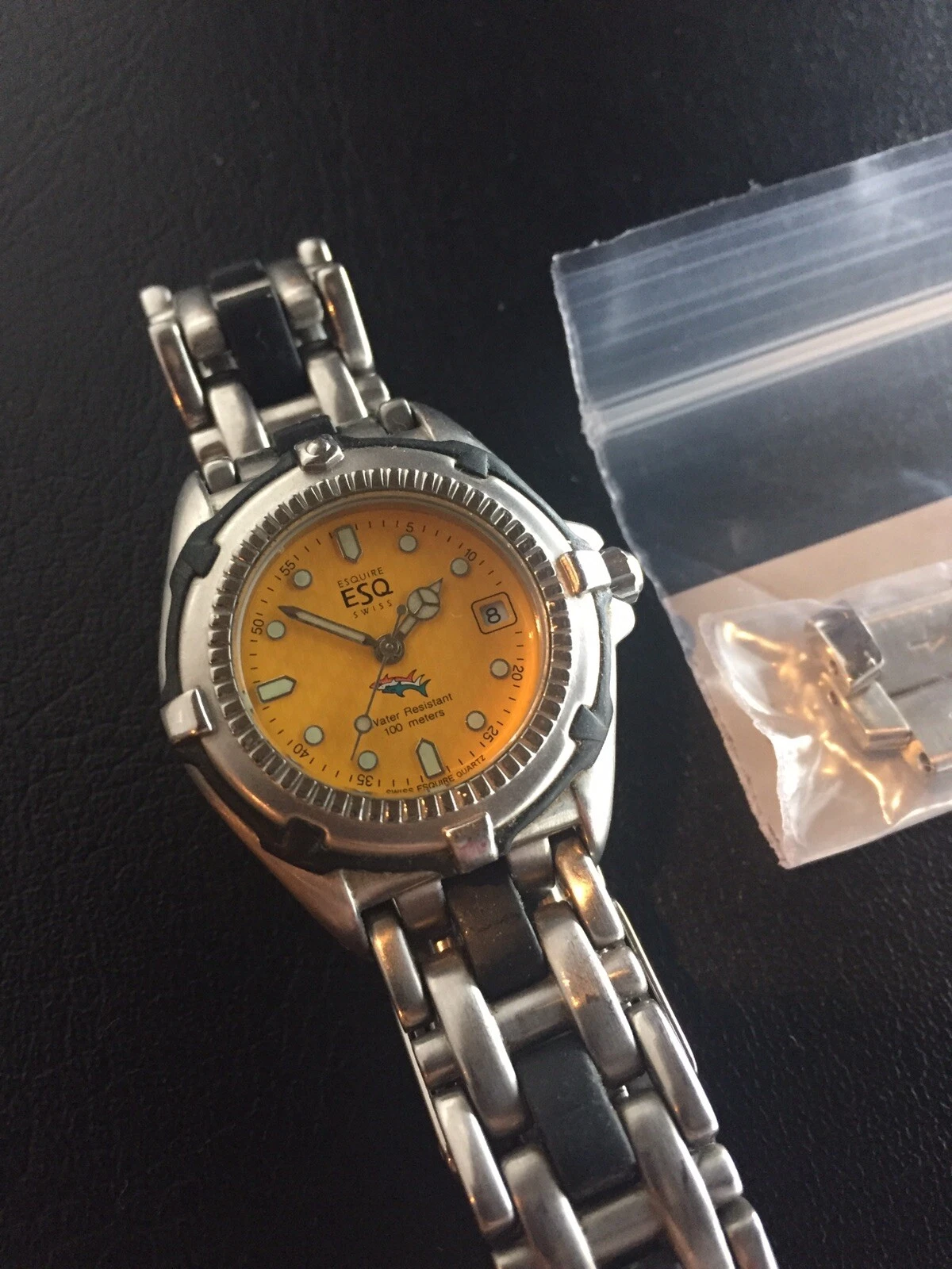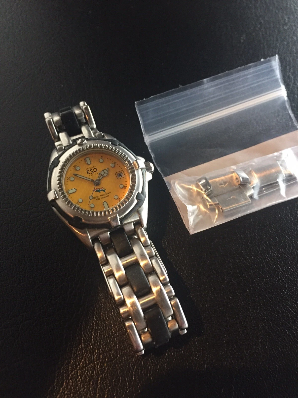 Genuine ESQ Esquire Women's Diver Watch with Yellow Face Silver Band Case