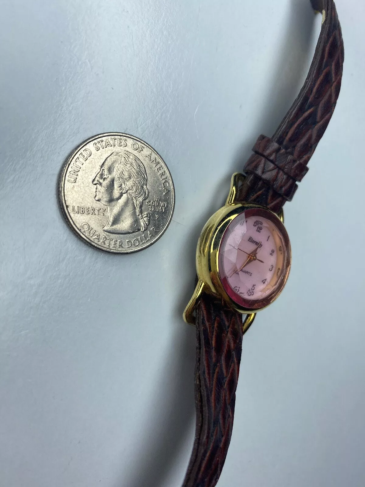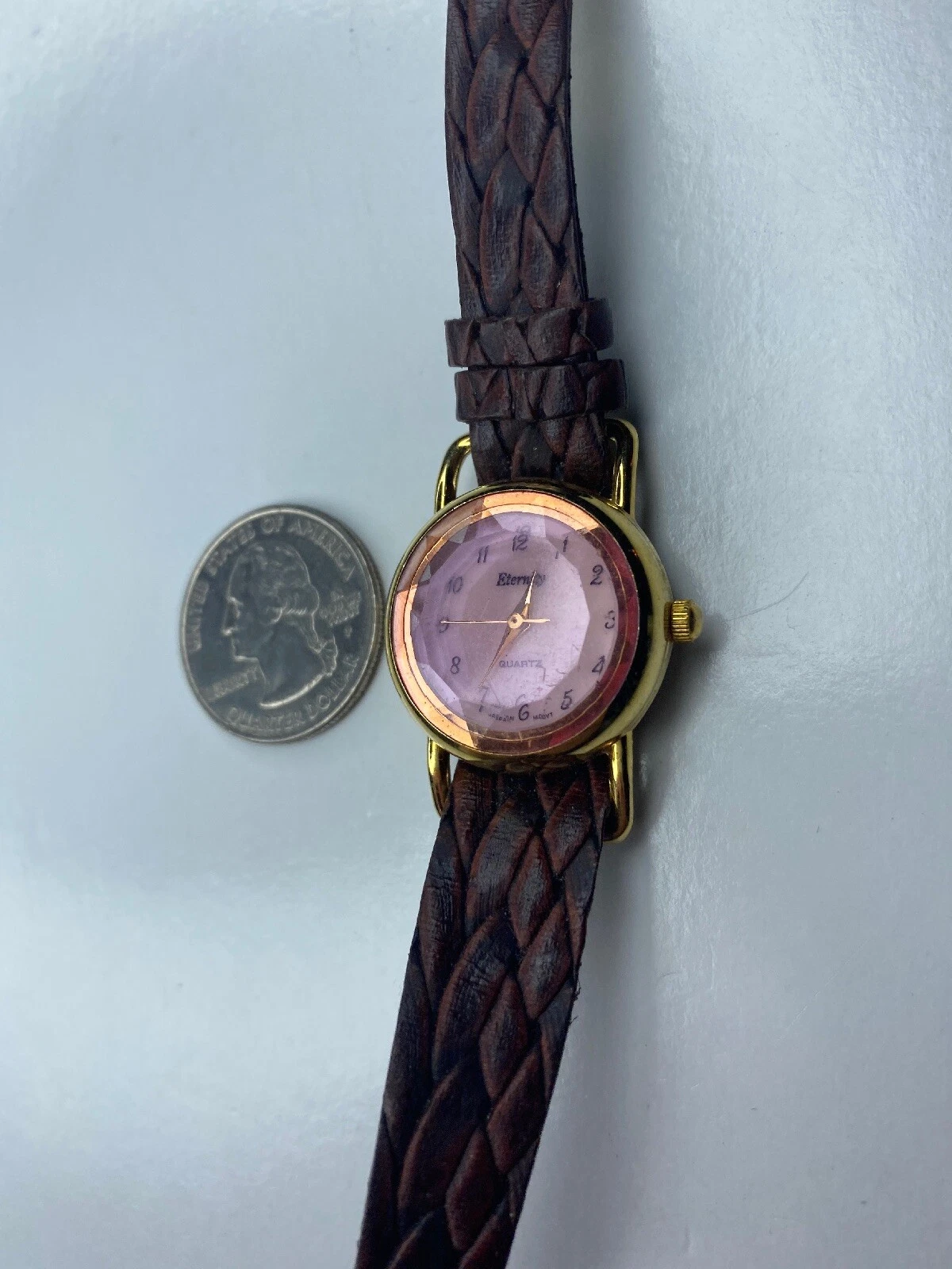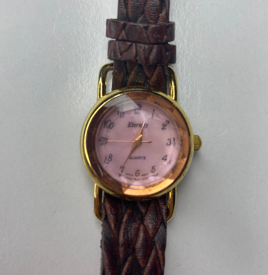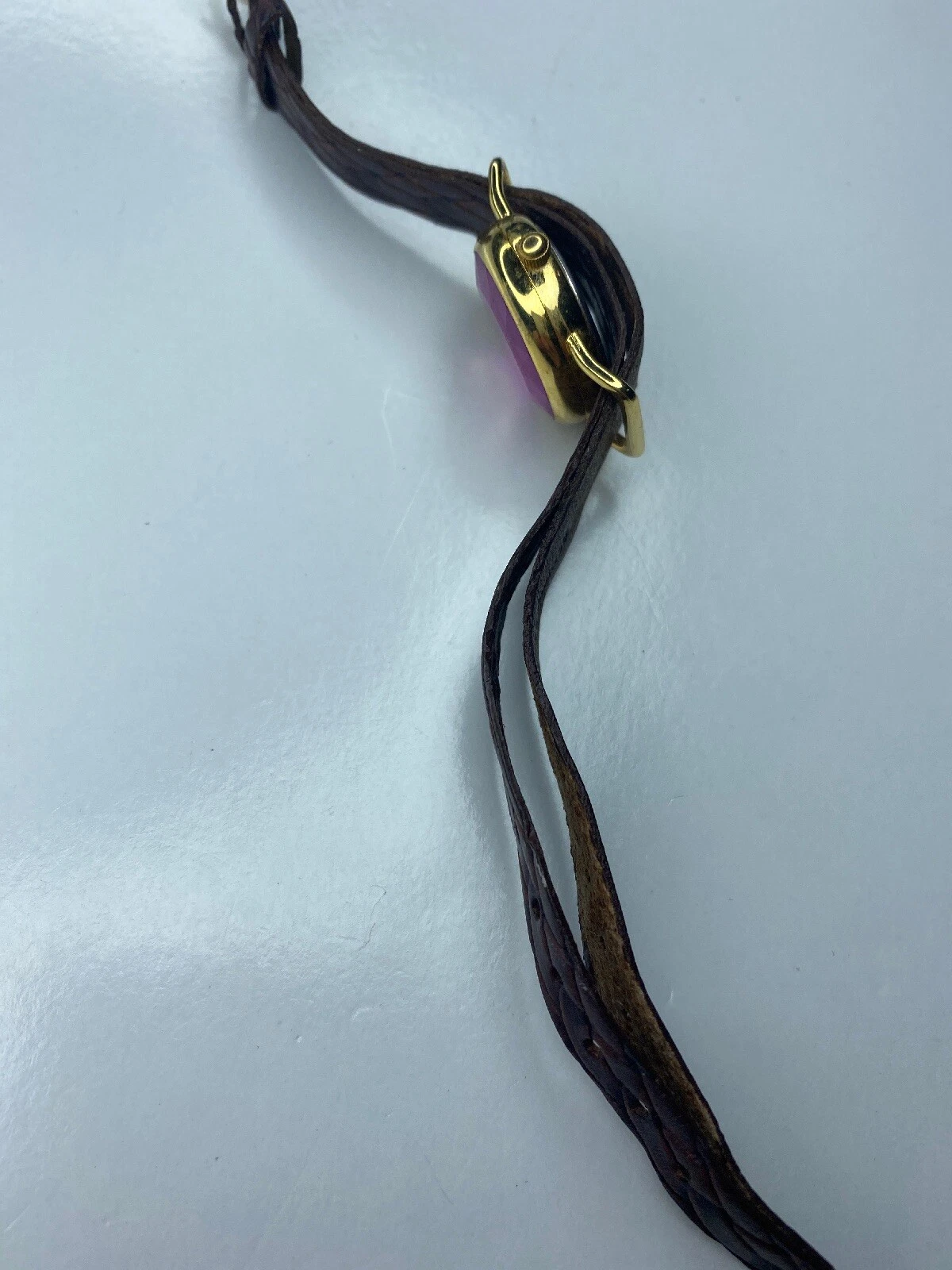E Eternity Pink Glass Japan Stainless Gold Tone Braided Leather Untested