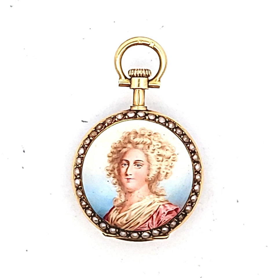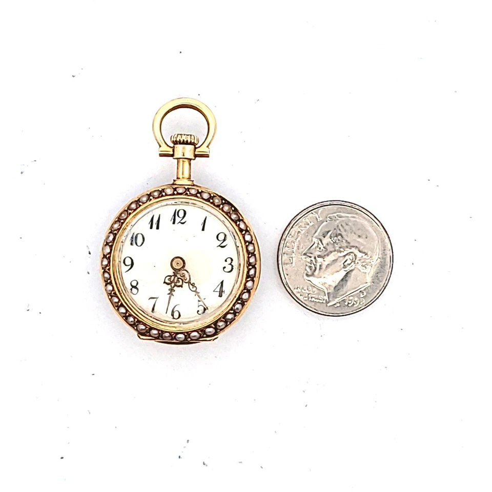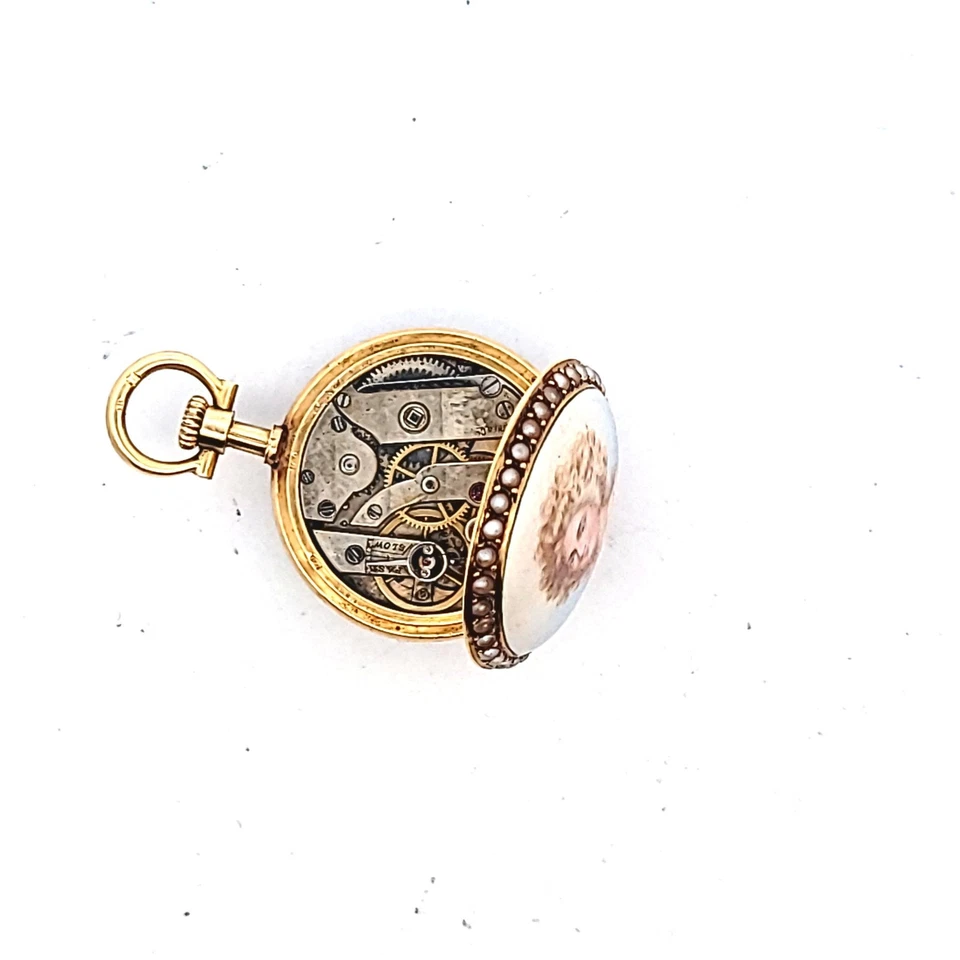 Antique 18K Yellow Gold Enamel Seed Pearl Pocket Watch AS IS