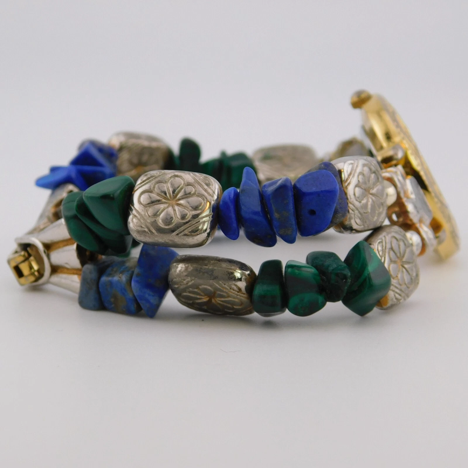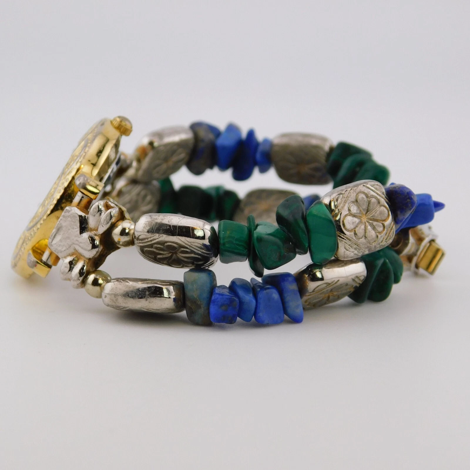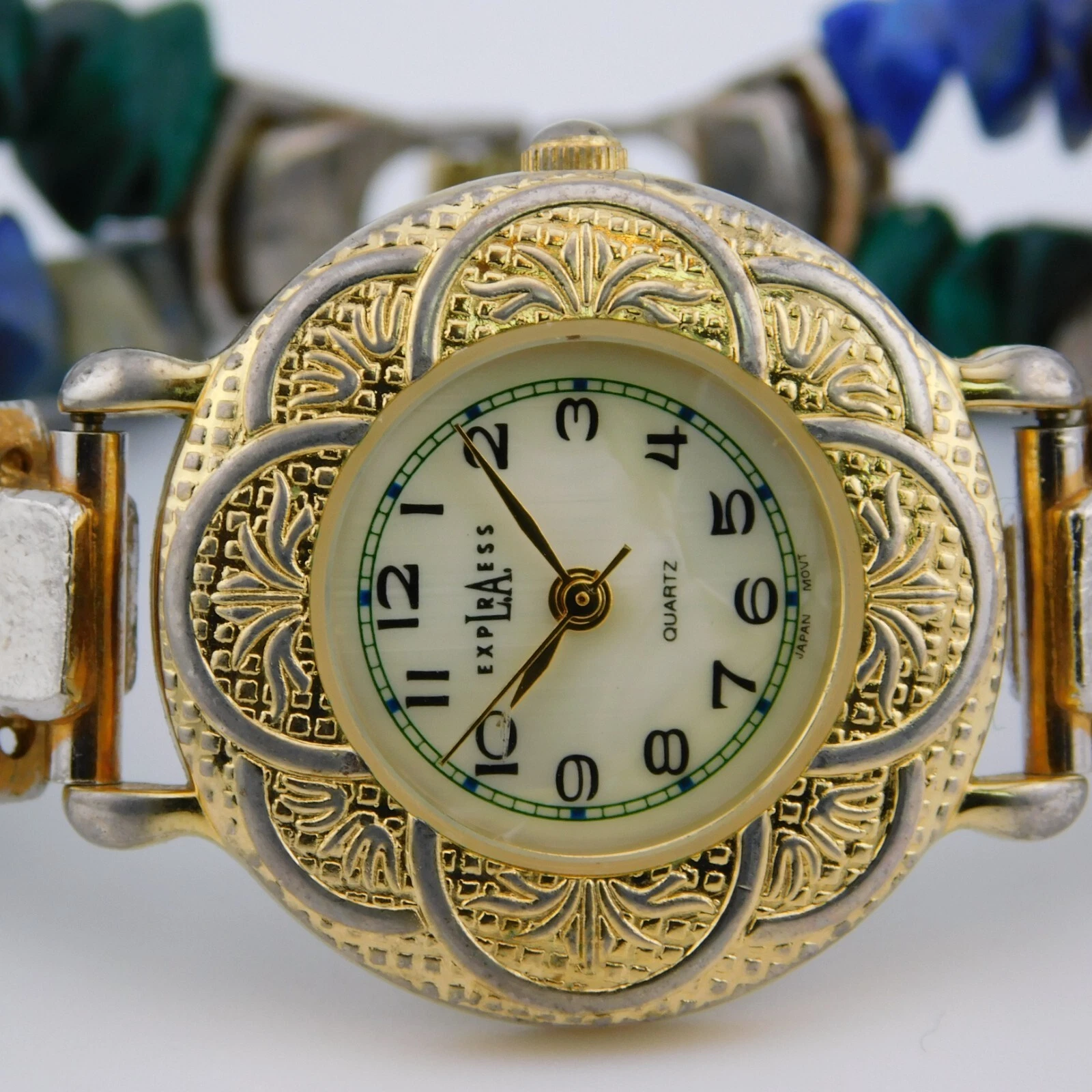 L.A. EXPRESS LAX589-073 Stones Band Quartz Women's Watch Sz. 6 1/4" New Battery