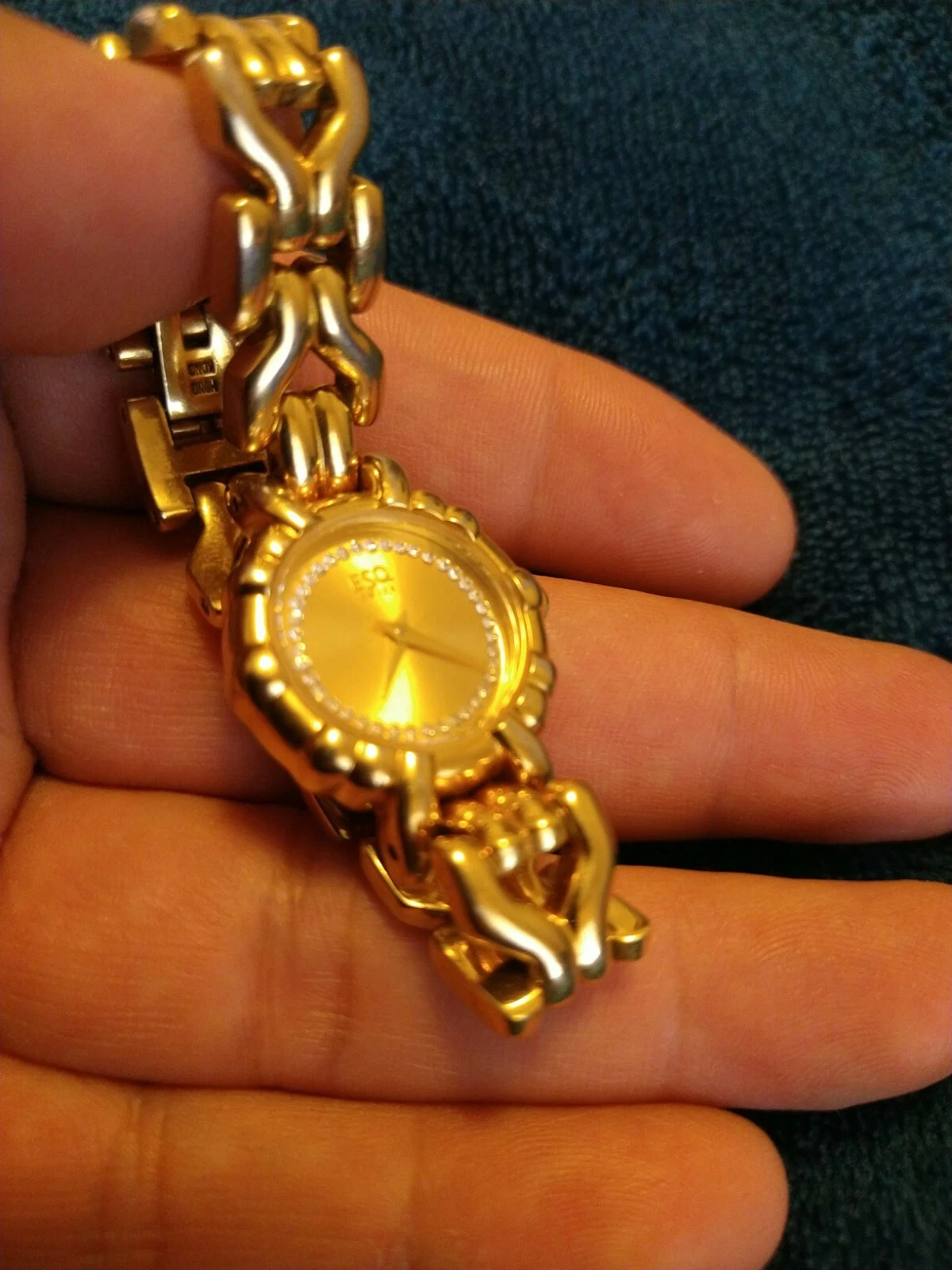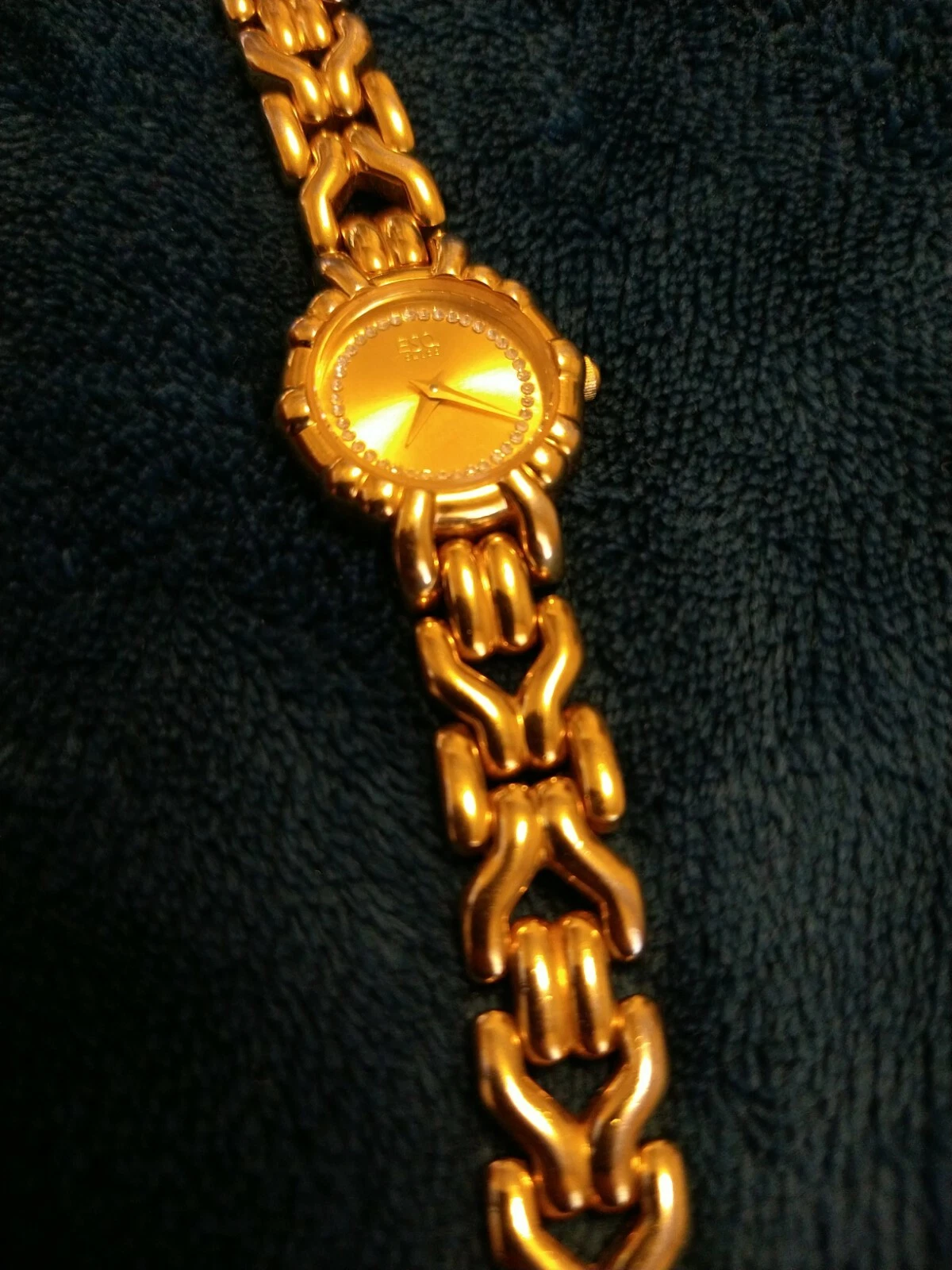 Esq Swiss 100496 Womens 14k Gold Plated Bracelet Diamond Dial Watch Battery