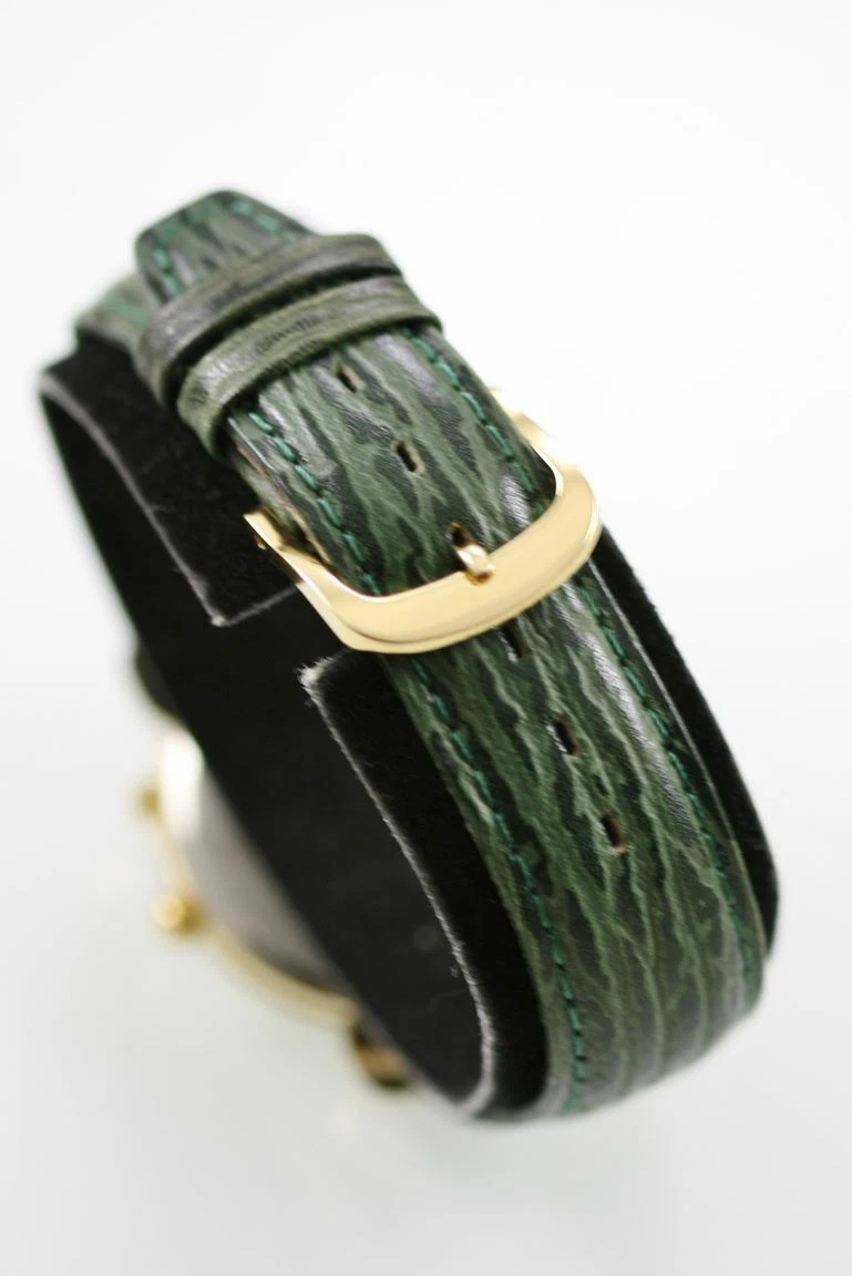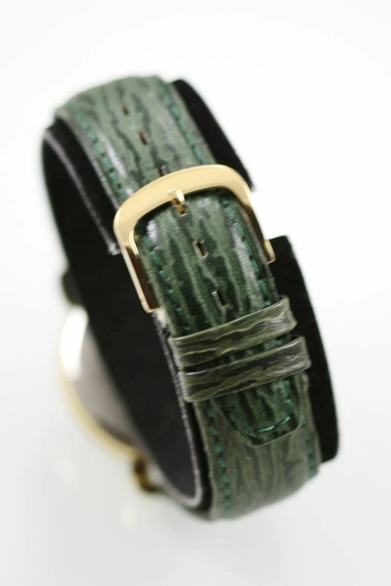 LA Express Watch Men Stainless Steel Gold Leather Green Battery White Quartz