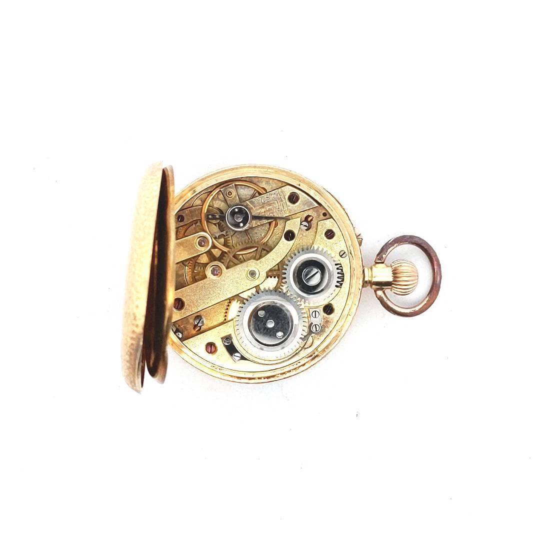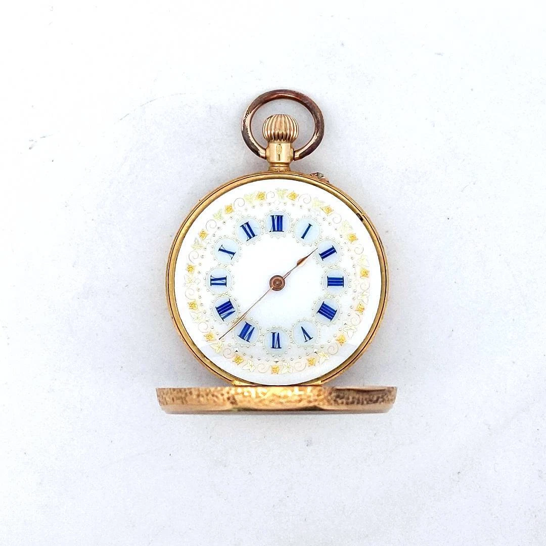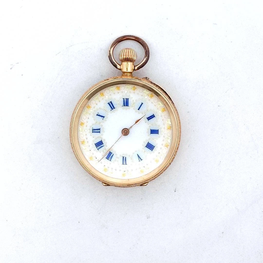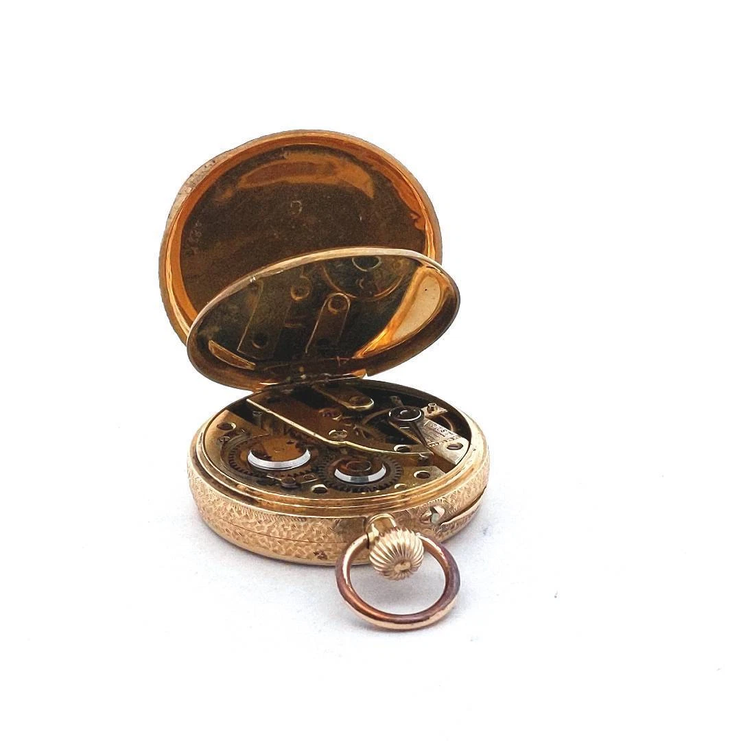Antique 18K Yellow Gold Swiis Open Face Pocket Watch Fancy Dial