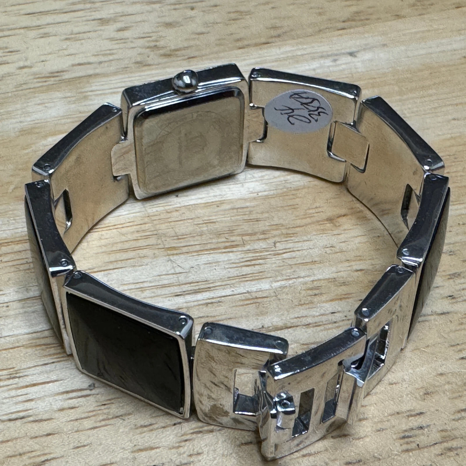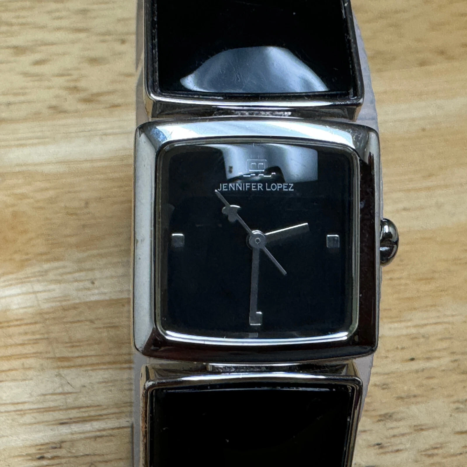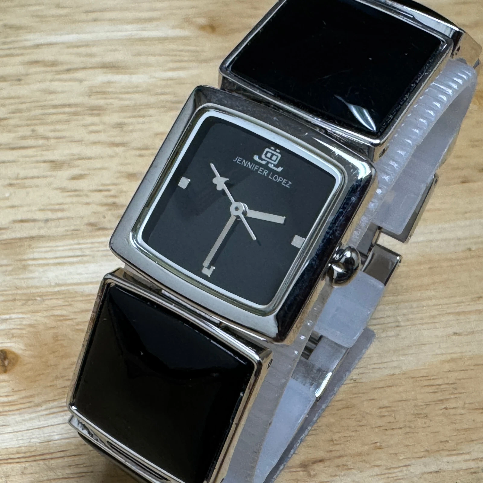 Jennifer Lopez Quartz Watch Women Silver Steel Black Square Cuff New Battery