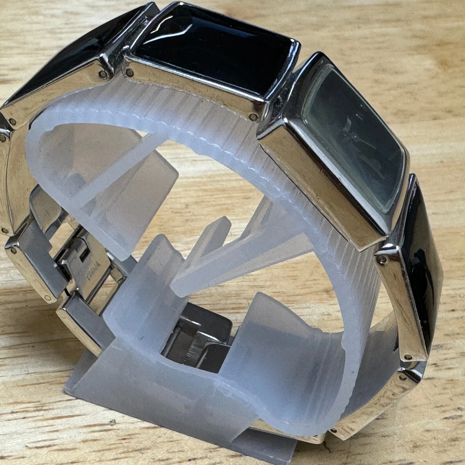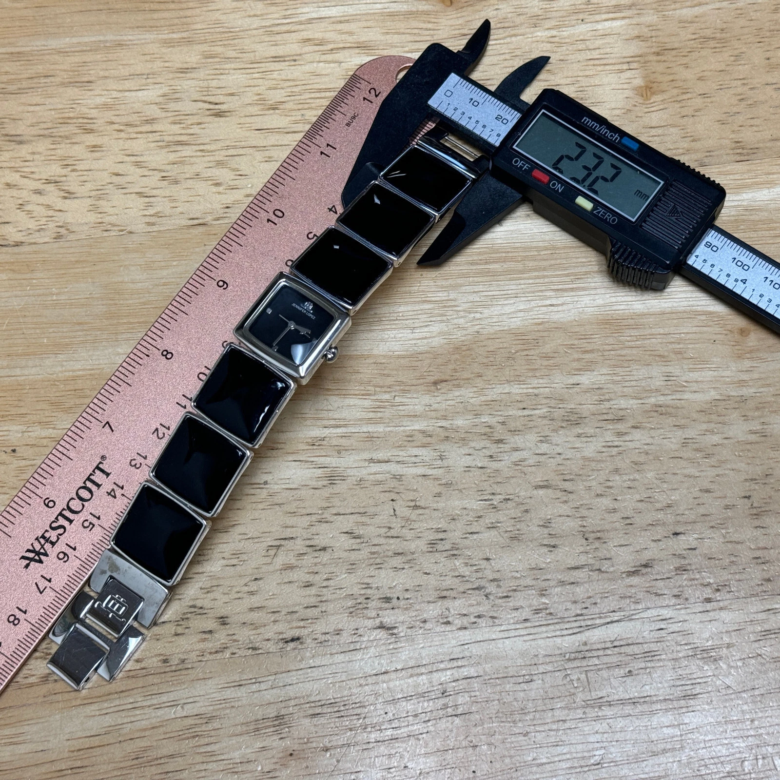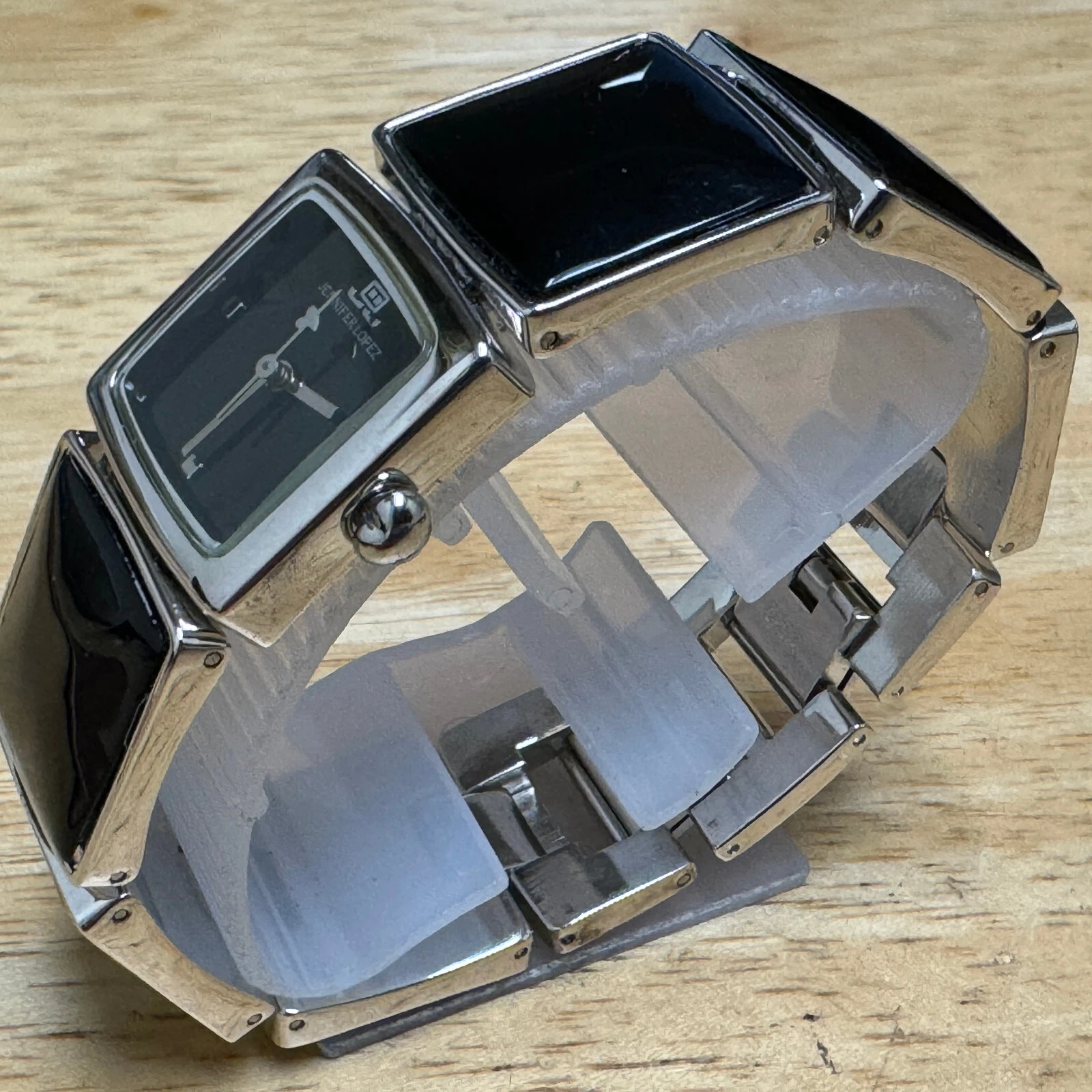 Jennifer Lopez Quartz Watch Women Silver Steel Black Square Cuff New Battery