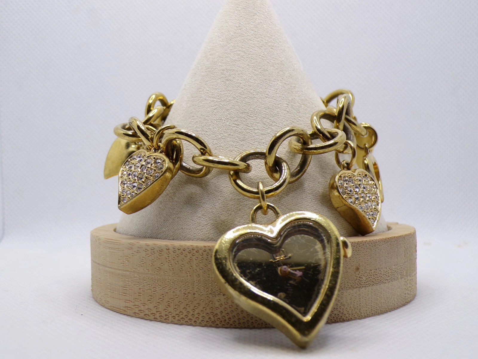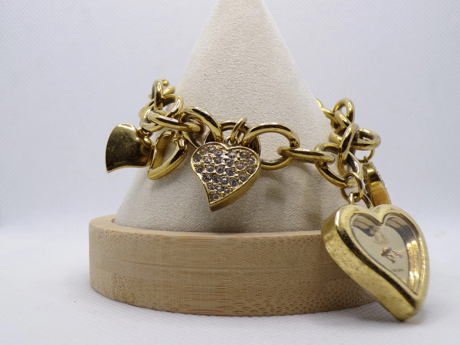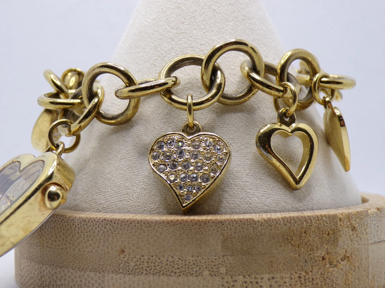 Jennifer Lopez Womens Gold Tone Heart Bracelet Analog Quartz Watch (Not Working)