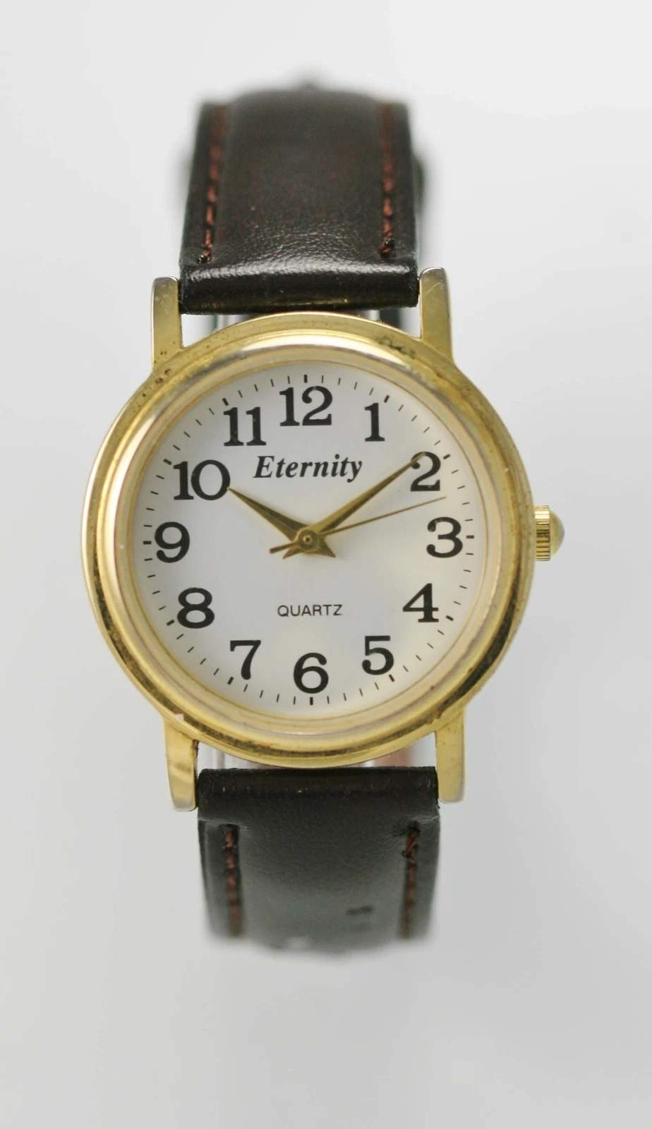 Eternity Womens Watch White Stainless Gold Brown Leather Battery Water Re Quartz