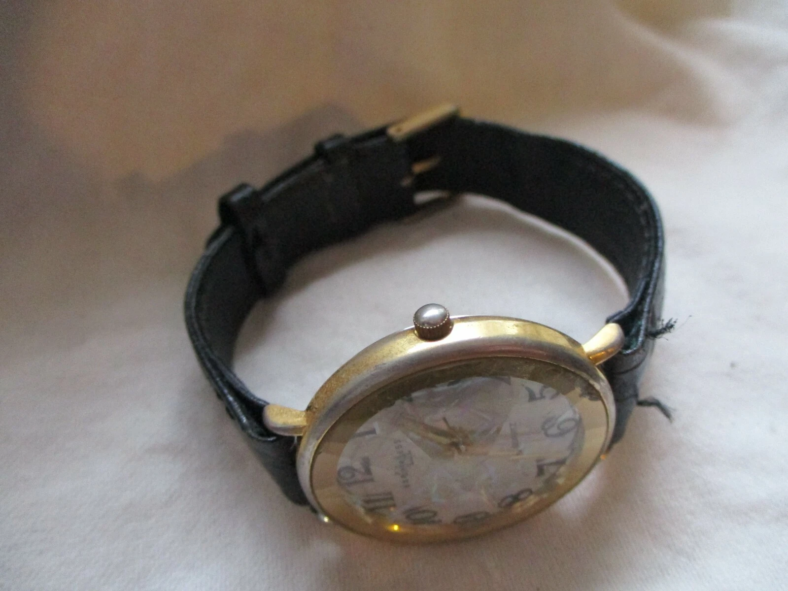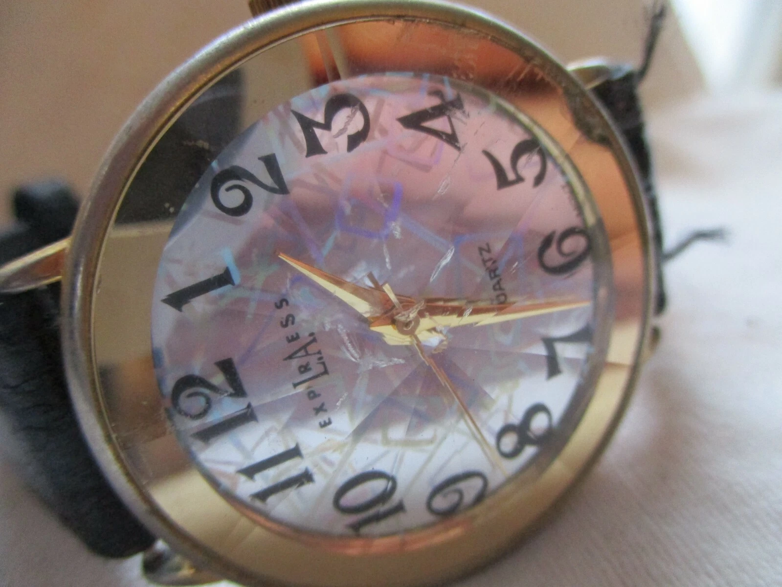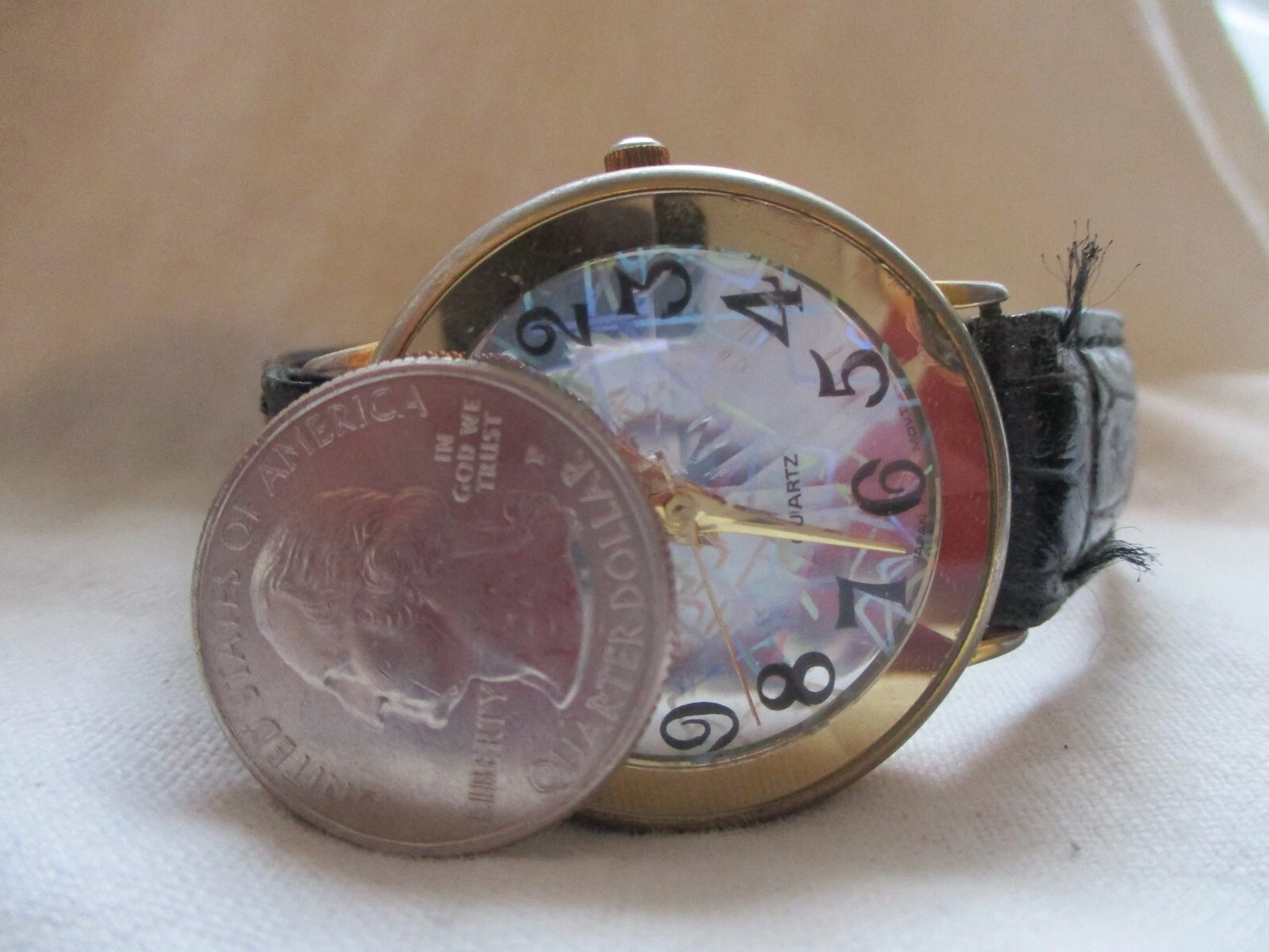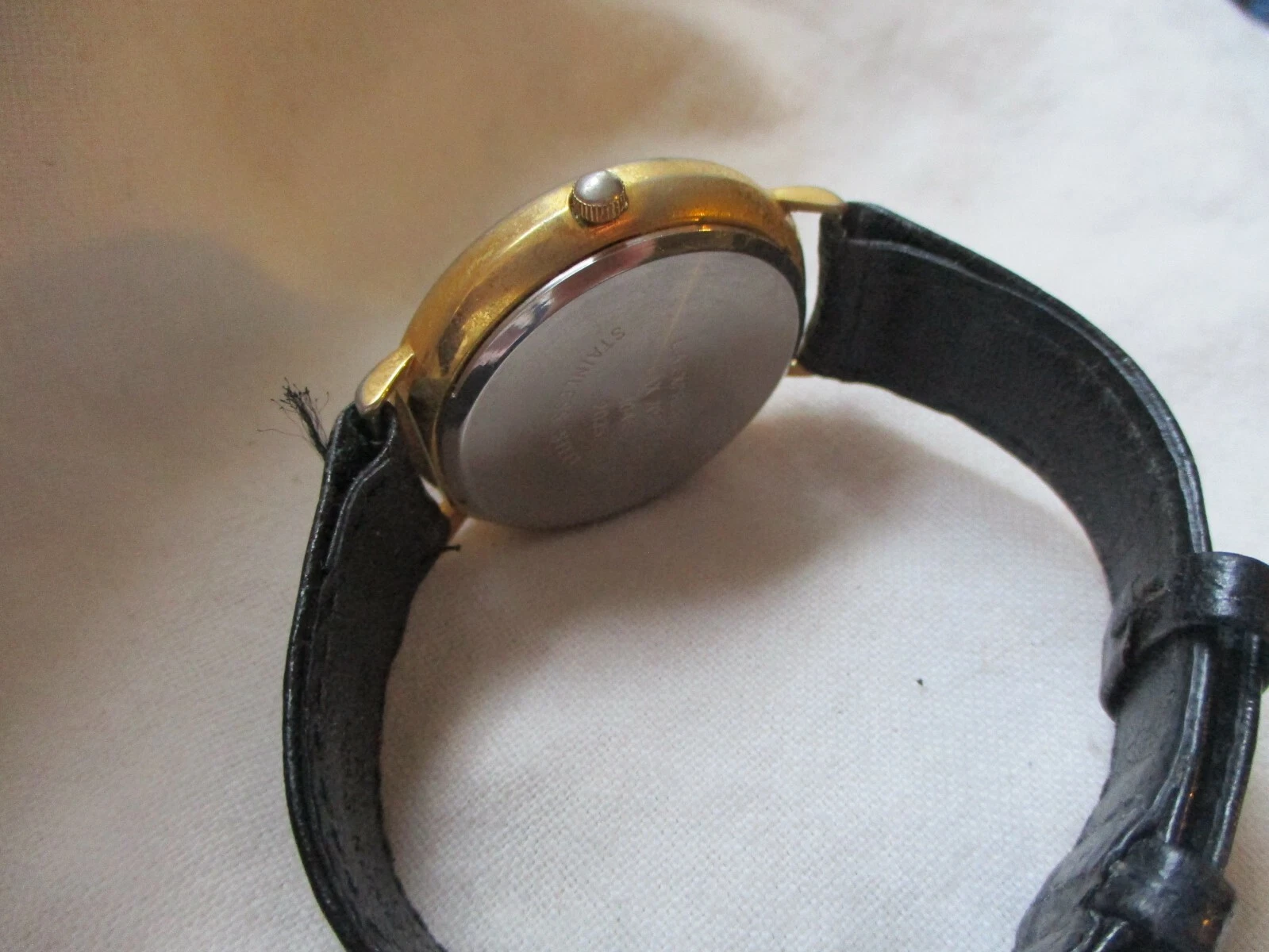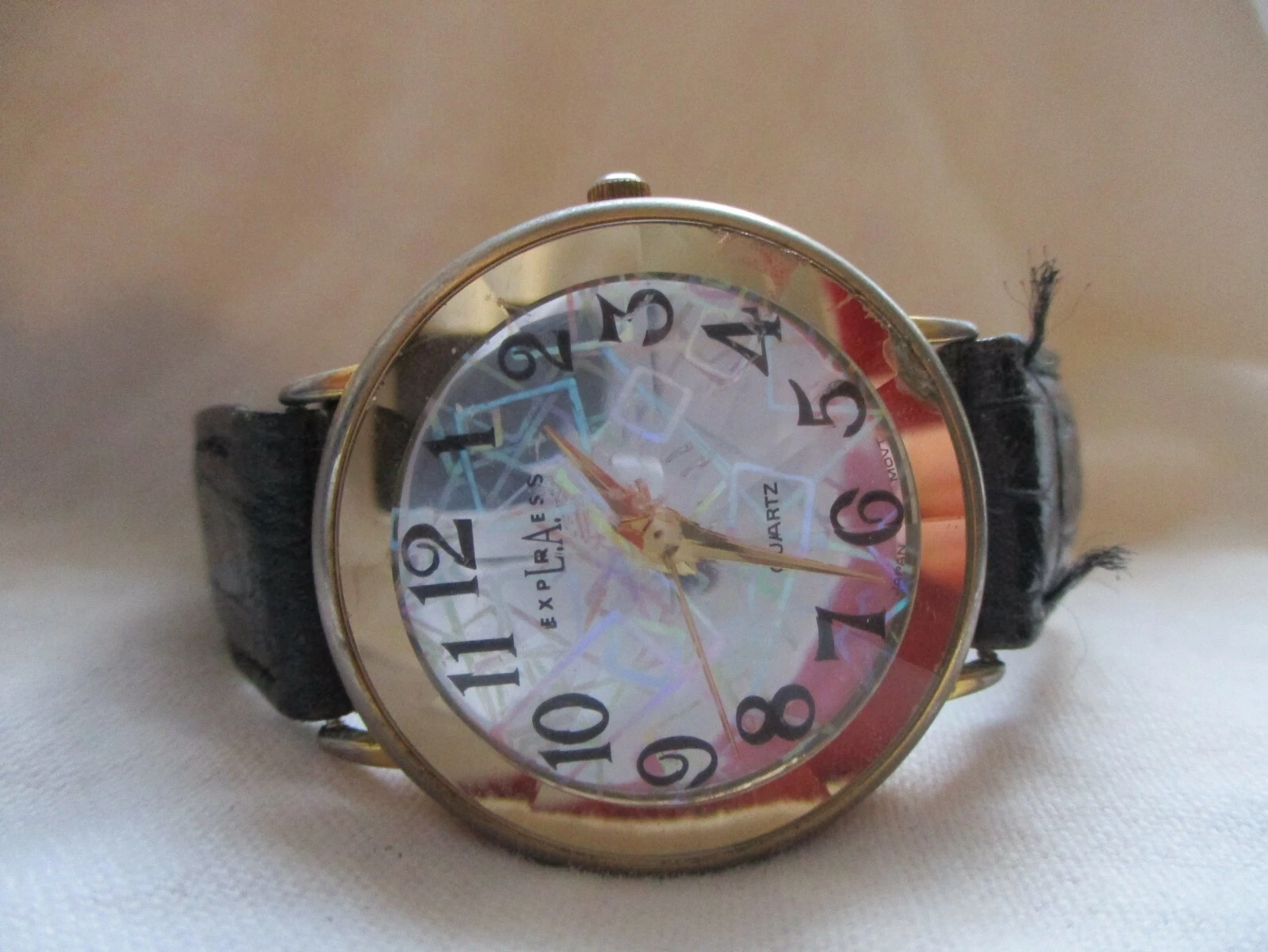 LA Express Black & Gold Toned Wristwatch w/ Adjustable Buckle Band