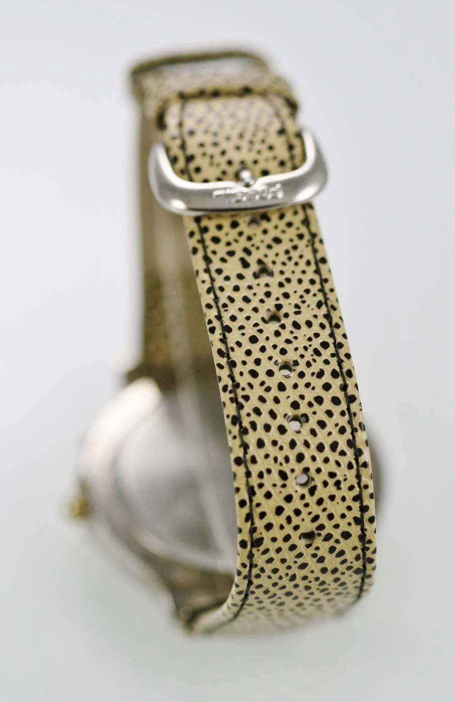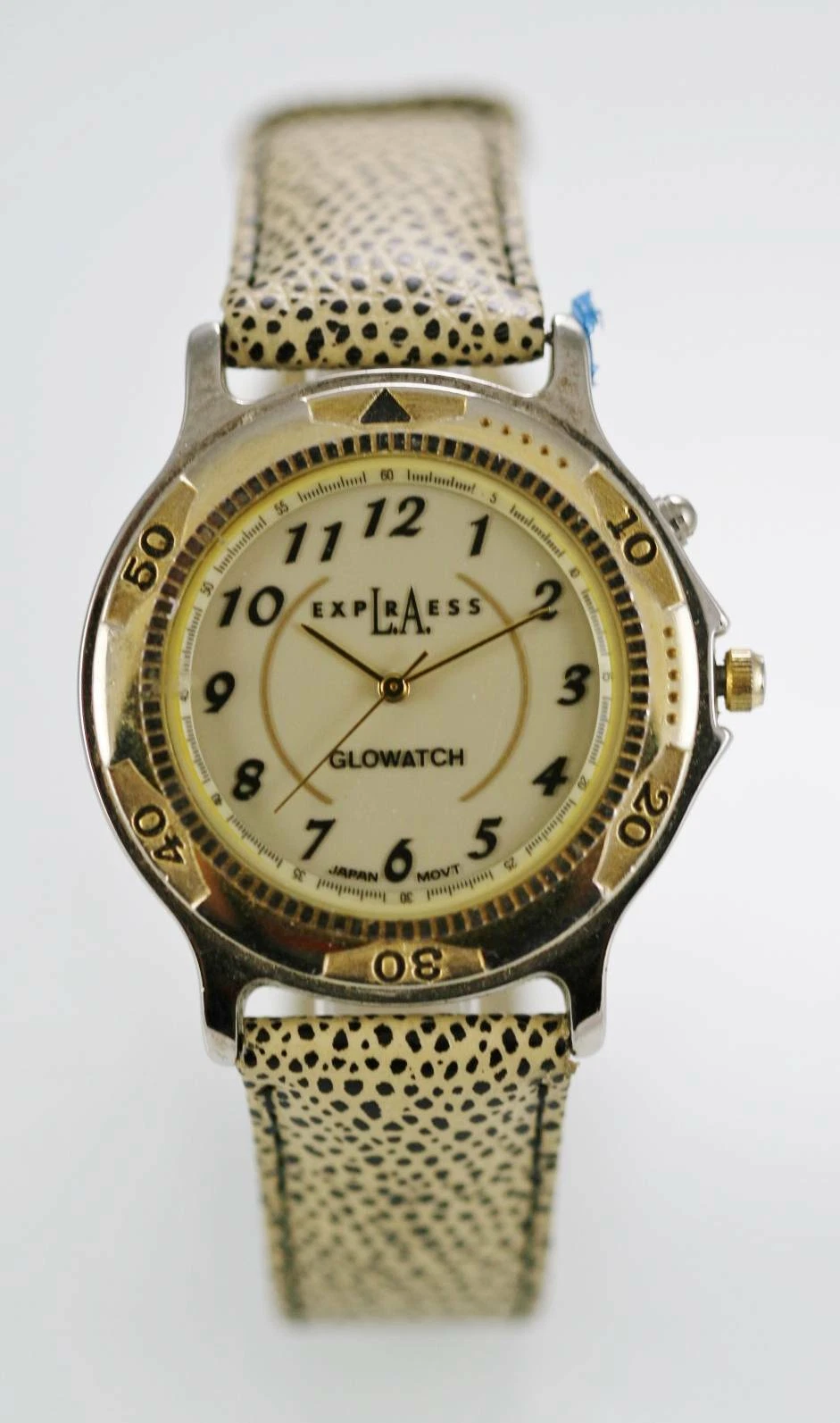 L A Express Watch Mens Stainless Silver Gold Beige Spotted Leather Light Quartz