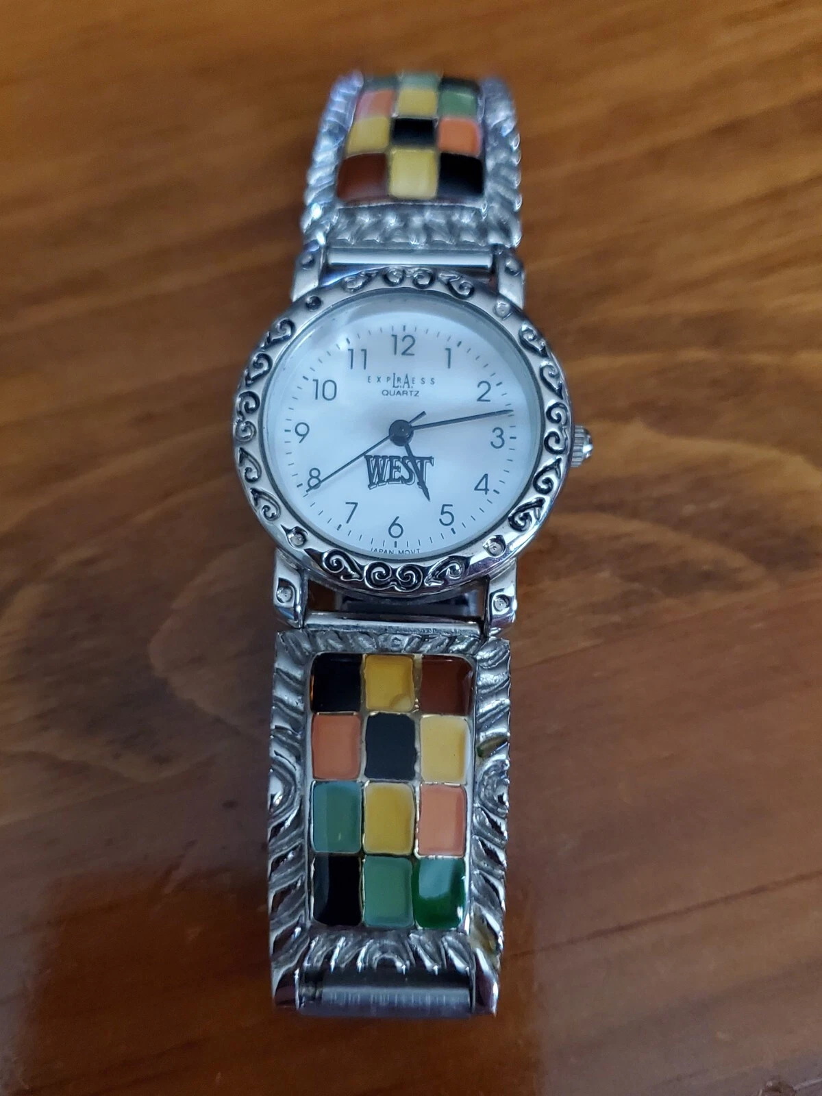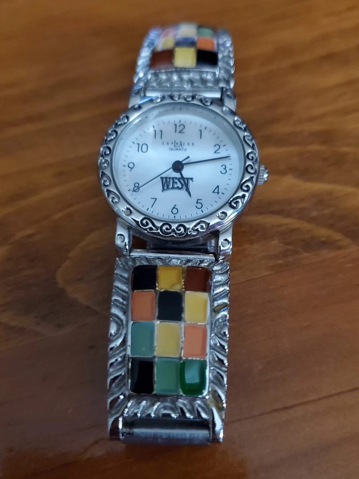 Beautiful LA Express/West Southwestern Inlay Stretch Wristwatch Silver Tone.