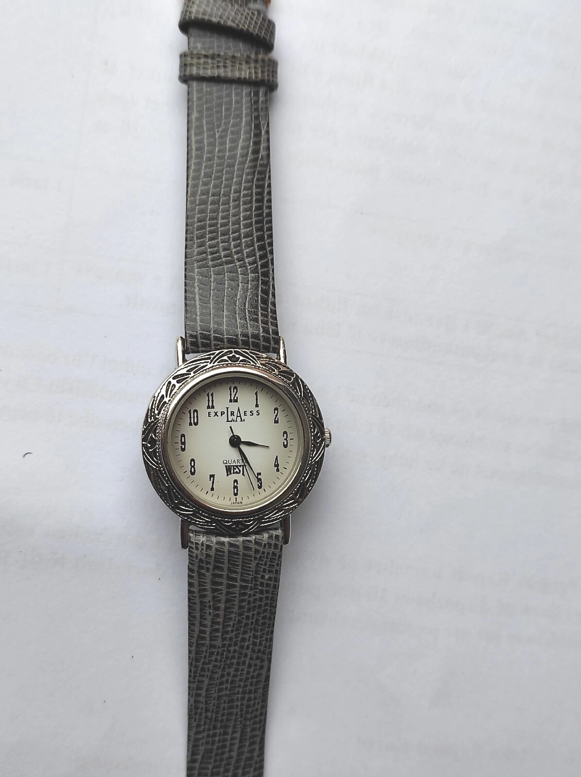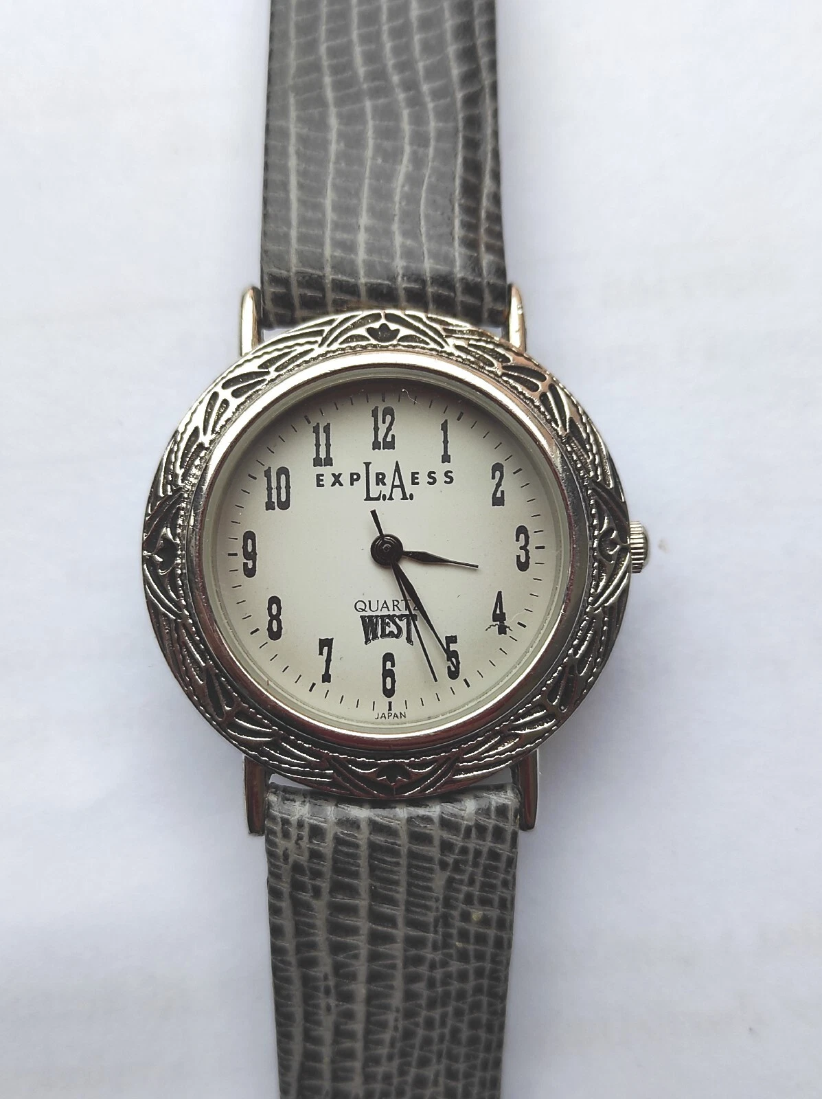L.A Express West ladies gray lizard calf leather strap quartz watch