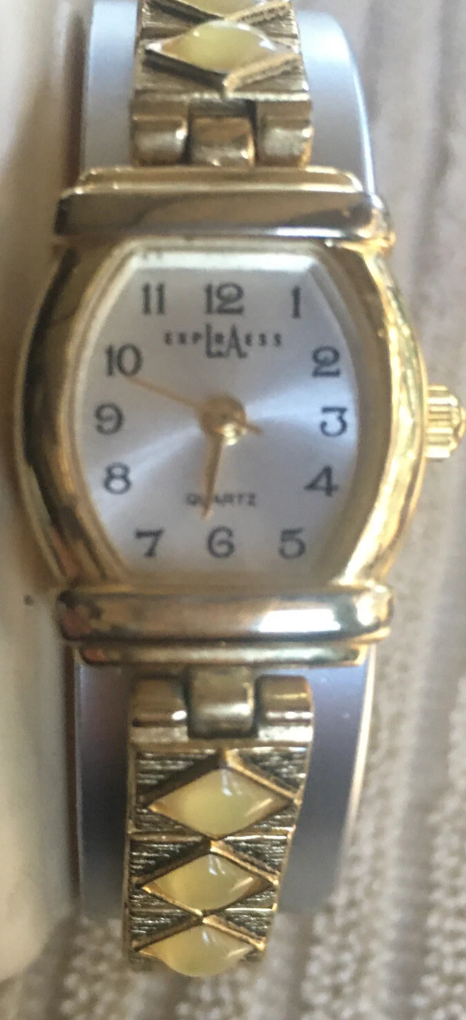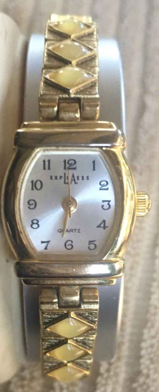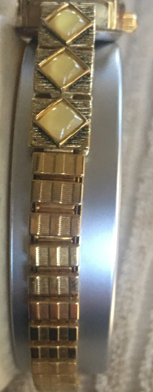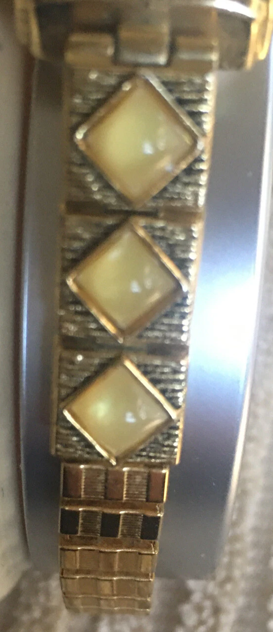 Vintage LA EXPRESS Quartz WATCH Yellow Art Deco Stones Stretch Band Retro WORKS