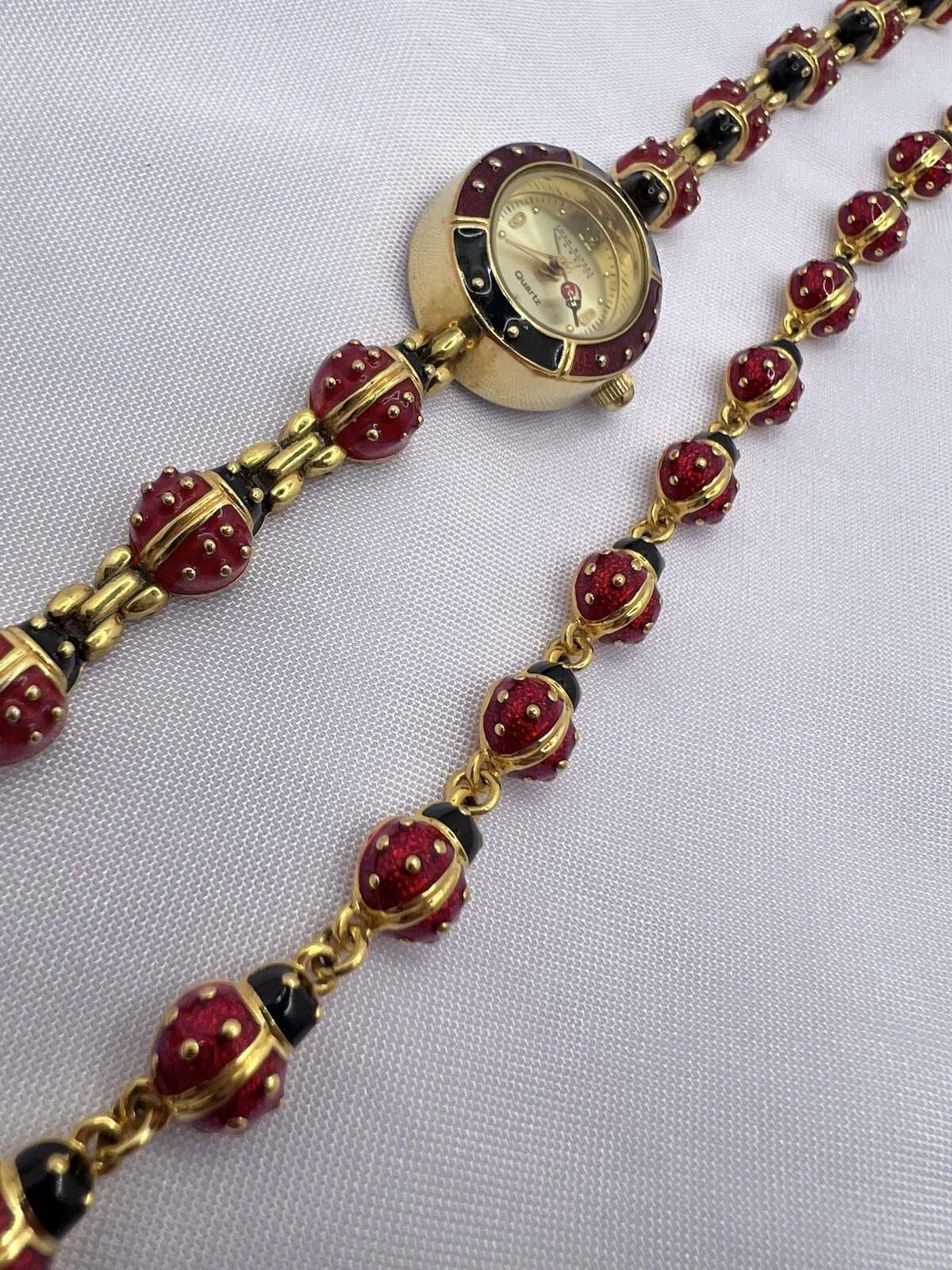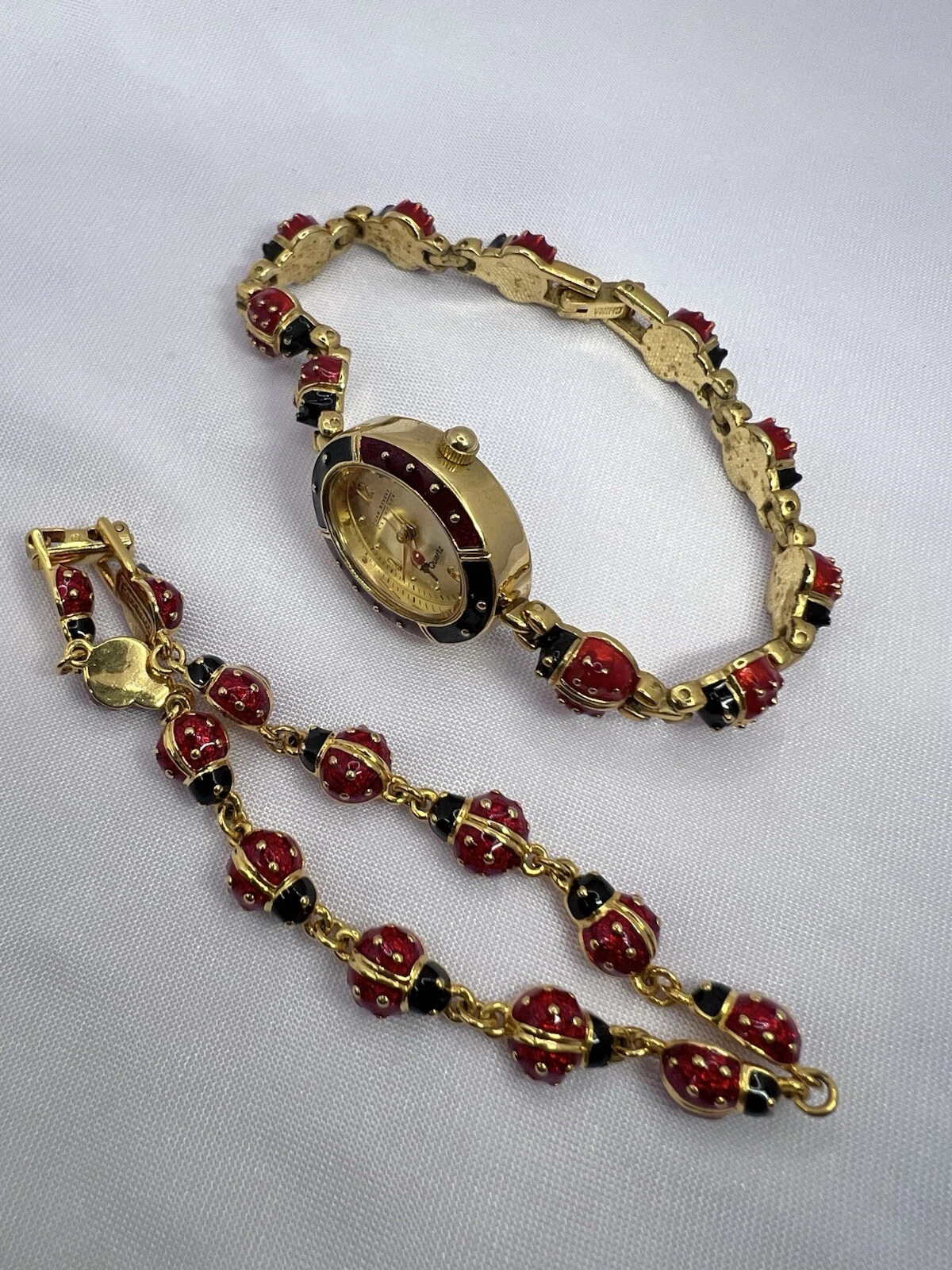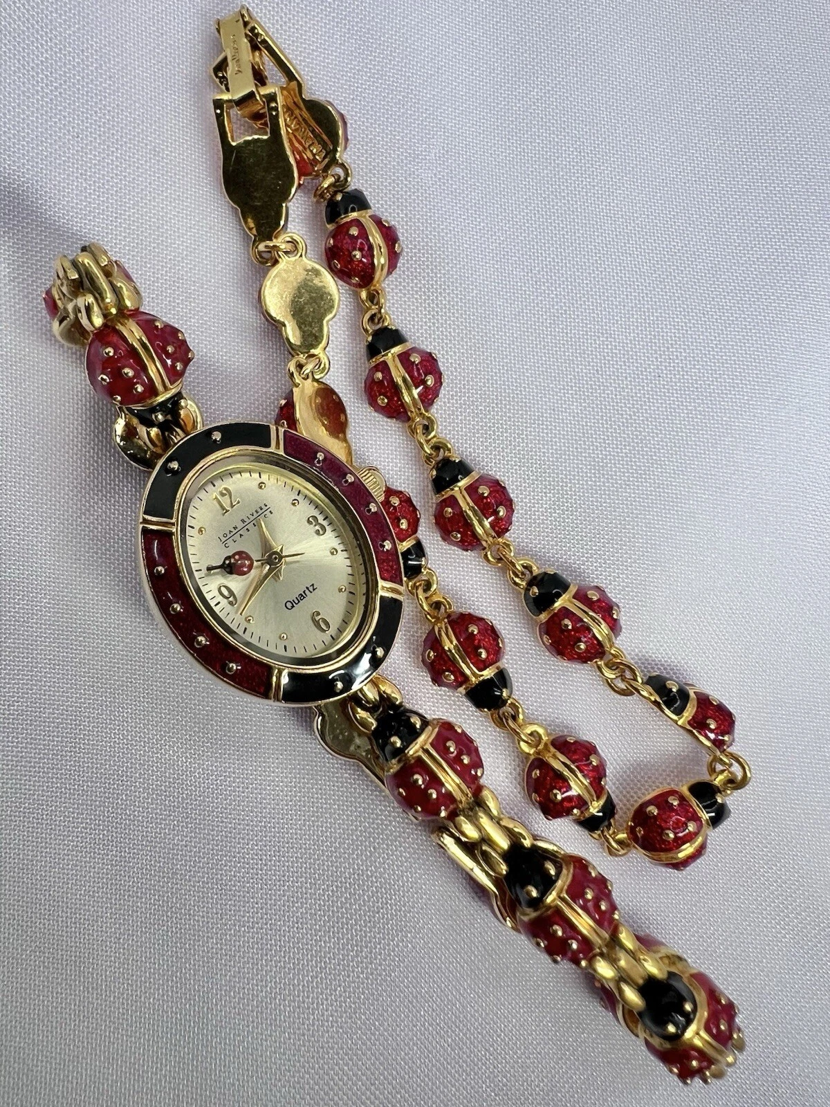 Vintage Joan Rivers Classics Ladybug Gold Tone & Enamel Bracelet Watch Classy