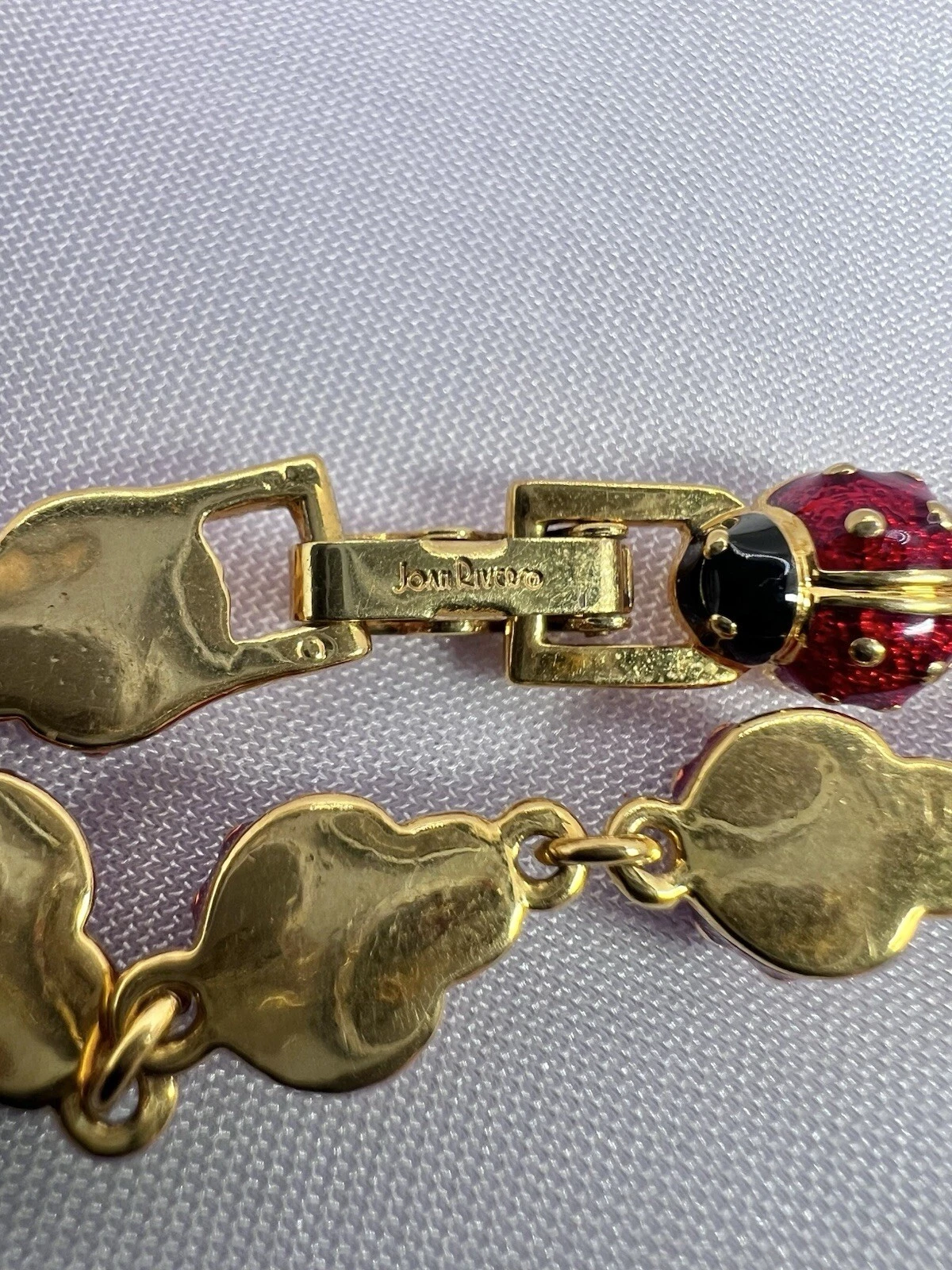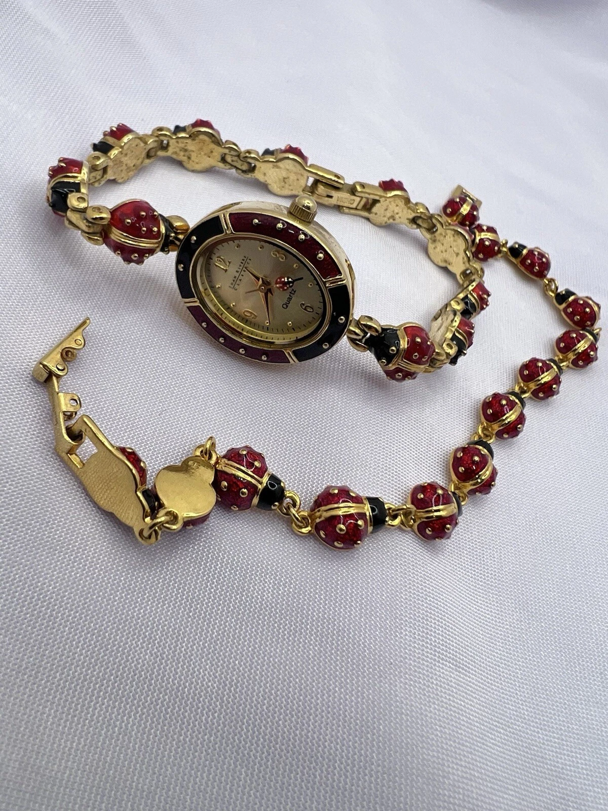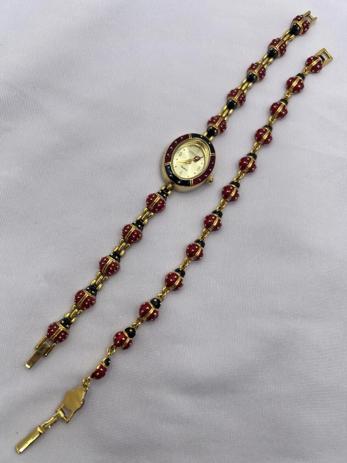 Vintage Joan Rivers Classics Ladybug Gold Tone & Enamel Bracelet Watch Classy