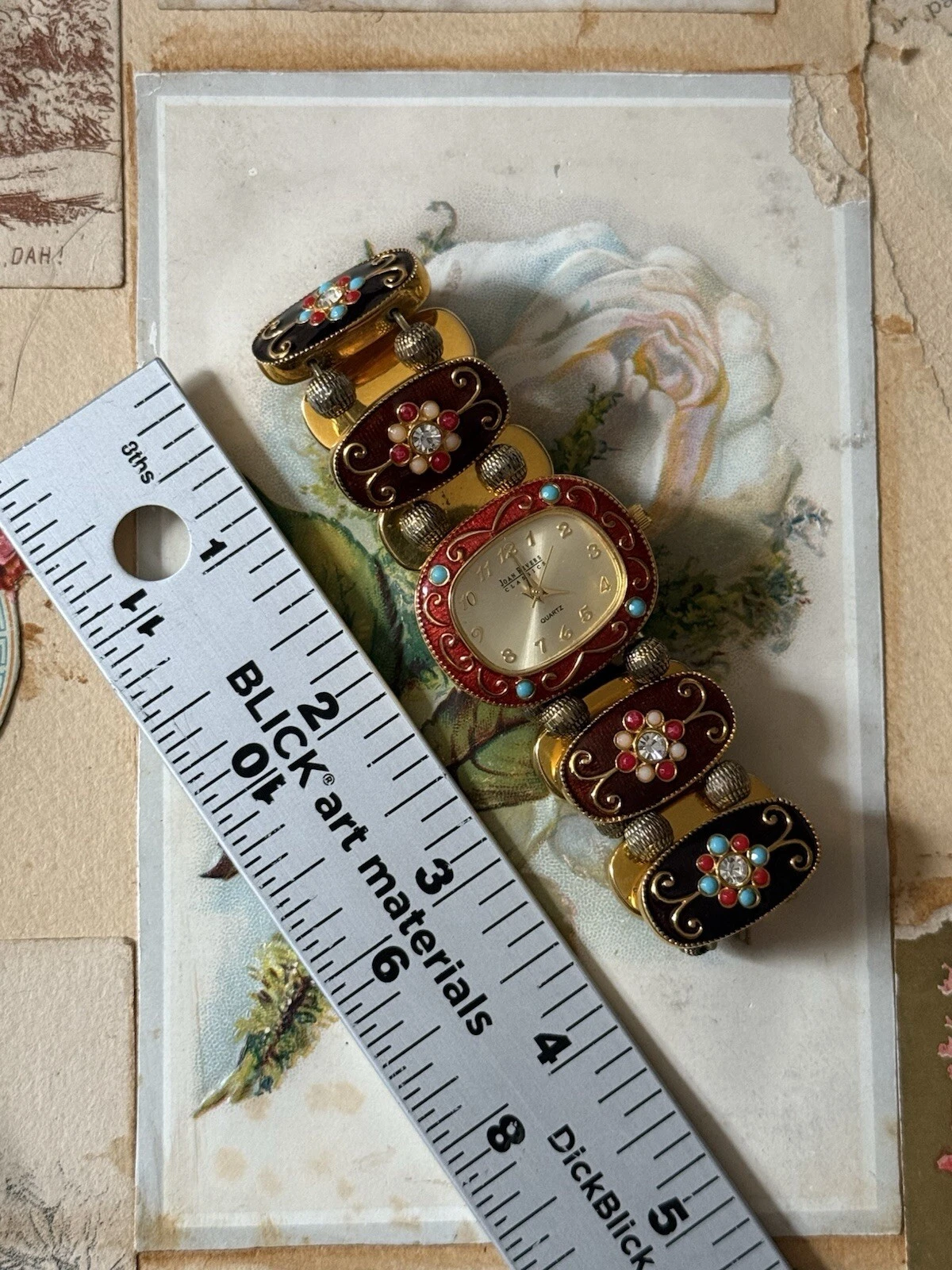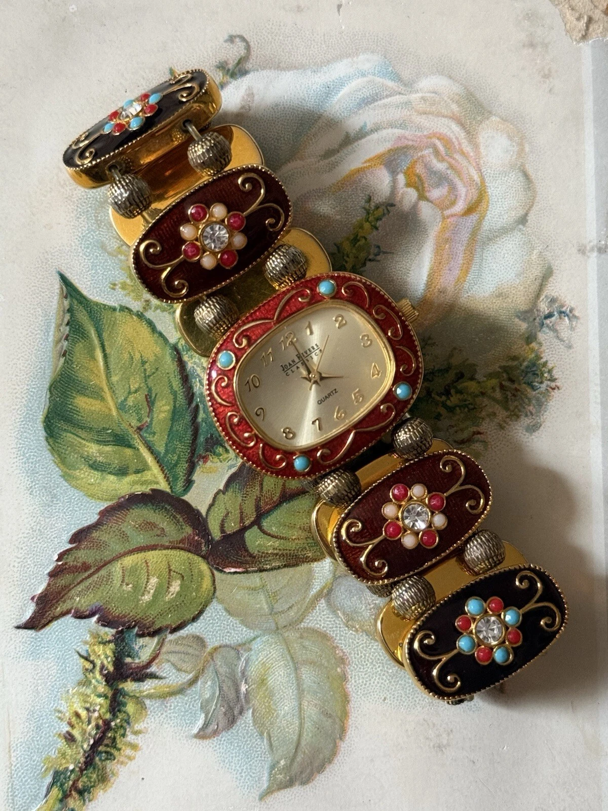 Joan Rivers Vintage Floral Enameled Watch RARE Working