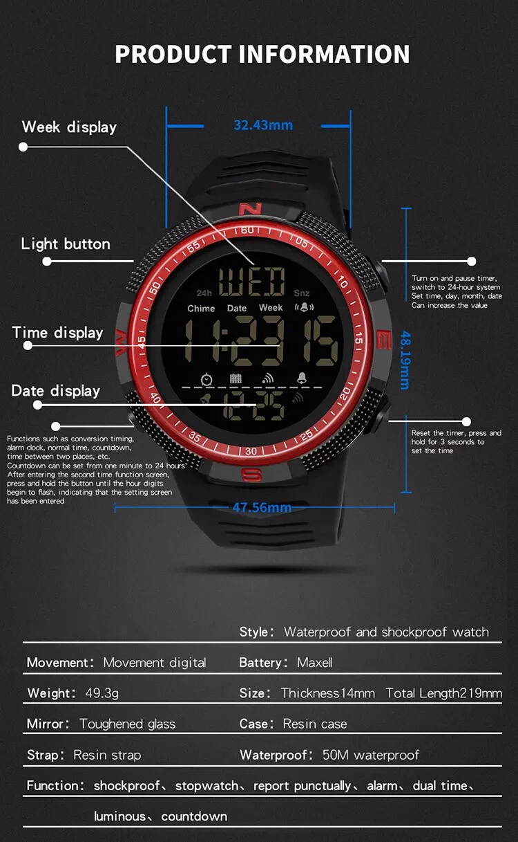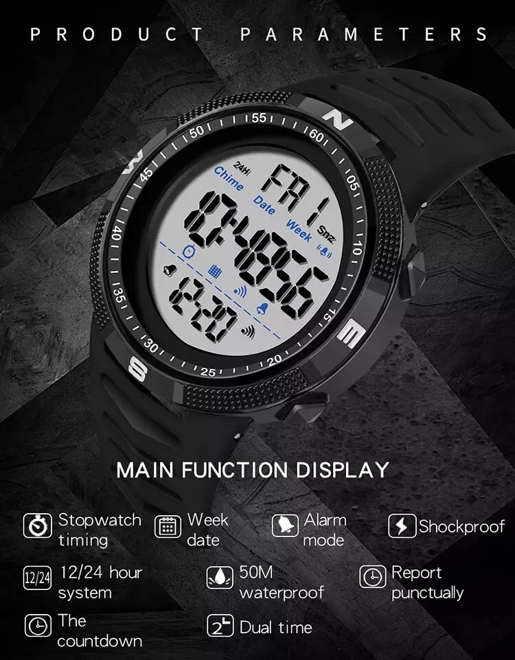 Reloj Digital Militar Relojes de Moda Para Hombre Cuarzo Led Smart Inteligente