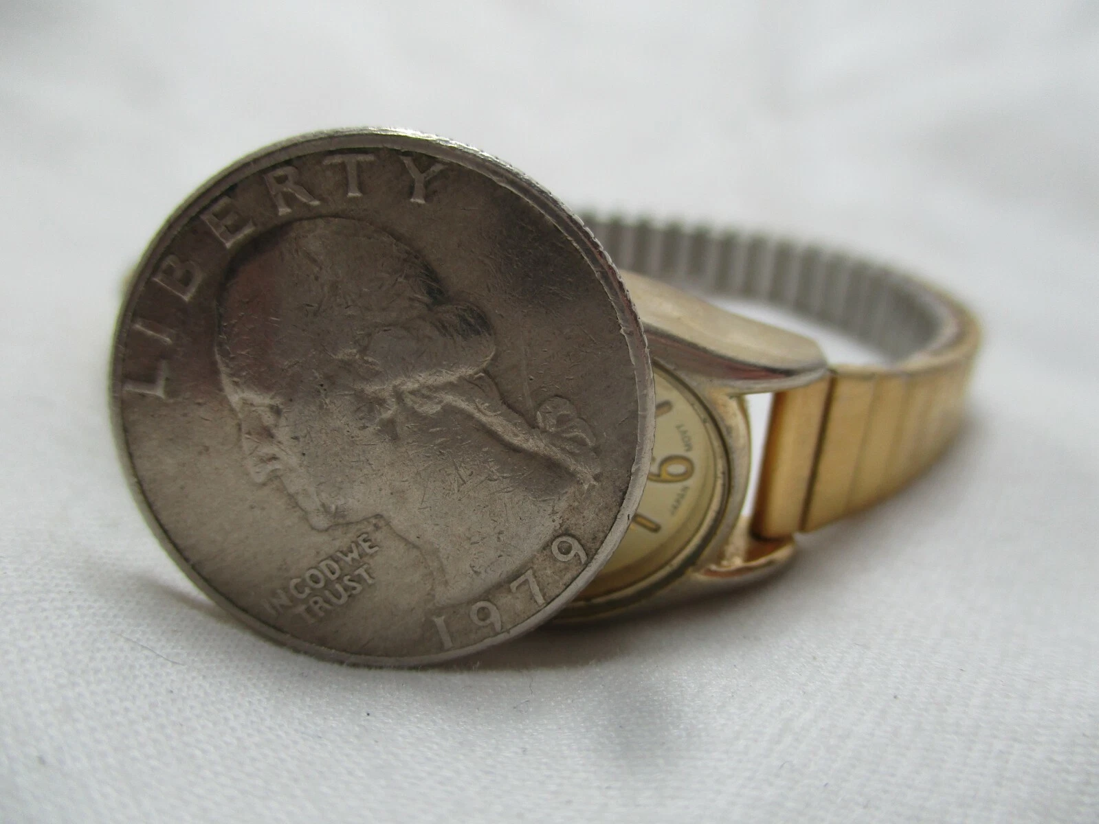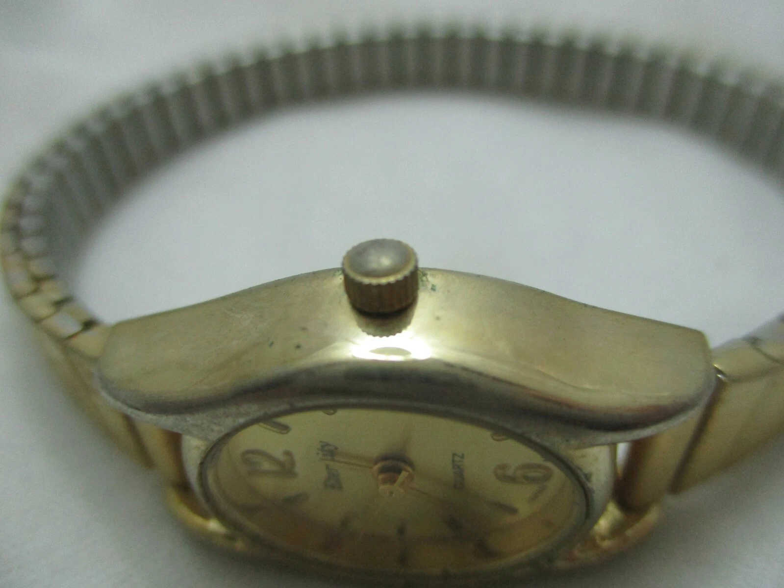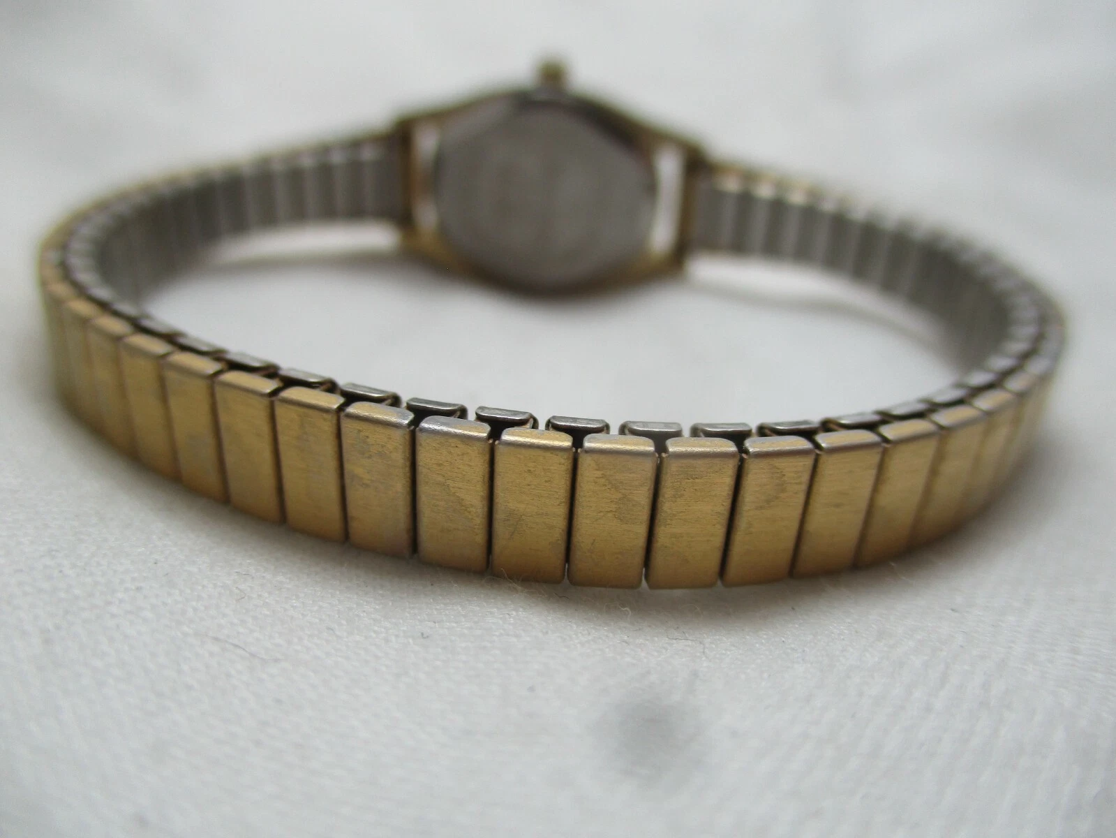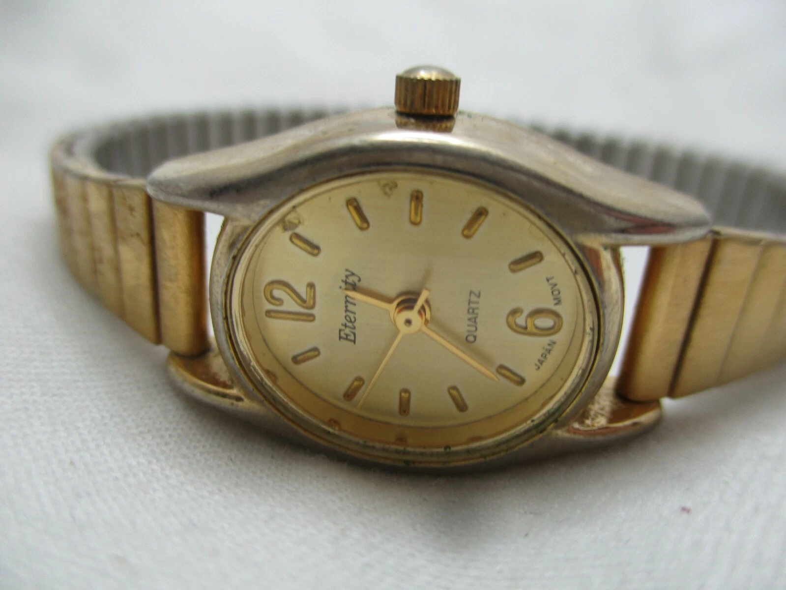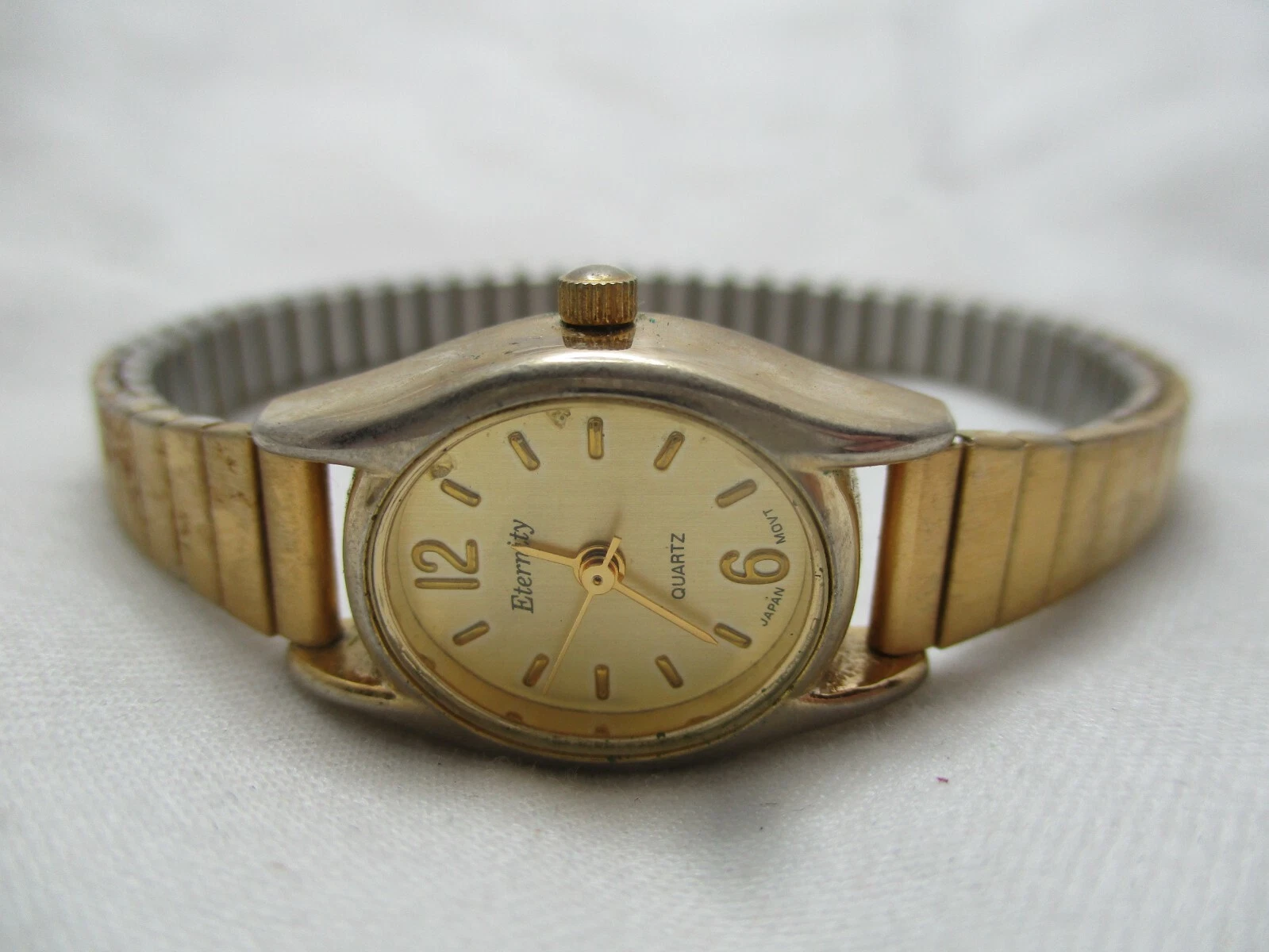 Eternity Wristwatch Oval Shaped Face Gold Tone Expansion Band Simple Style