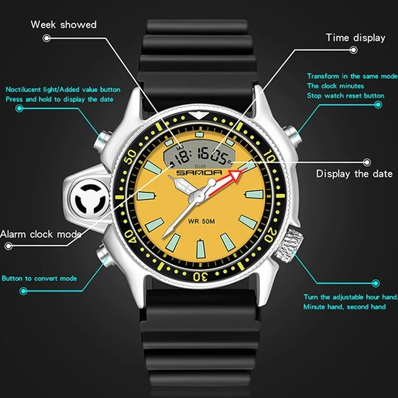 Relojes de Hombre Militares Deportivos Reloj Negro Para Hombre Amarillo Blanco