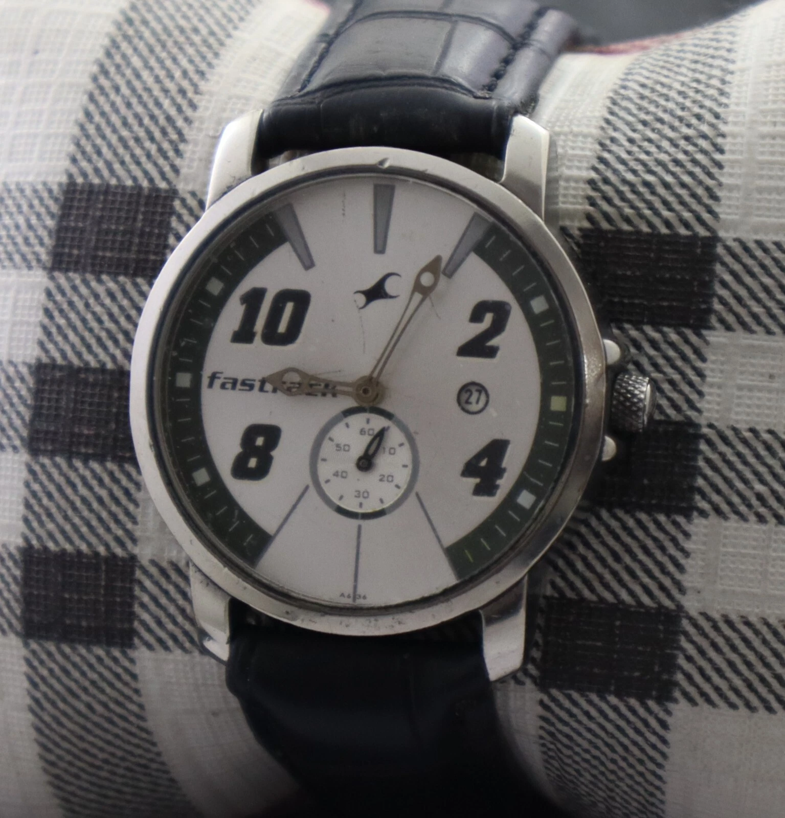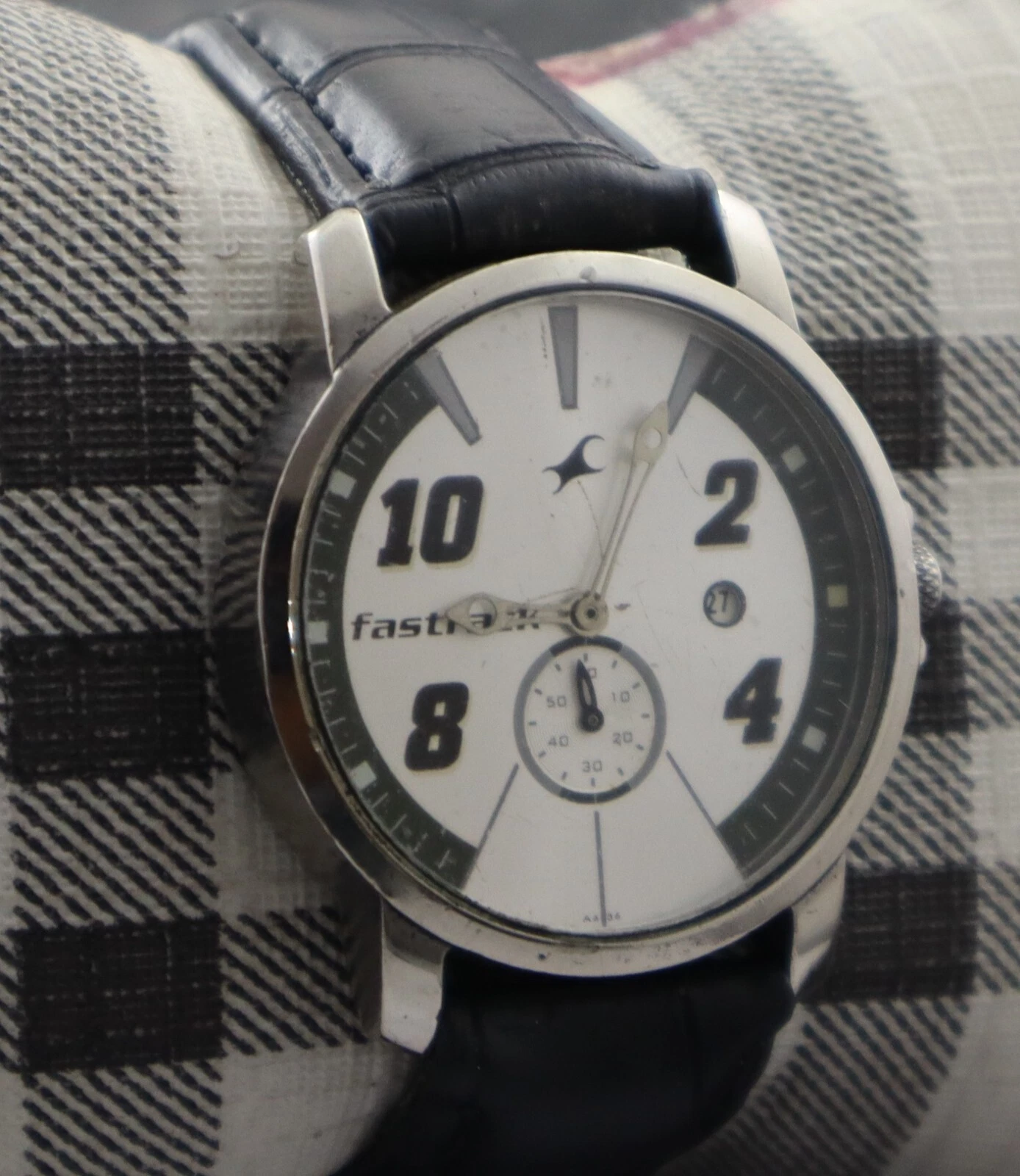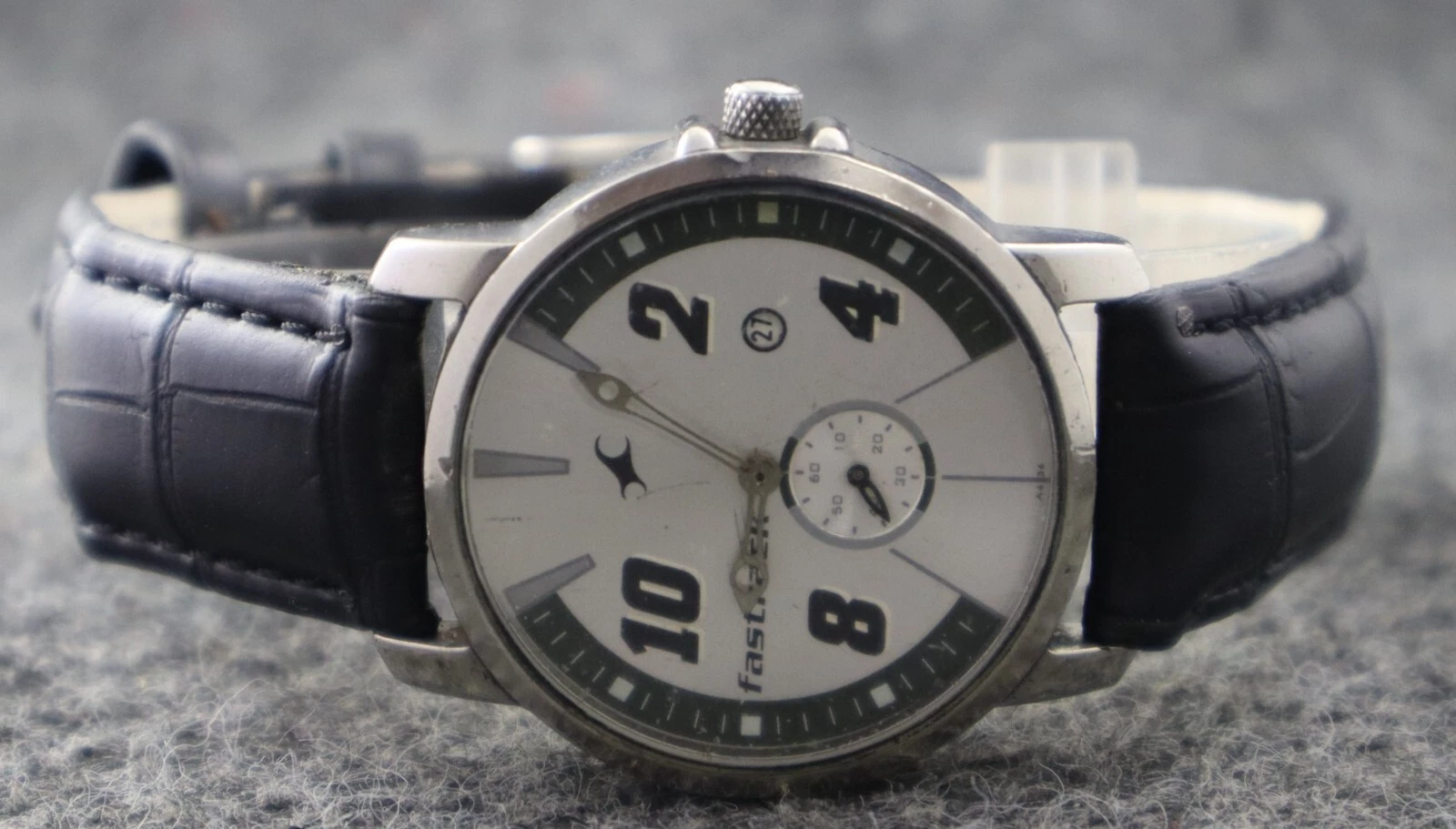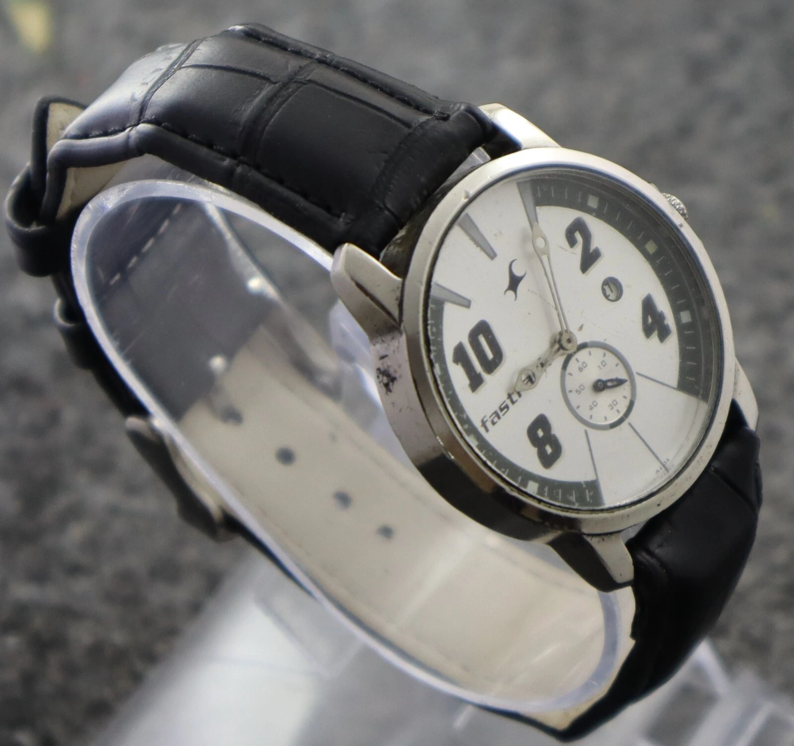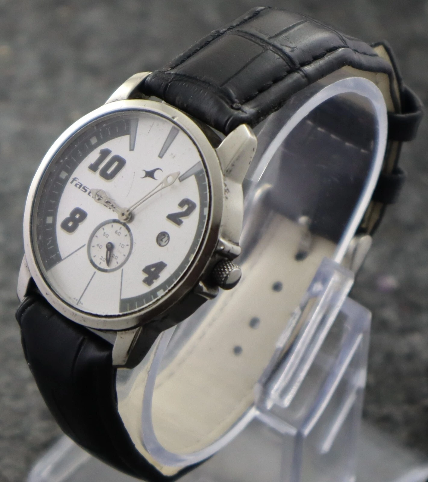 Casual Fastrack Men Sub-Second Silver Dial with Date Leather Band Quartz Watch