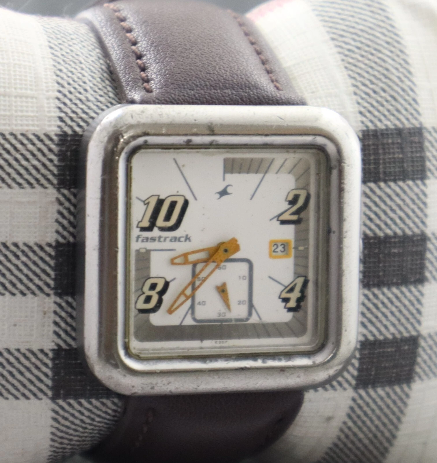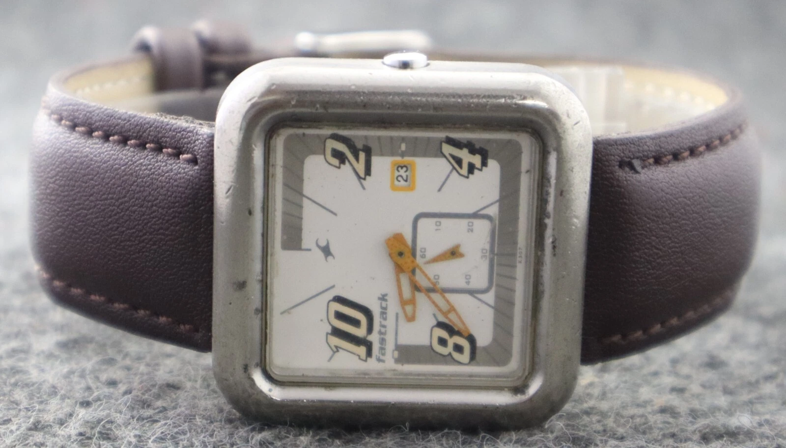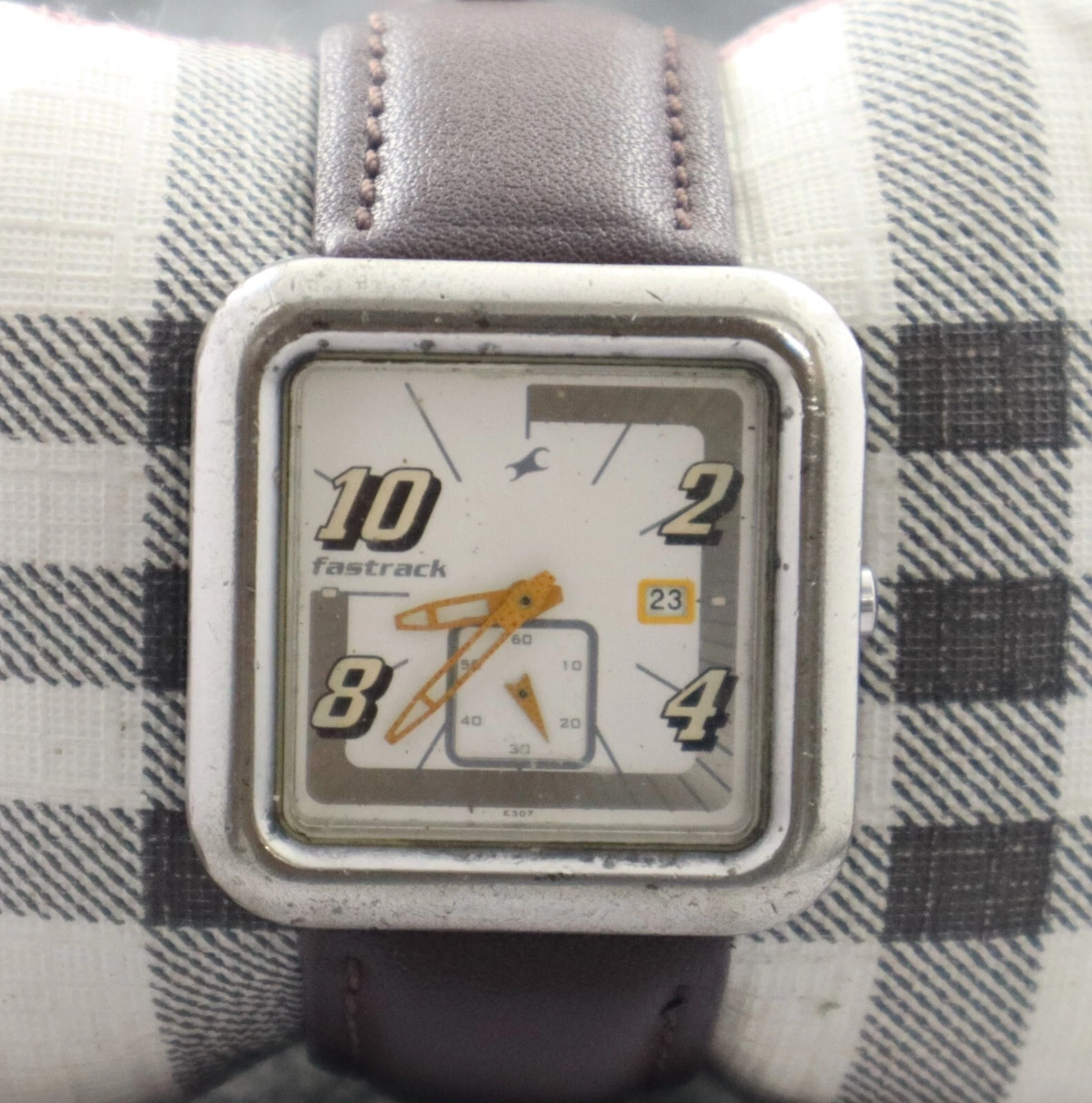Casual Fastrack Men Sub-Second White Dial with Date Square Case Quartz Watch