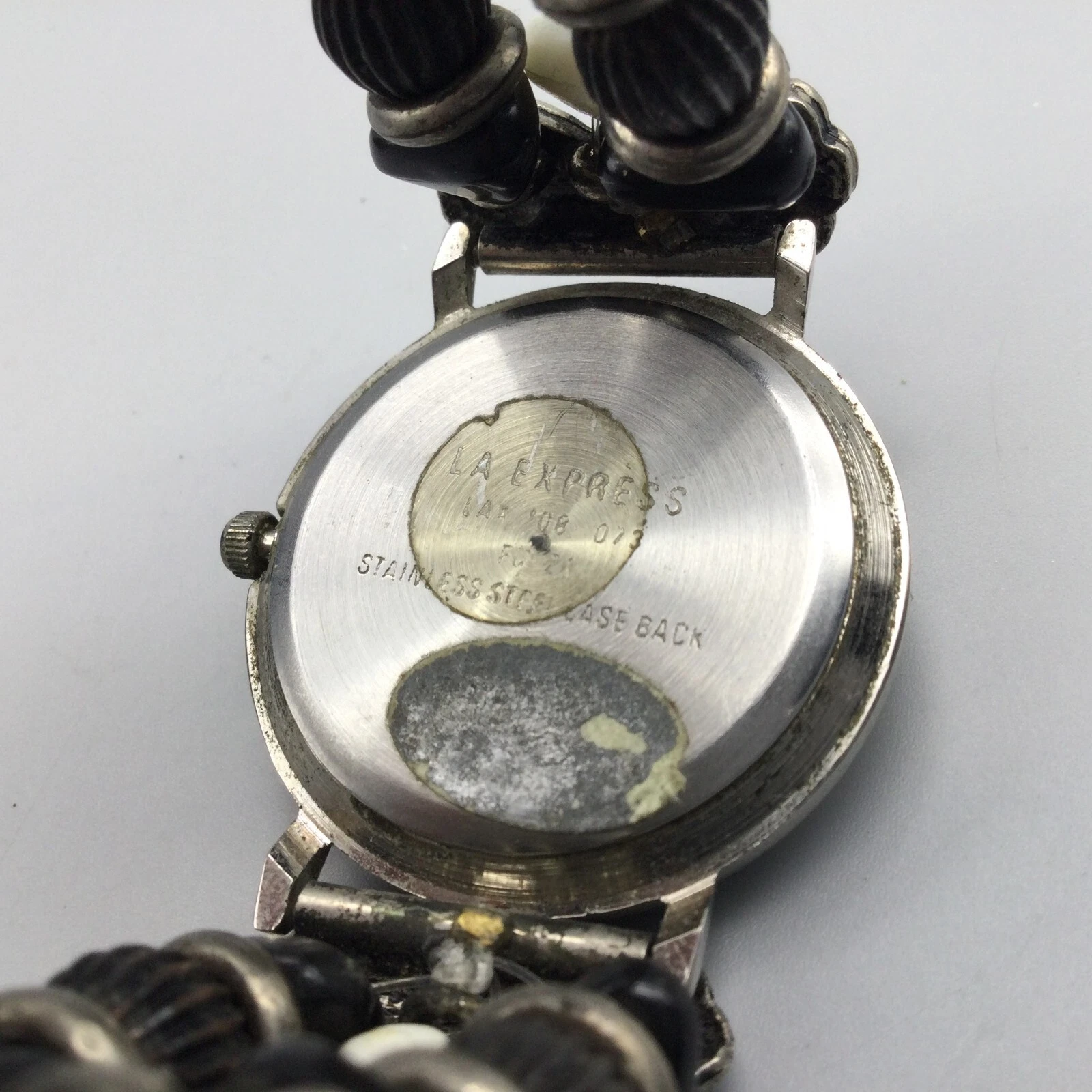 LA Express Southwest Watch Women 32mm Silver Tone Beaded Band New Battery 6.75"