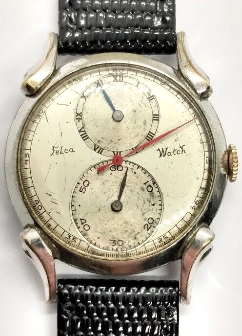 Rare Vintage Felca Regulator Men's Watch Swiss Silver Tone Retro Wristwatch