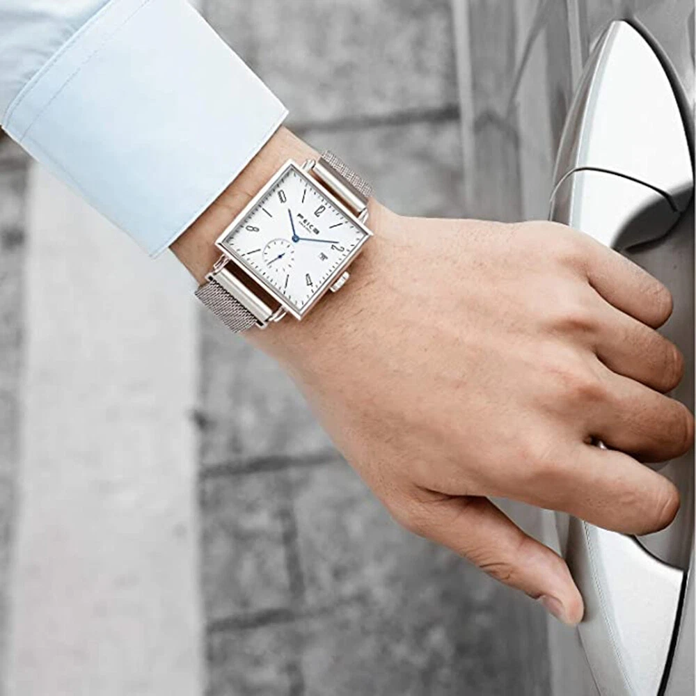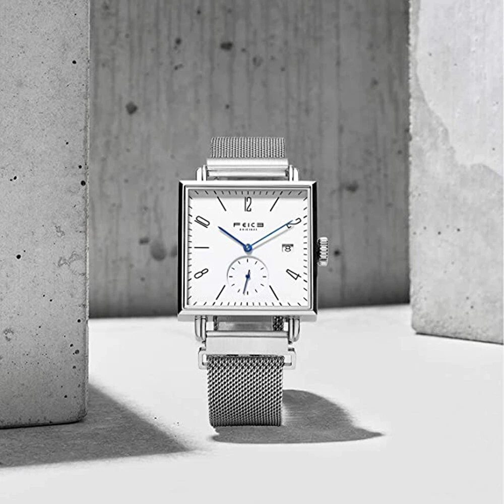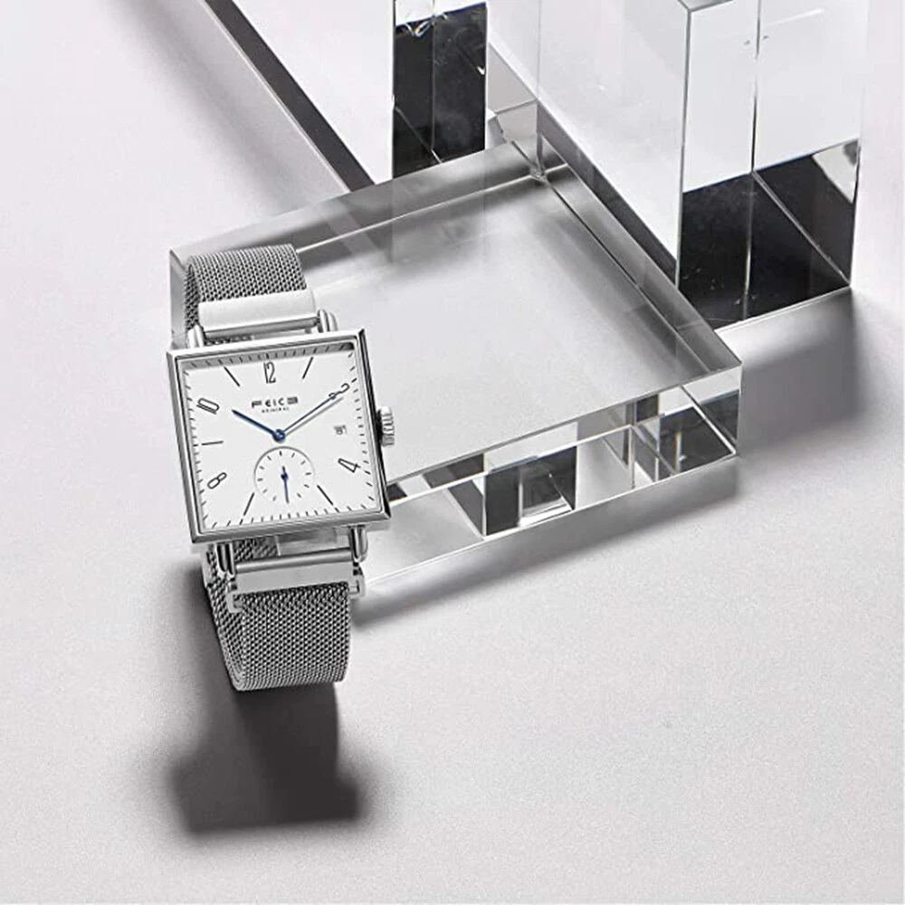 FEICE Unisex Square Bauhaus Automatic Mechanical Watches Analog Sapphire Mirror