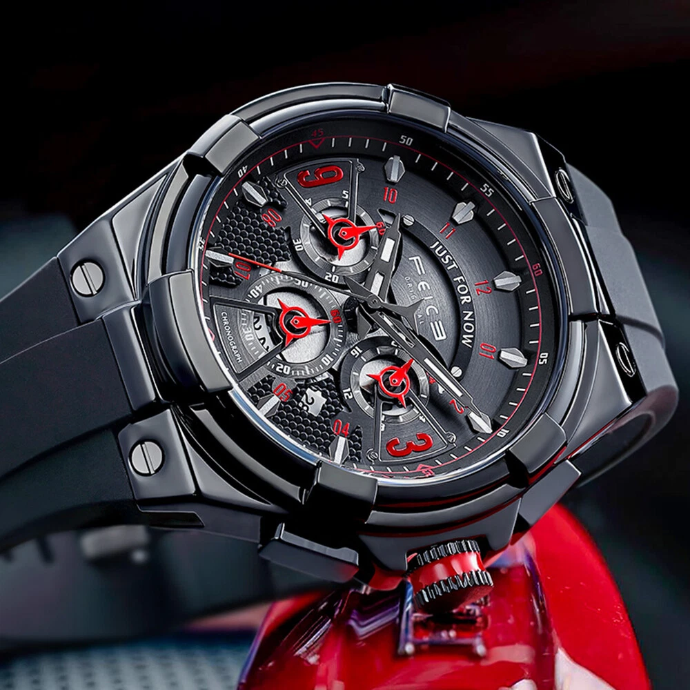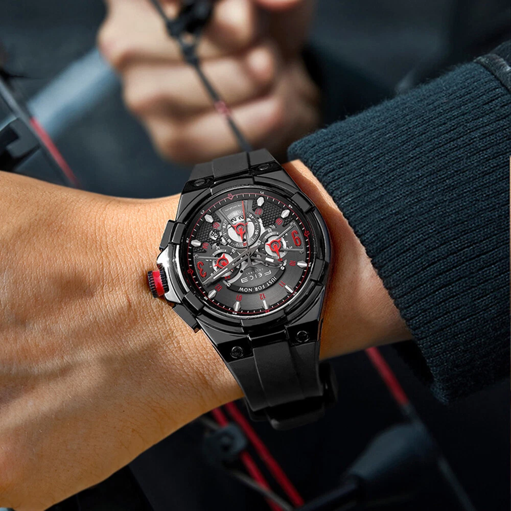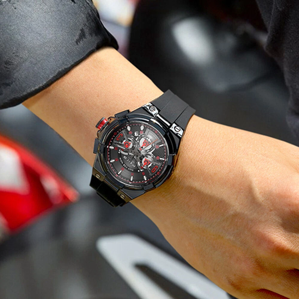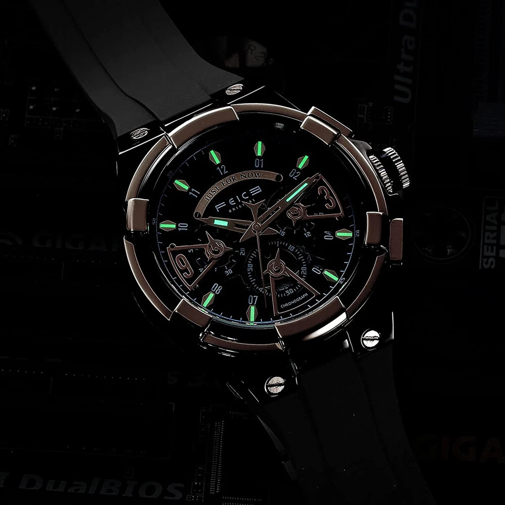 Men's Chronograph Quartz Watches Analog-Digital Rubber Strap Luminous Waterproof