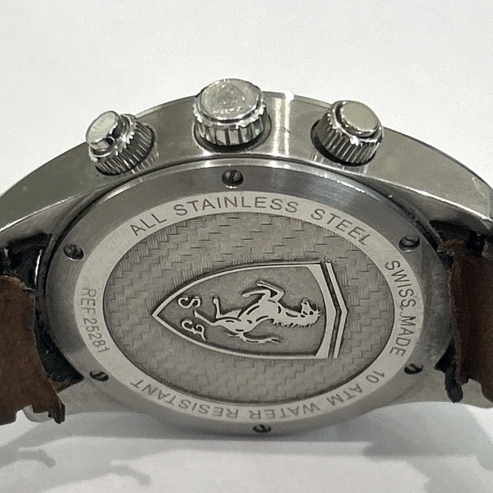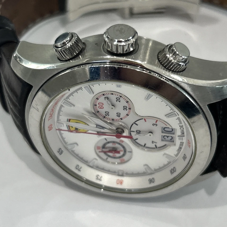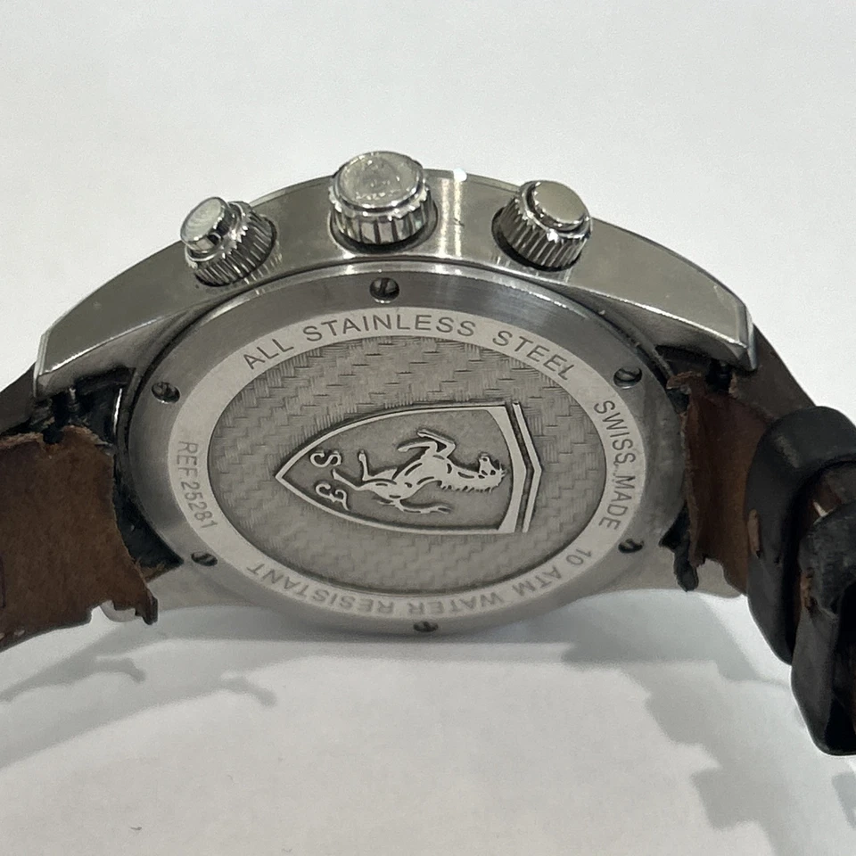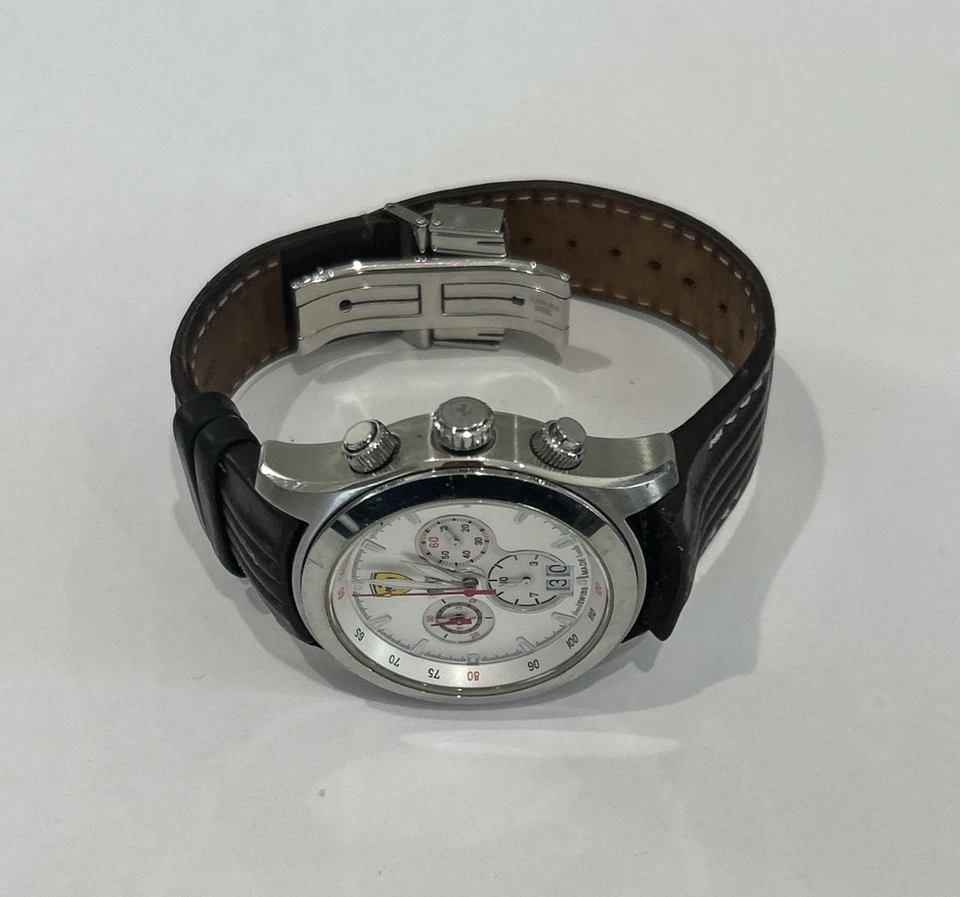 Ferrari Paddock Chronograph Watch Silver with Brown Leather Strap