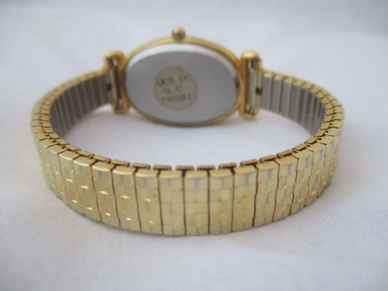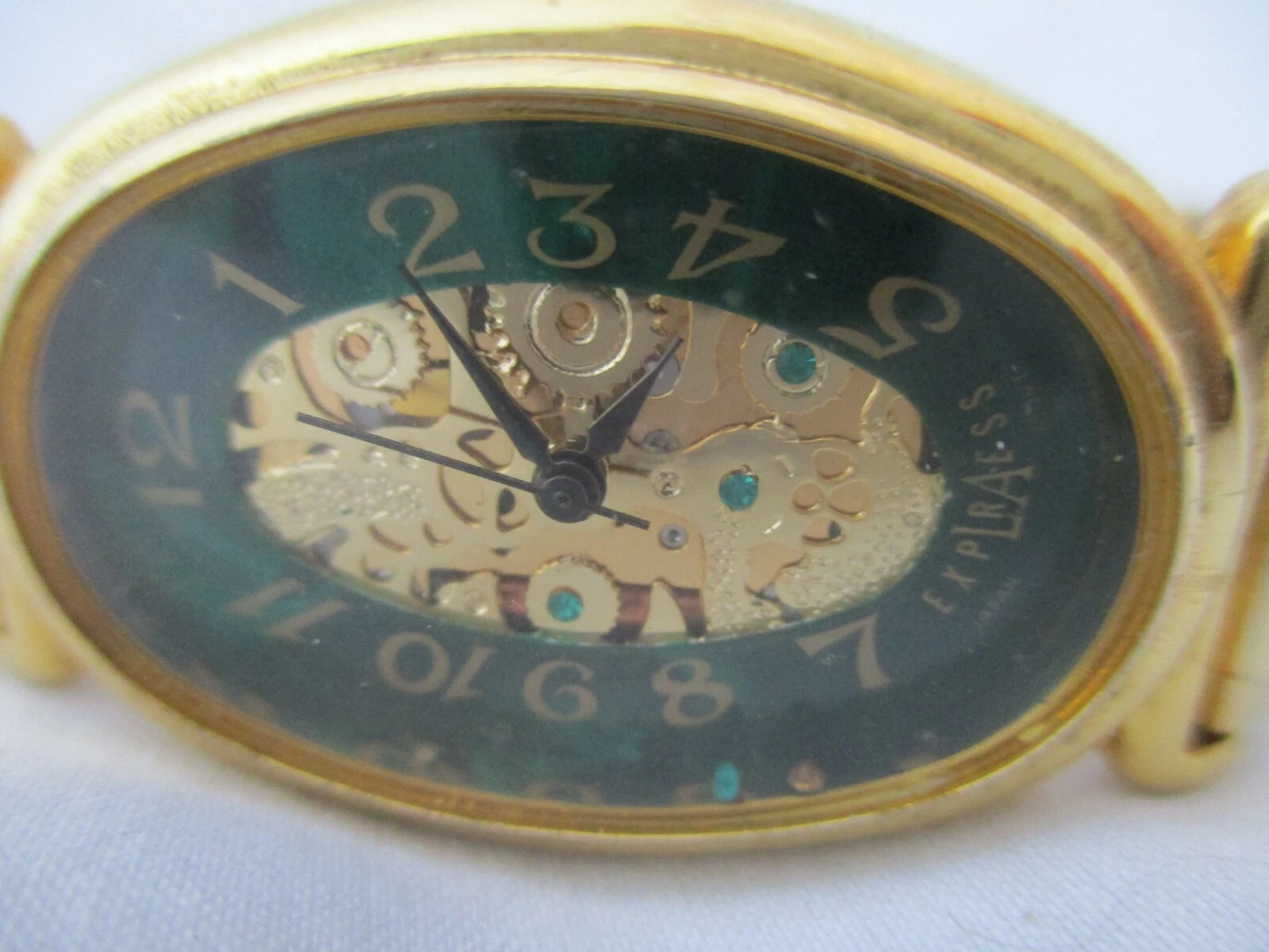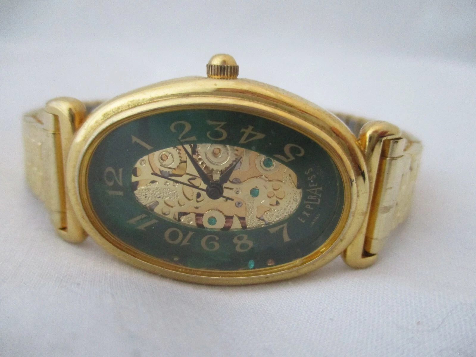Express La Wristwatch Gold Tone Expansion Band Oval Shaped Face Gears