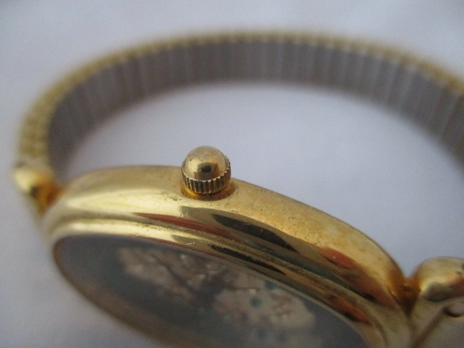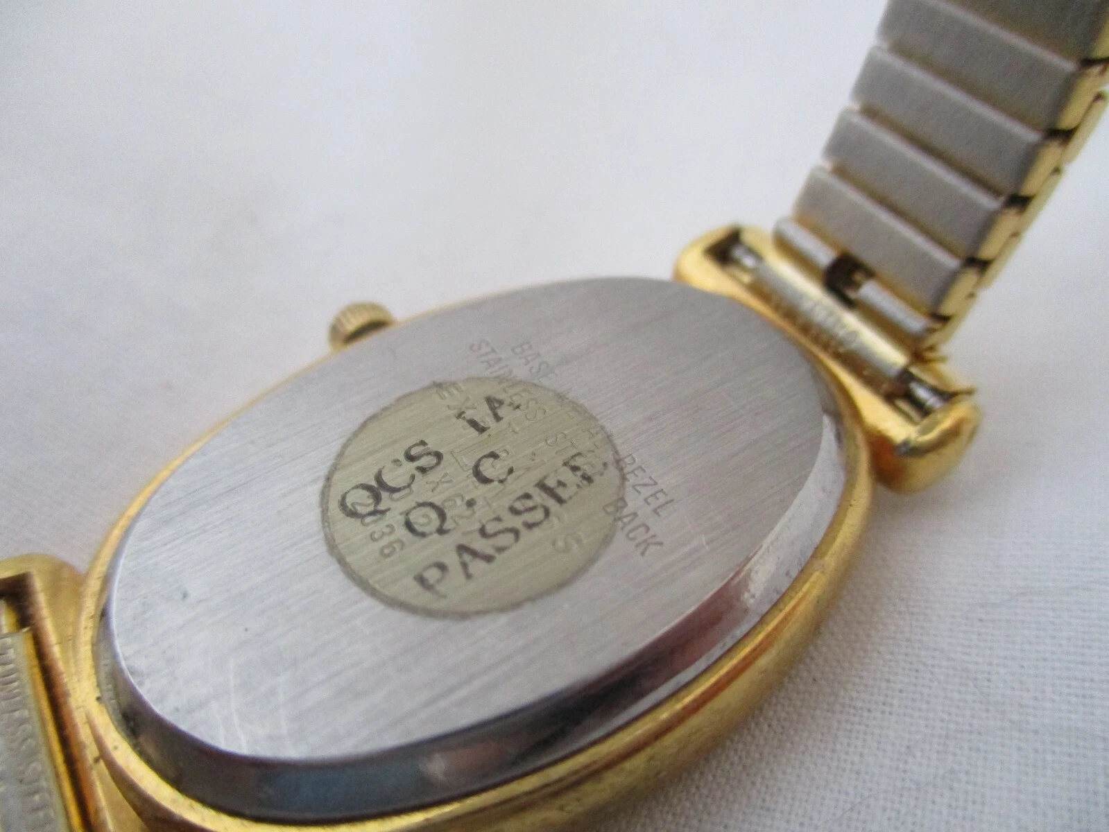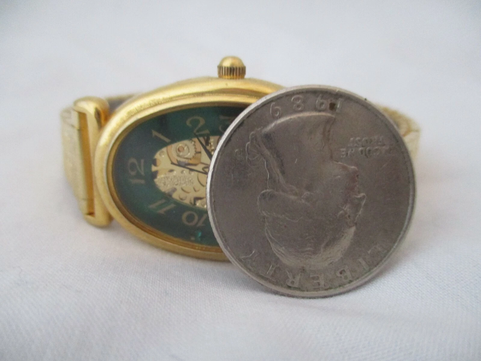 Express La Wristwatch Gold Tone Expansion Band Oval Shaped Face Gears