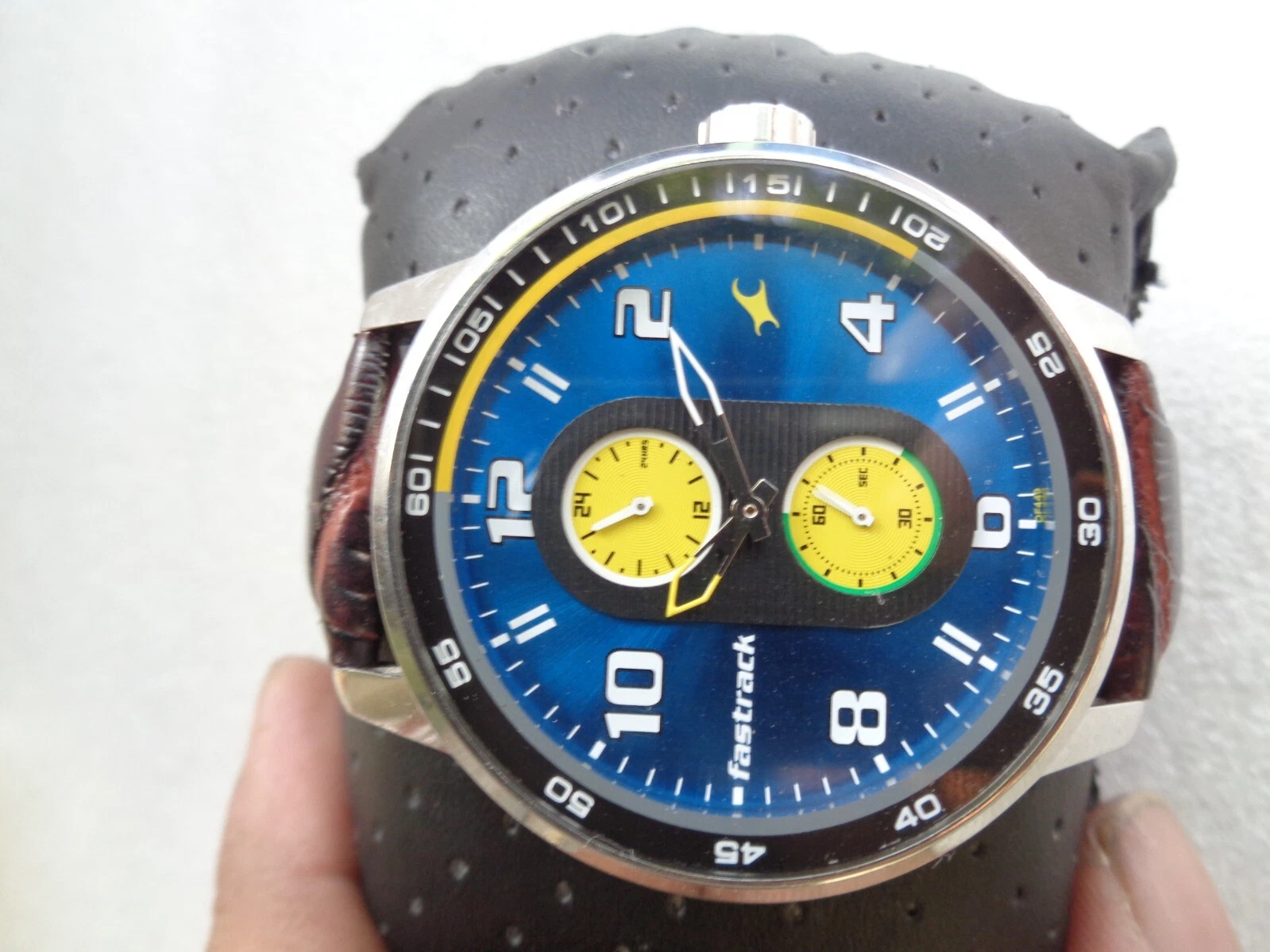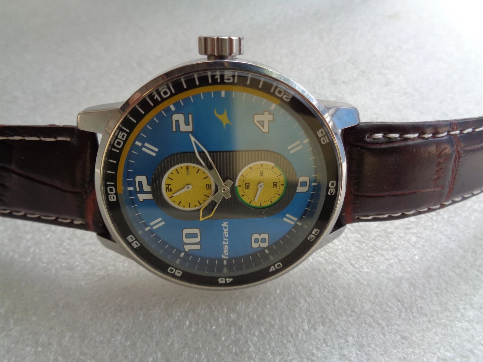 RARE SPORTS STYLE 12/24 BLUE DIAL FASTRACK INDIA SS MENS QUARTZ WRISTWATCH