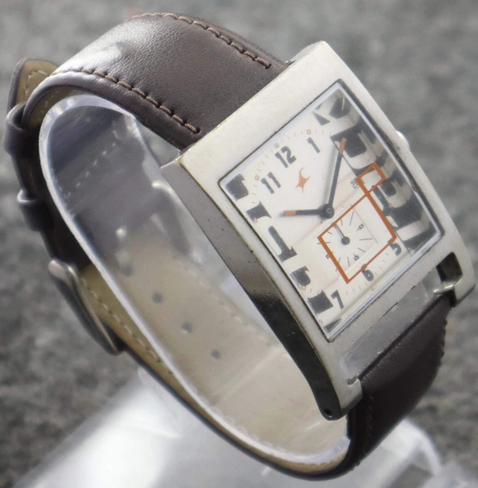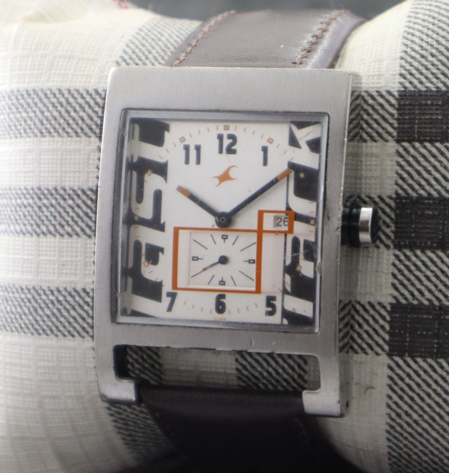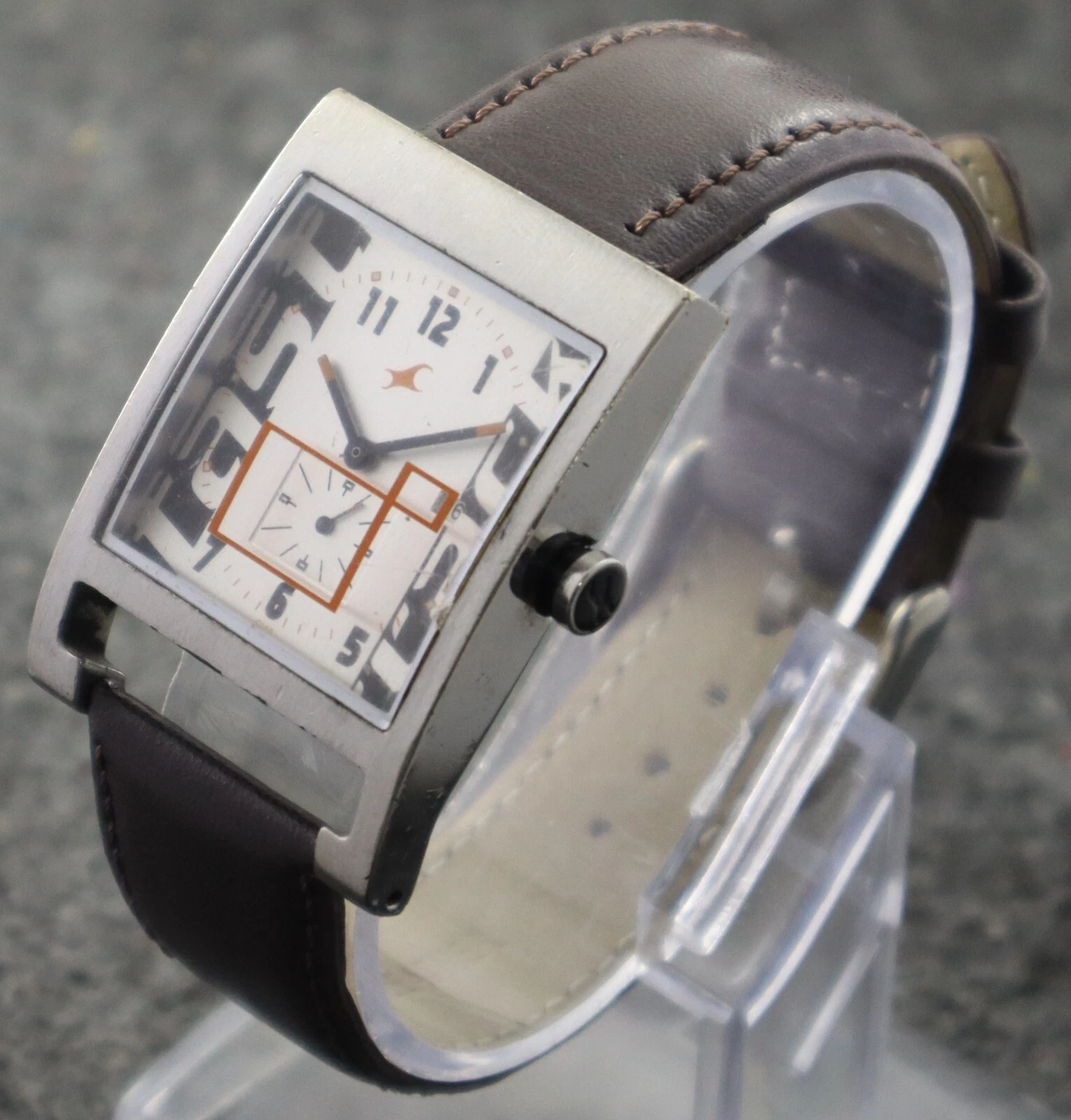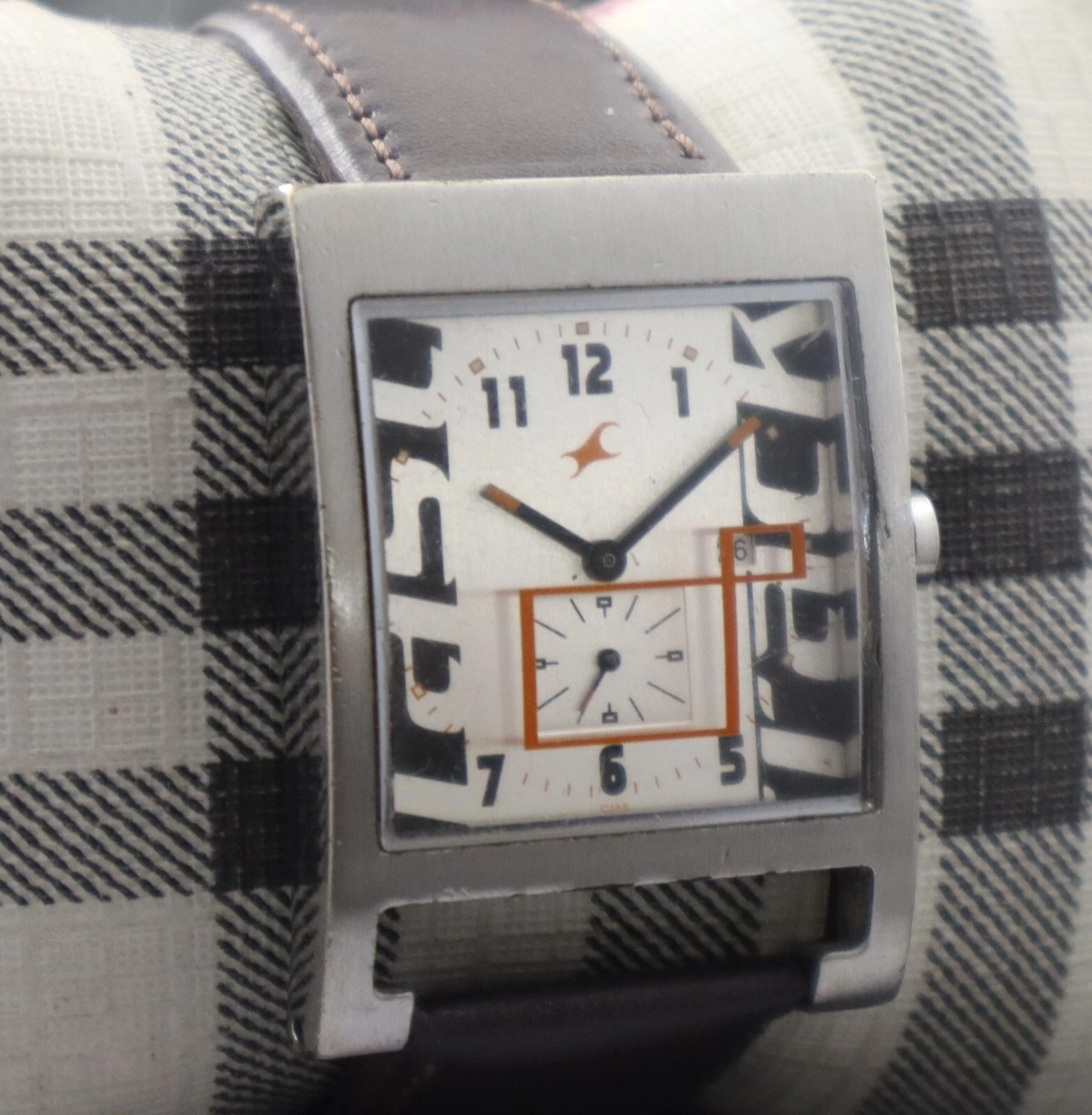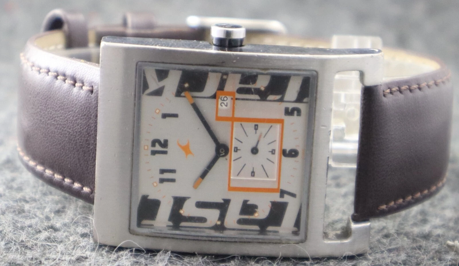 Casual Fastrack Men Sub-Second Silver Dial with Date Rectangle Case Quartz Watch