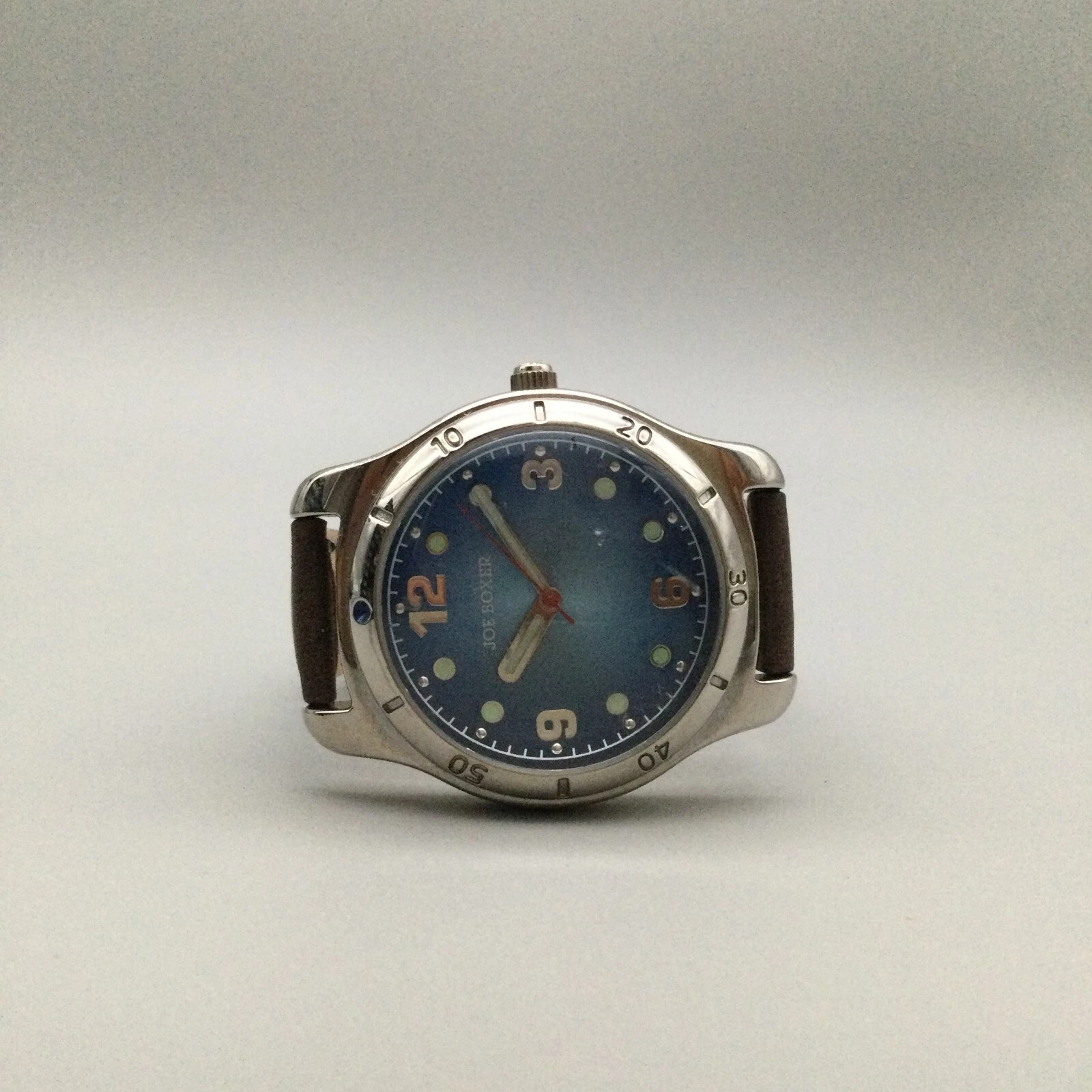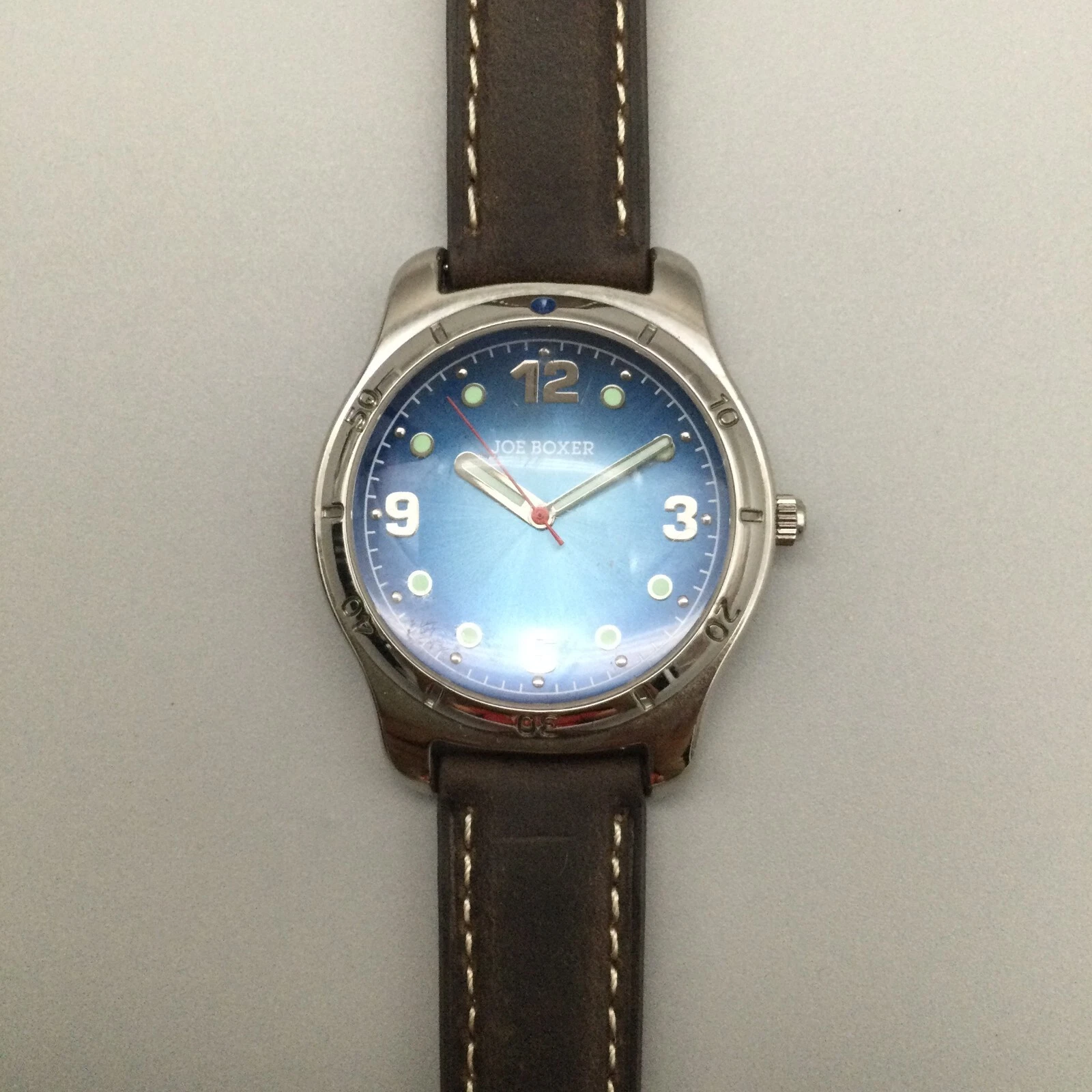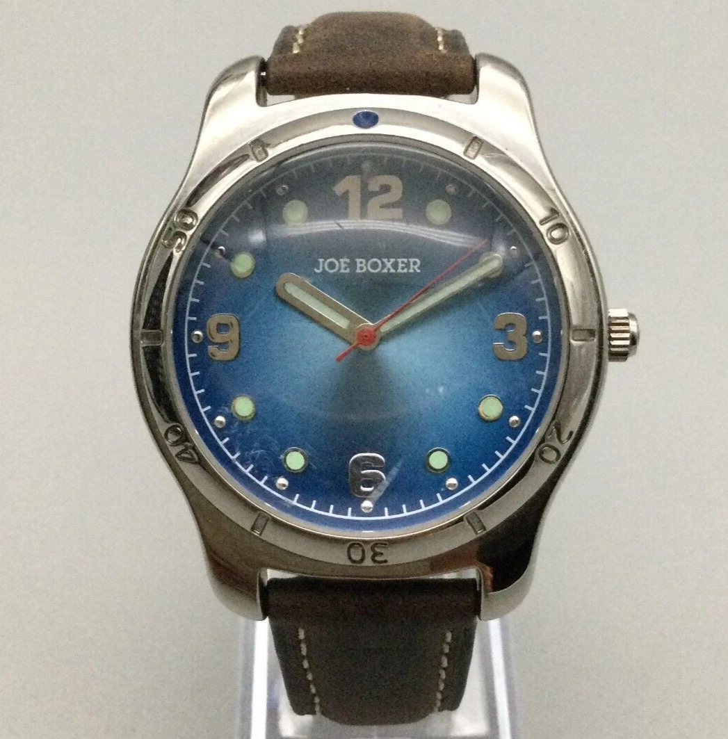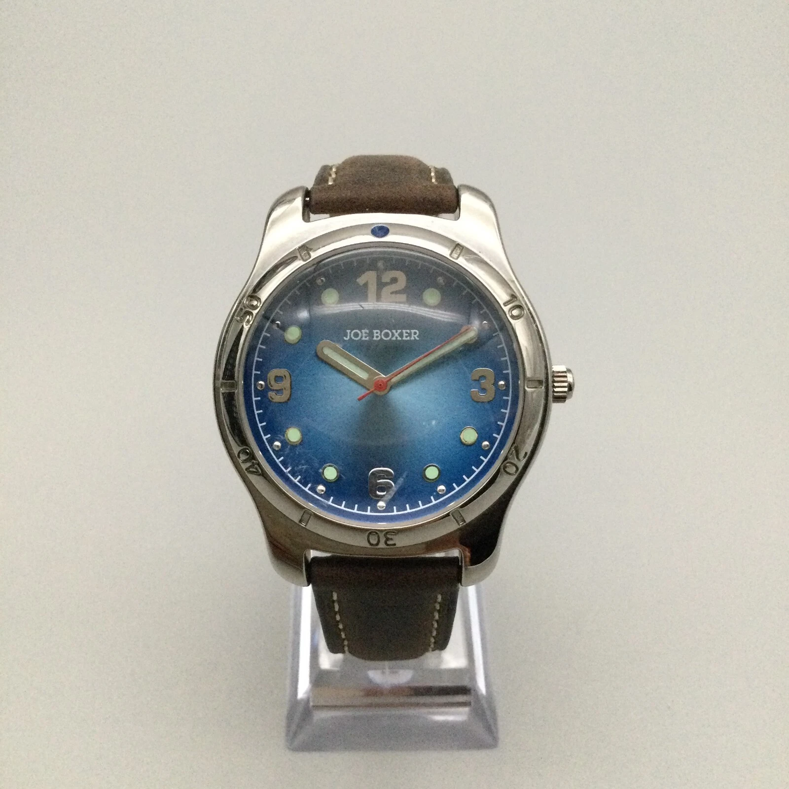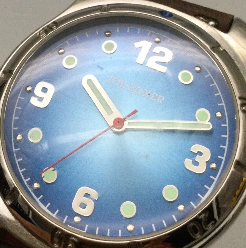 Joe Boxer Watch Men 39mm Blue Dial Bubble Crystal Brown Leather Band New Battery