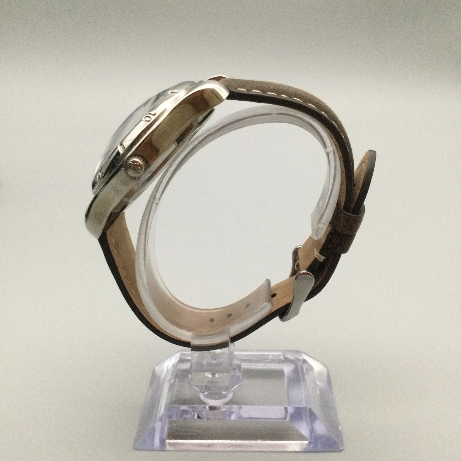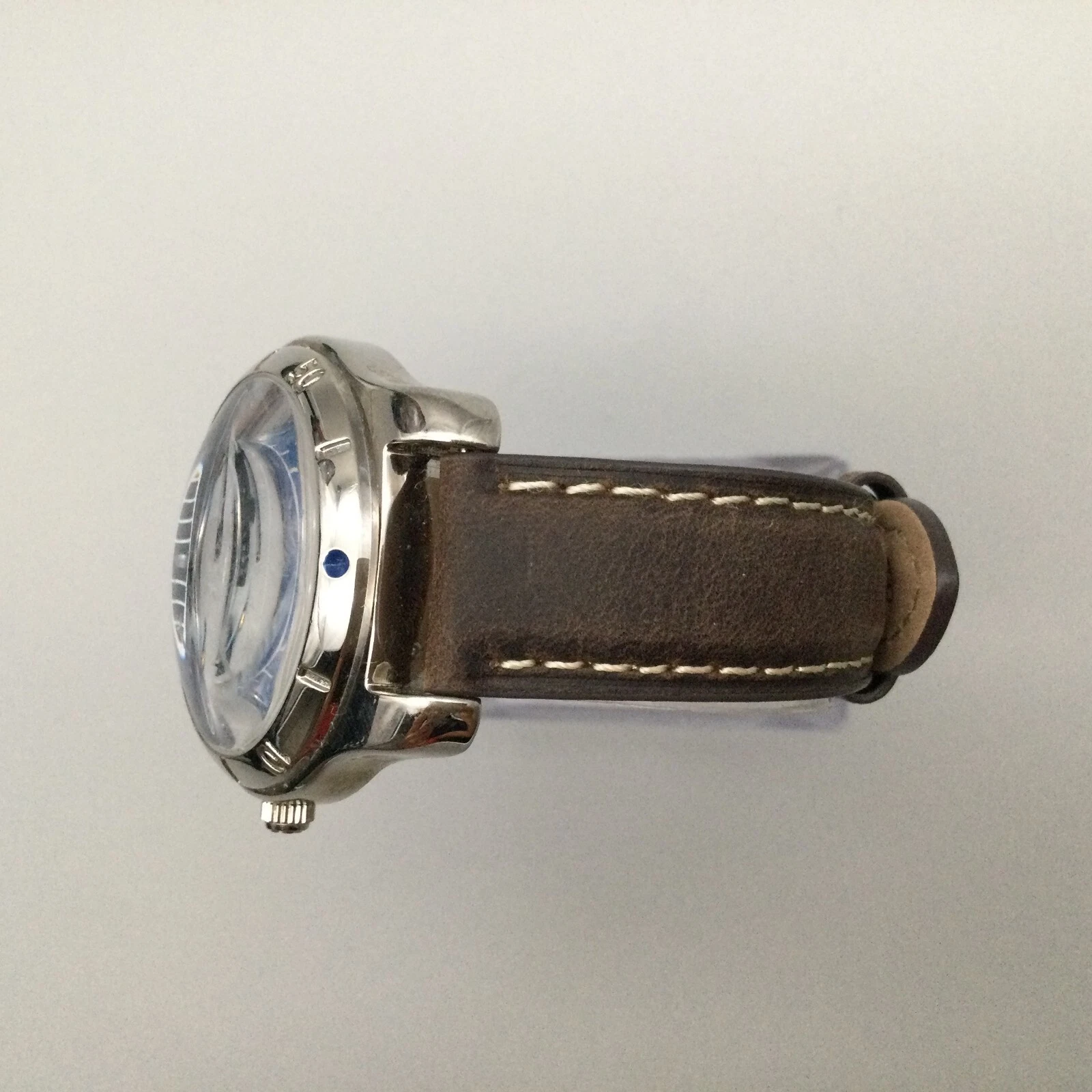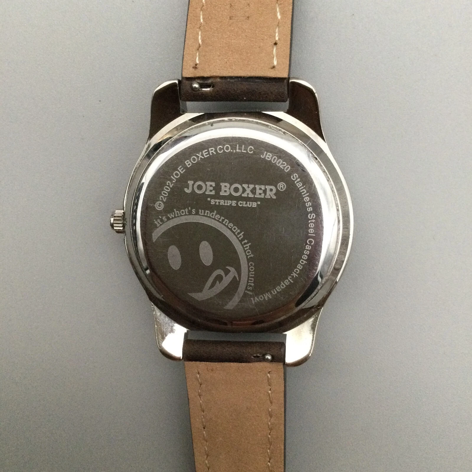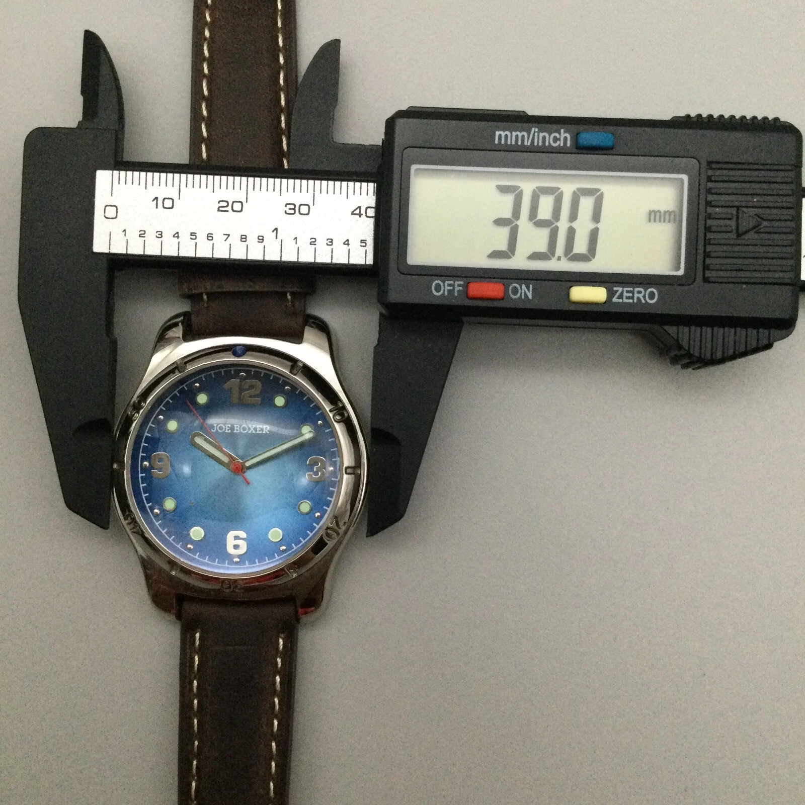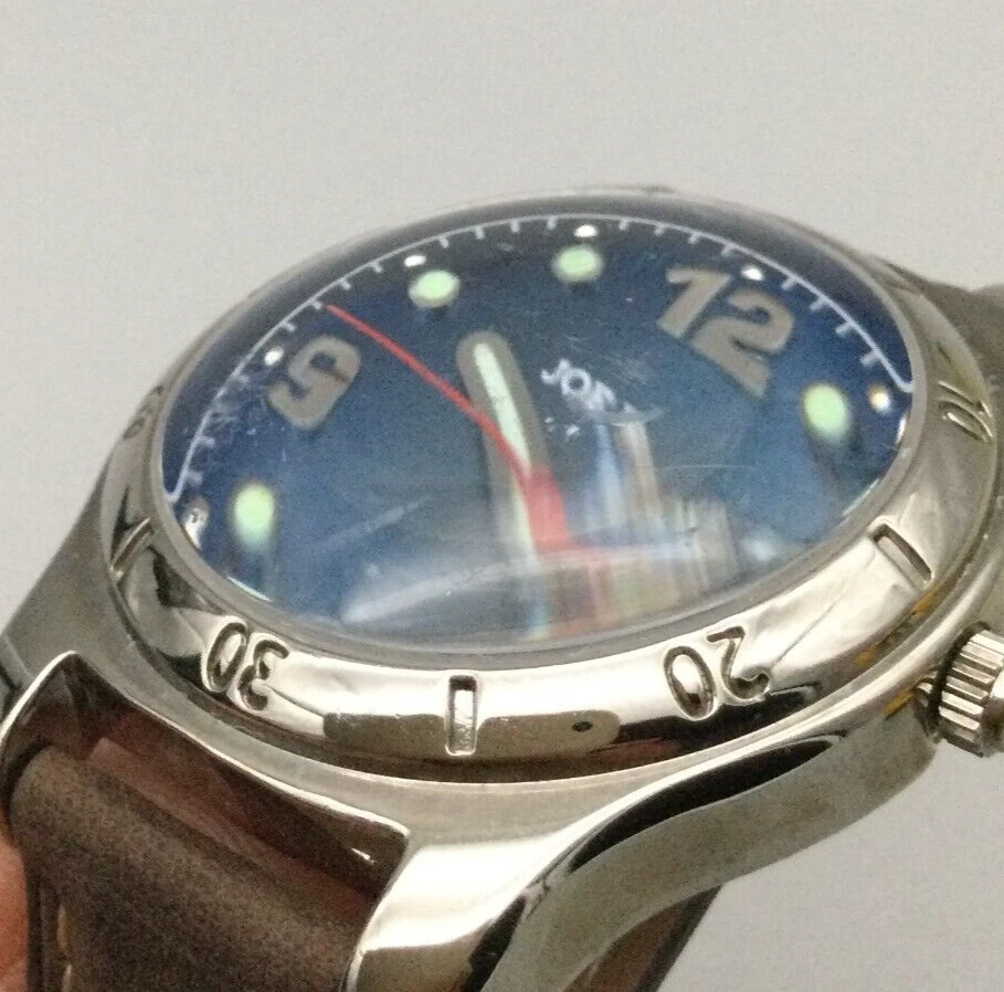 Joe Boxer Watch Men 39mm Blue Dial Bubble Crystal Brown Leather Band New Battery