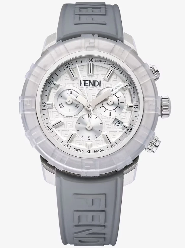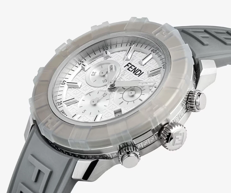 Fendi Fendastic Chronograph Transparent Bezel Gray Strap Watch FOW970AHPB F0VM0