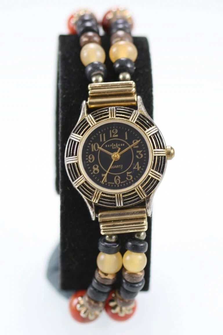 LA Express Women Watch Gold Stainless Steel Water Resist Battery Black Quartz