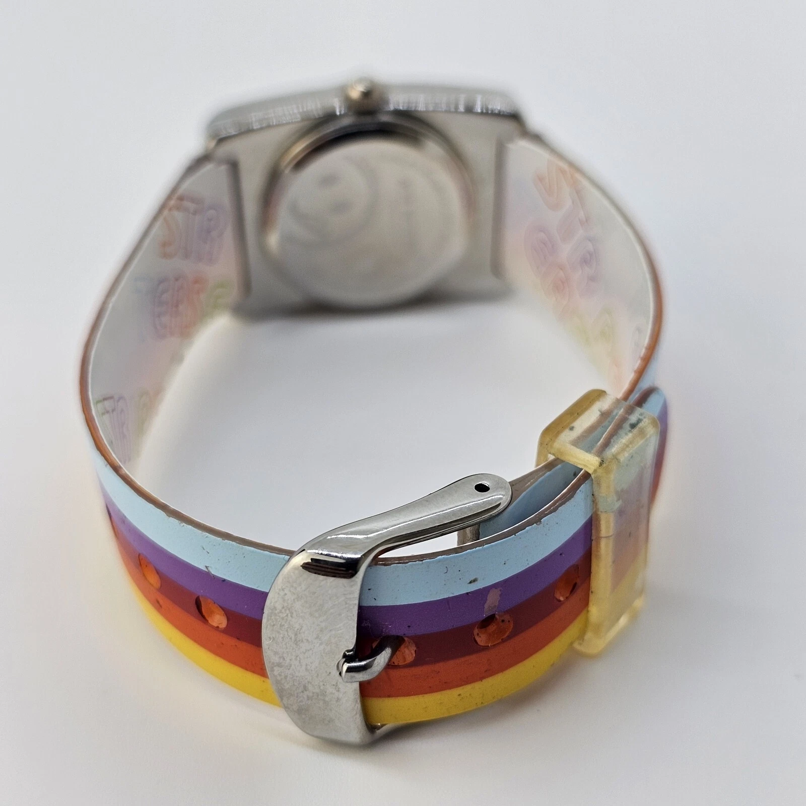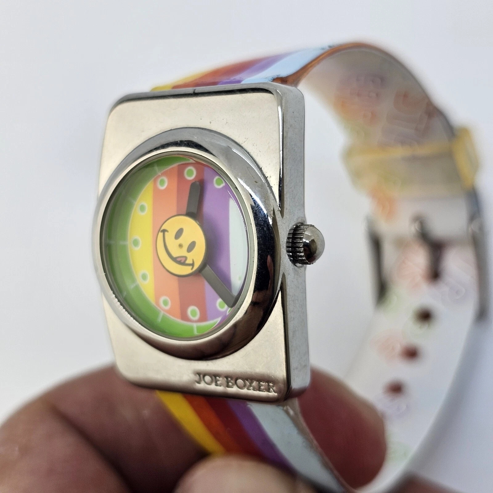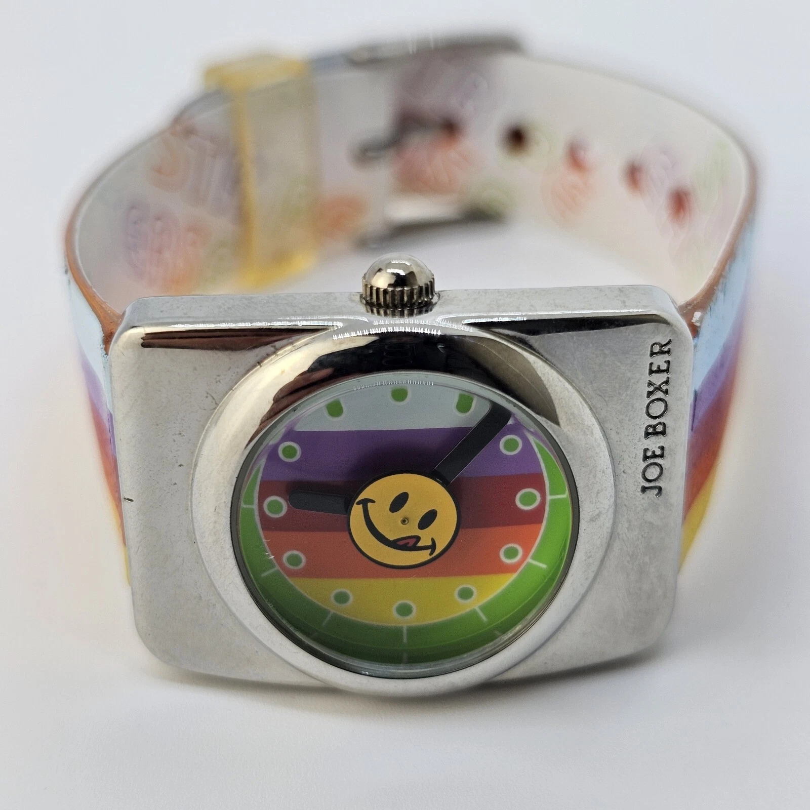 VTG Joe Boxer Women's Watch 24MM Smiley Face Rainbow Plastic Band New Battery