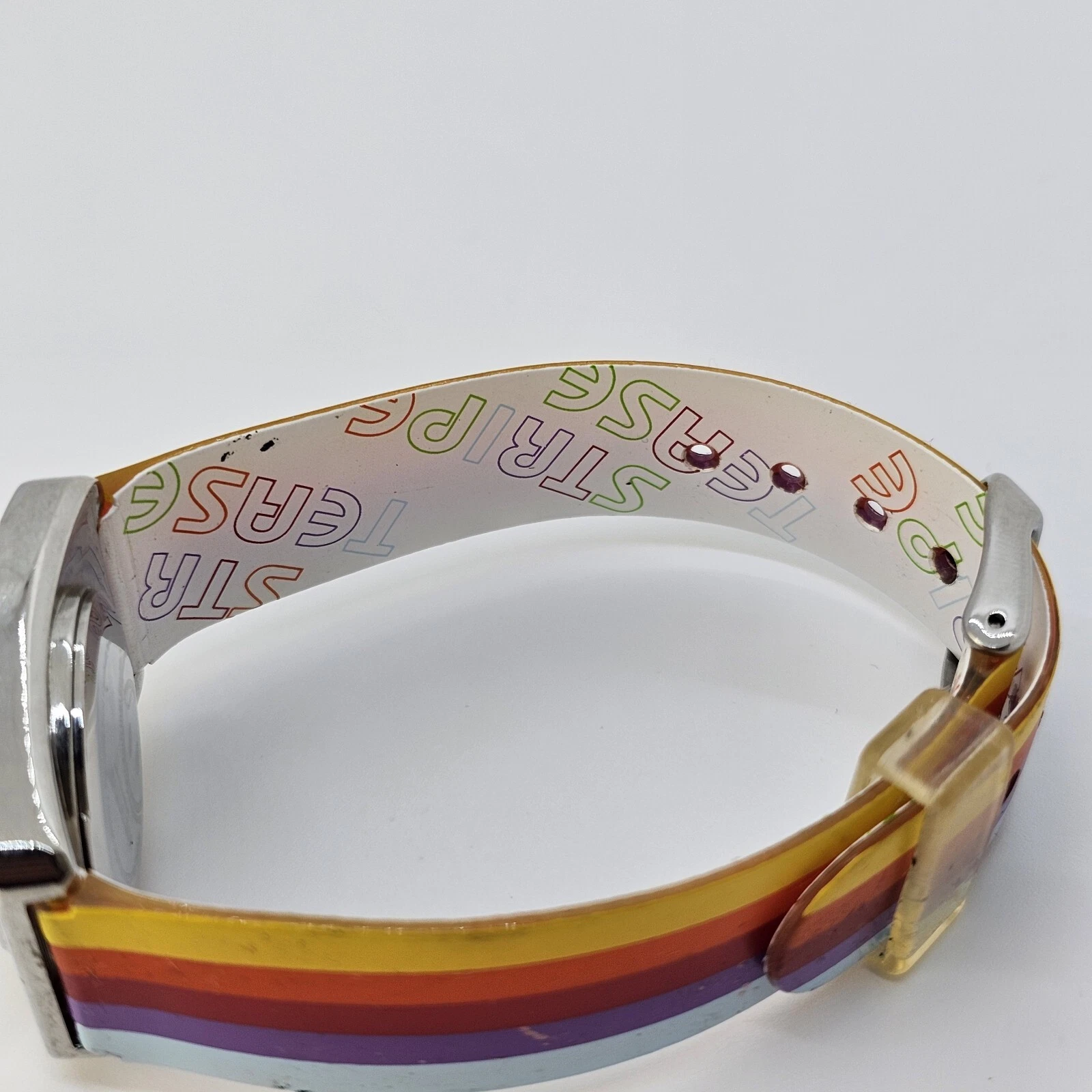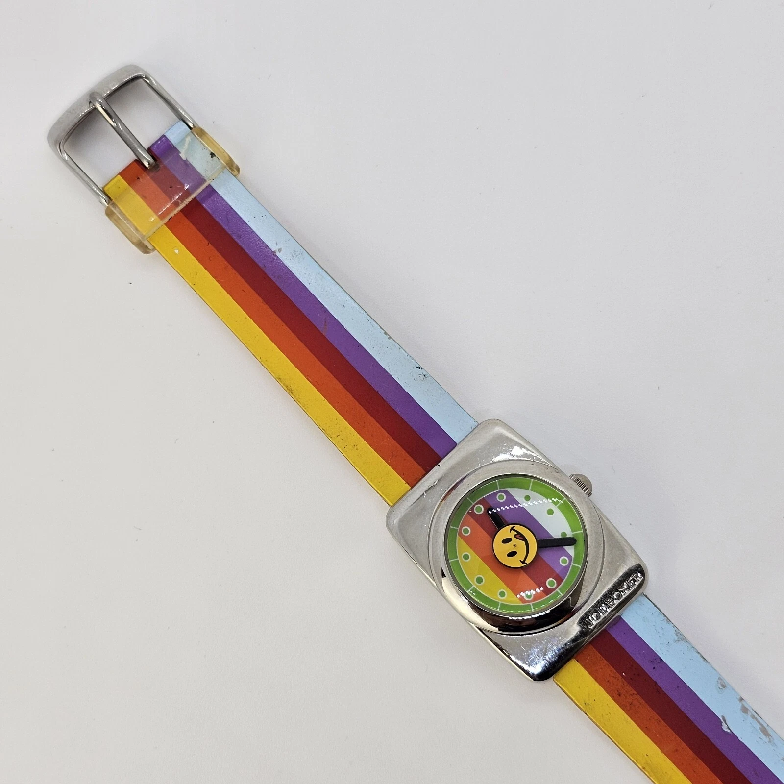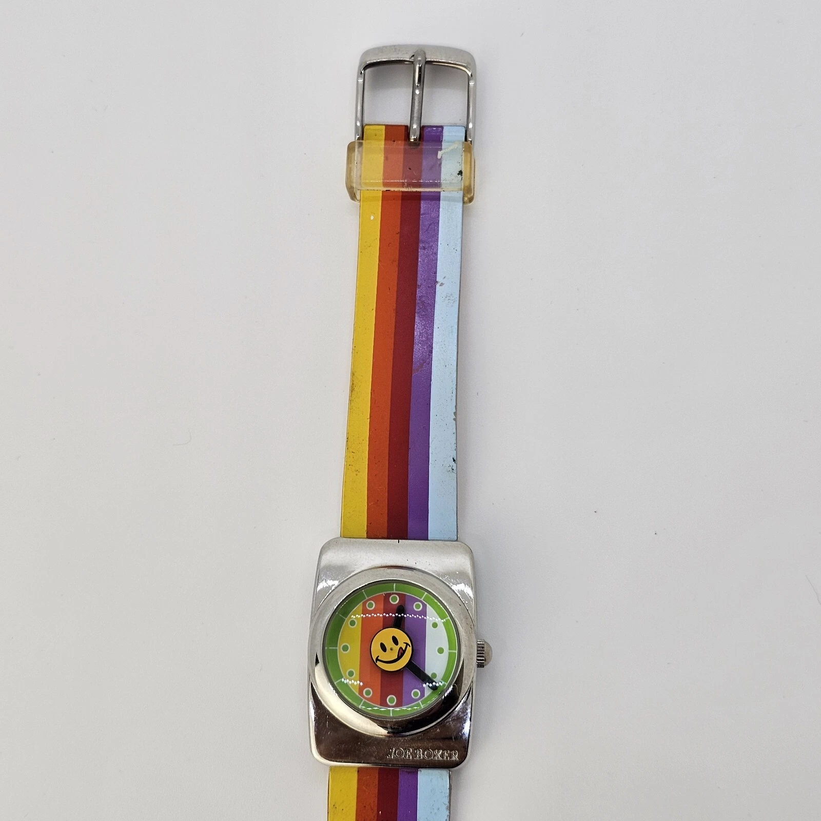 VTG Joe Boxer Women's Watch 24MM Smiley Face Rainbow Plastic Band New Battery