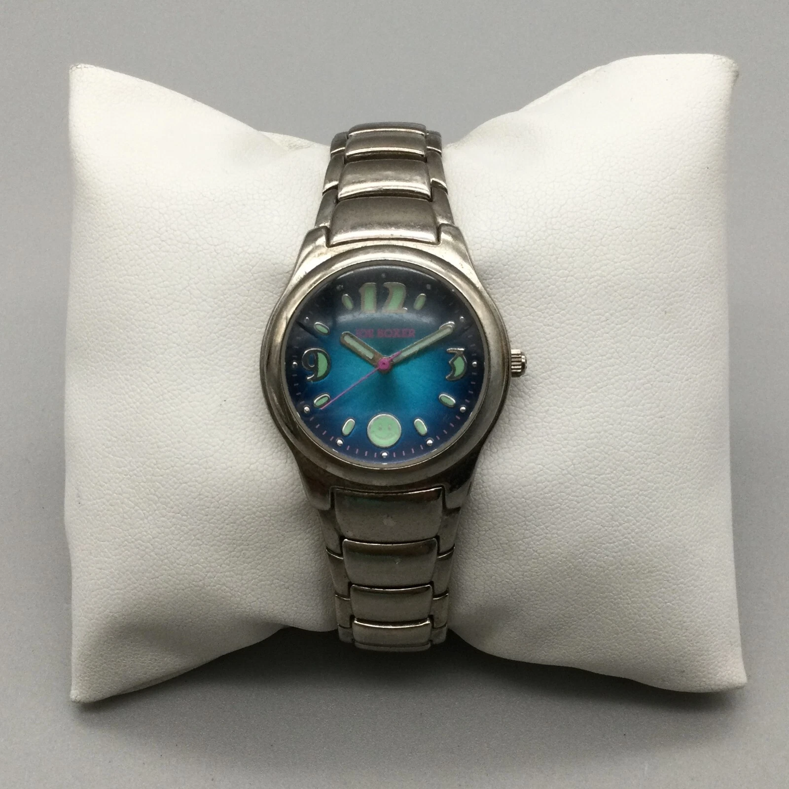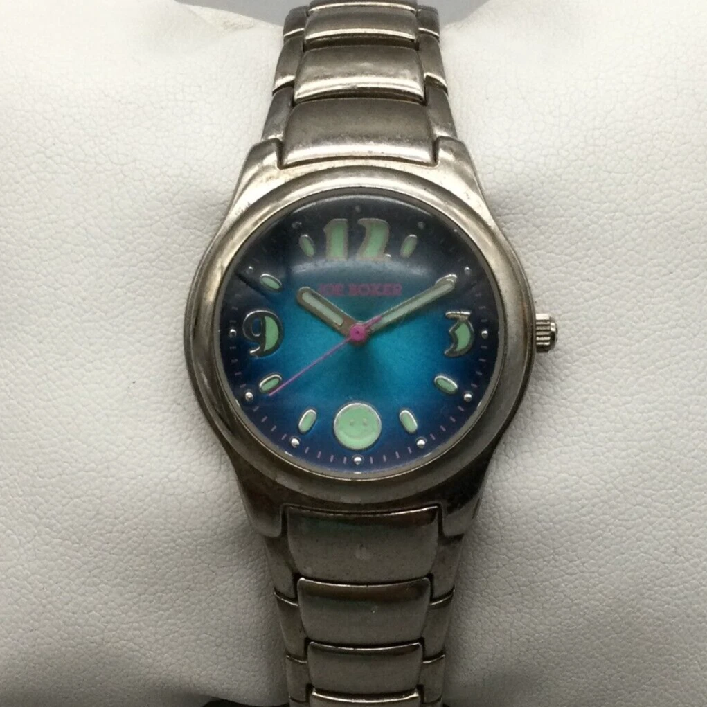 Vintage Joe Boxer Watch Women 32mm Silver Tone Ombre Blue Dial New Battery 7.25"