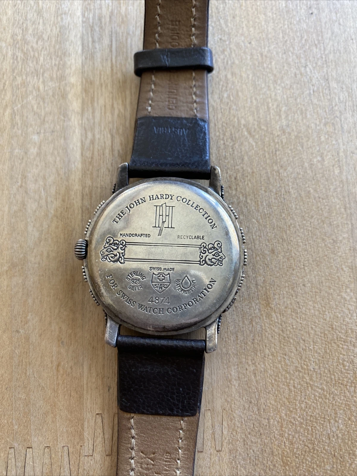 John Hardy Sterling Watch Swiss 4874 Made with Brown Leather Band