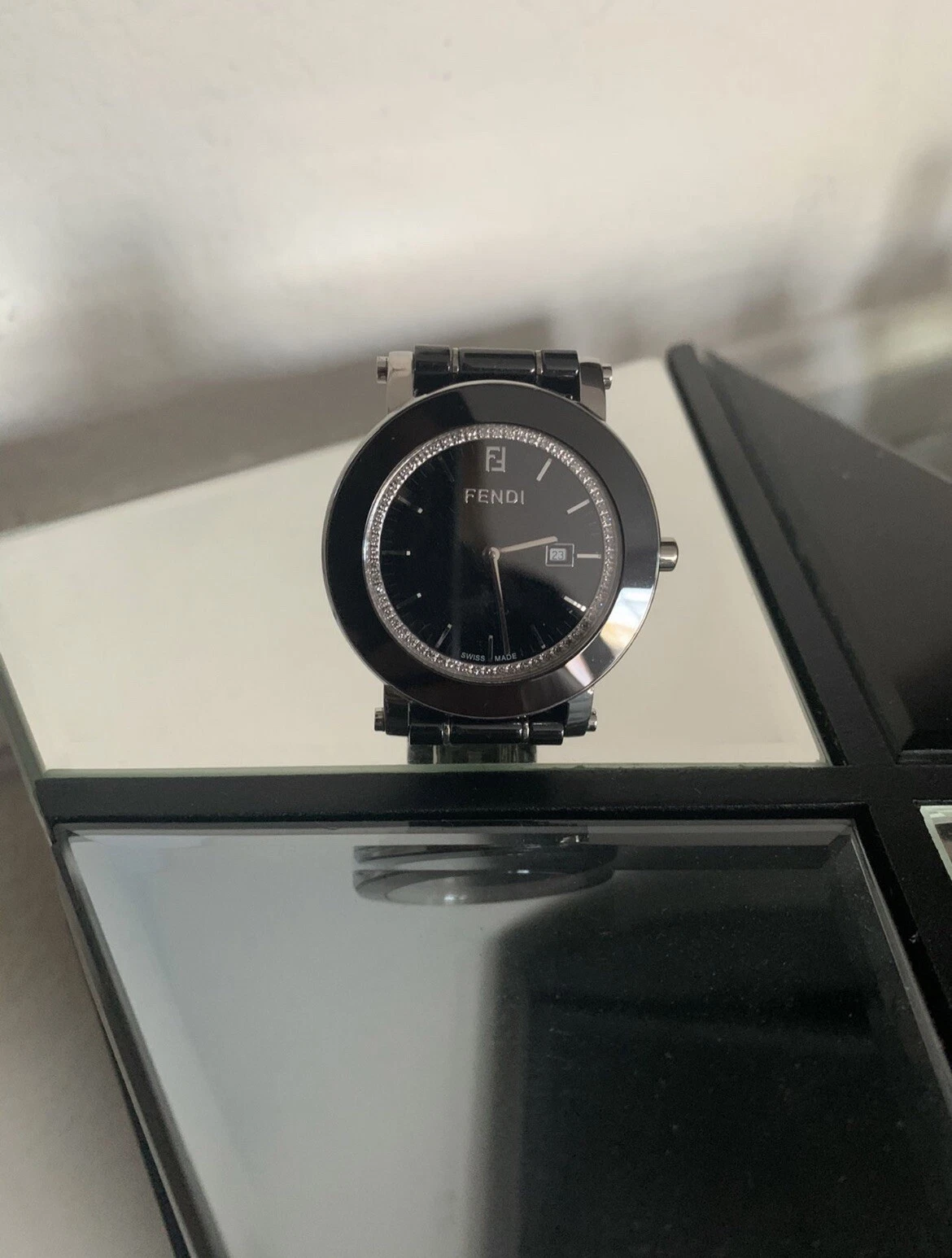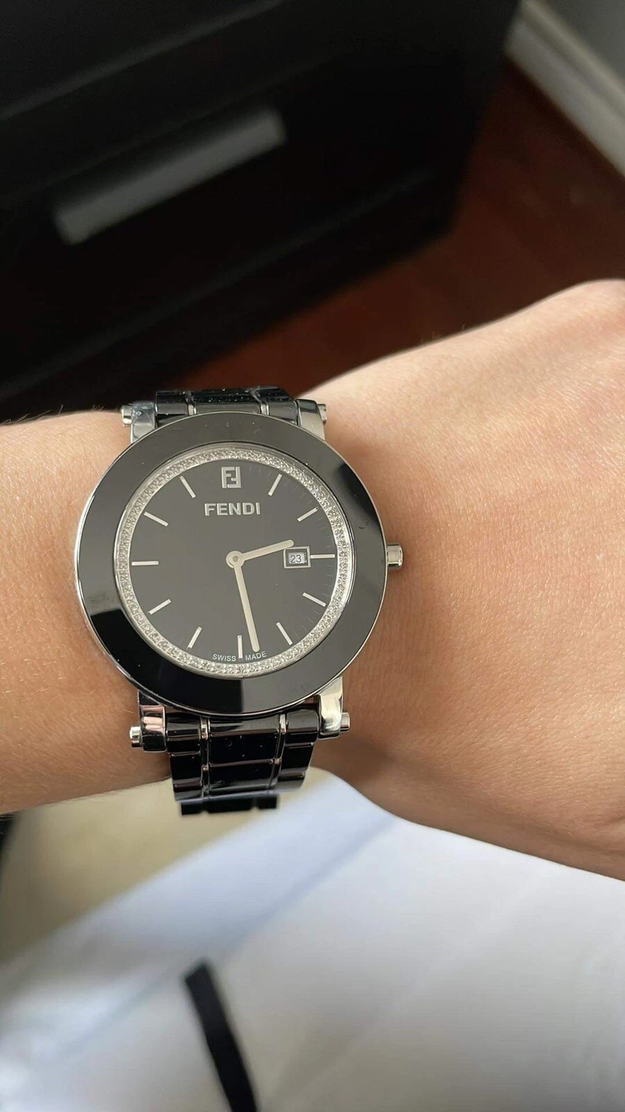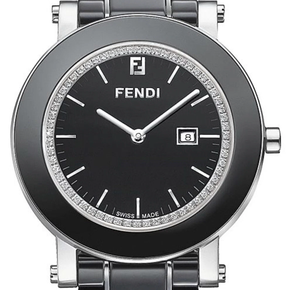 Fendi Black Ceramic Round Diamonds Bezel Swiss Quartz 38 mm Watch