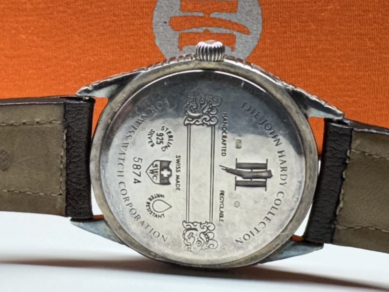 john hardy 925 sterling silver swiss made handcrafted wristwatch with box