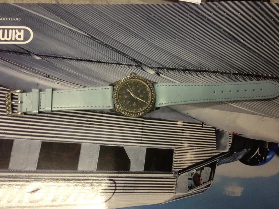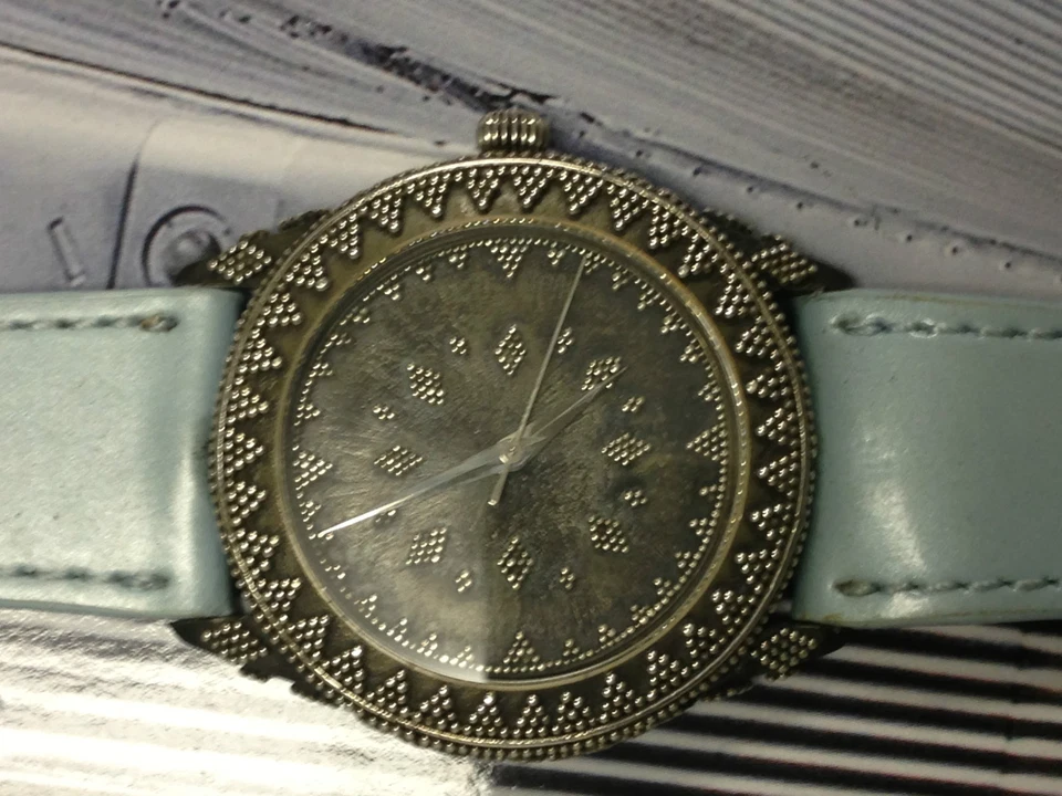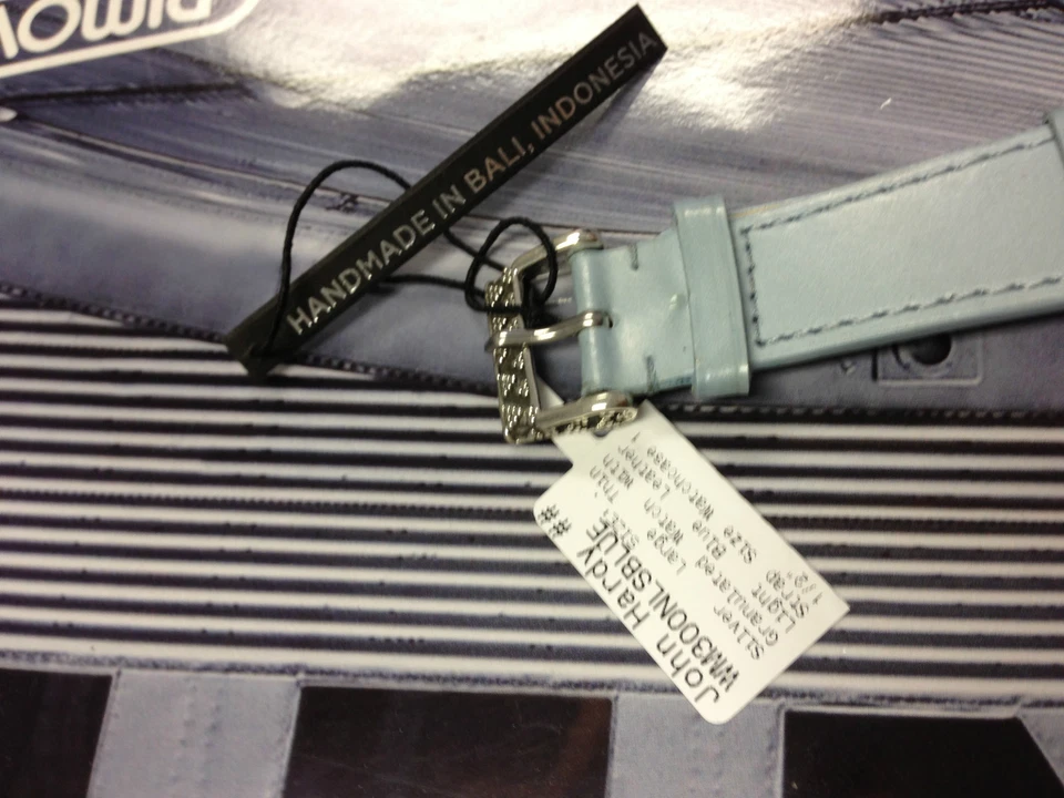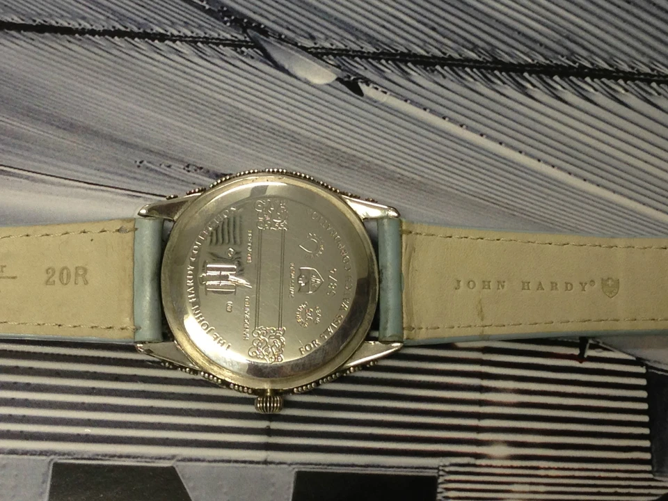 JOHN HARDY SS LARGE 1 1/2" THIN GRANULATED WATCH WITH LIGHT BLUE LEATHER STRAP