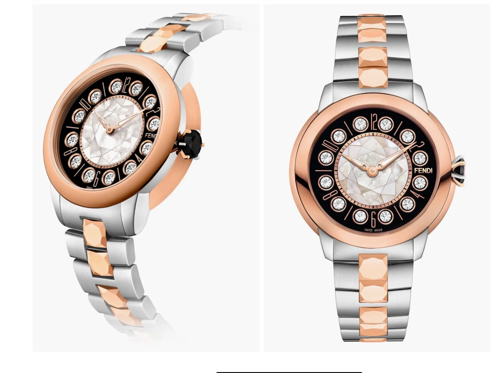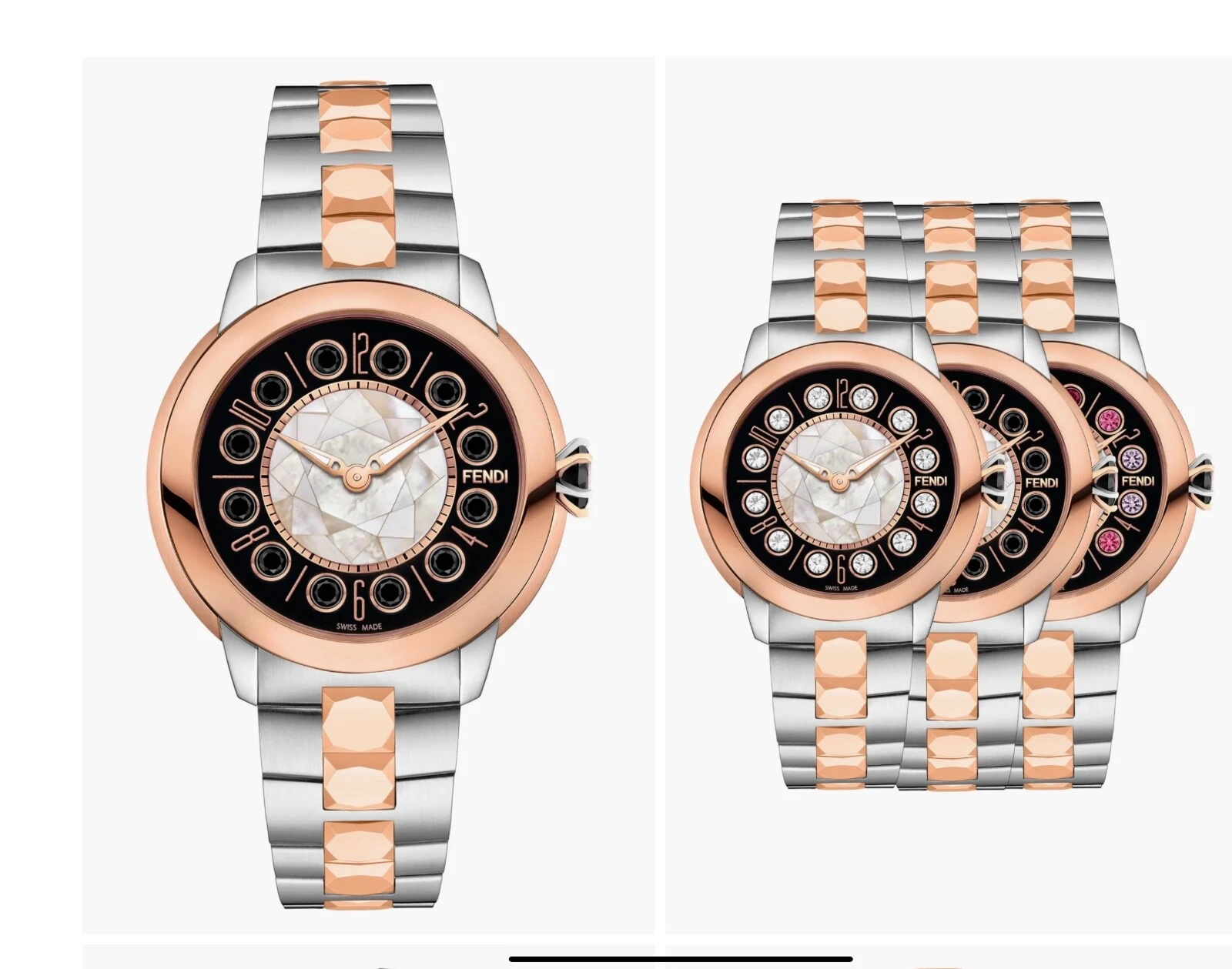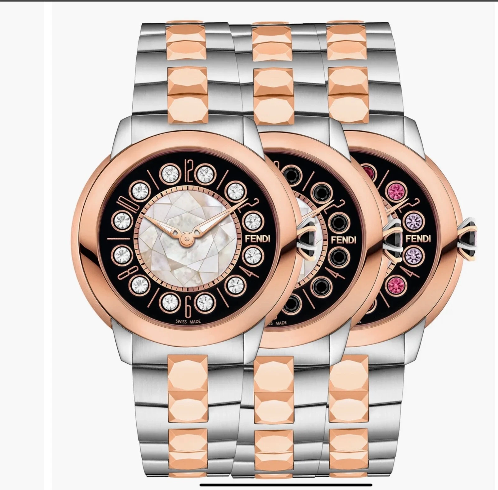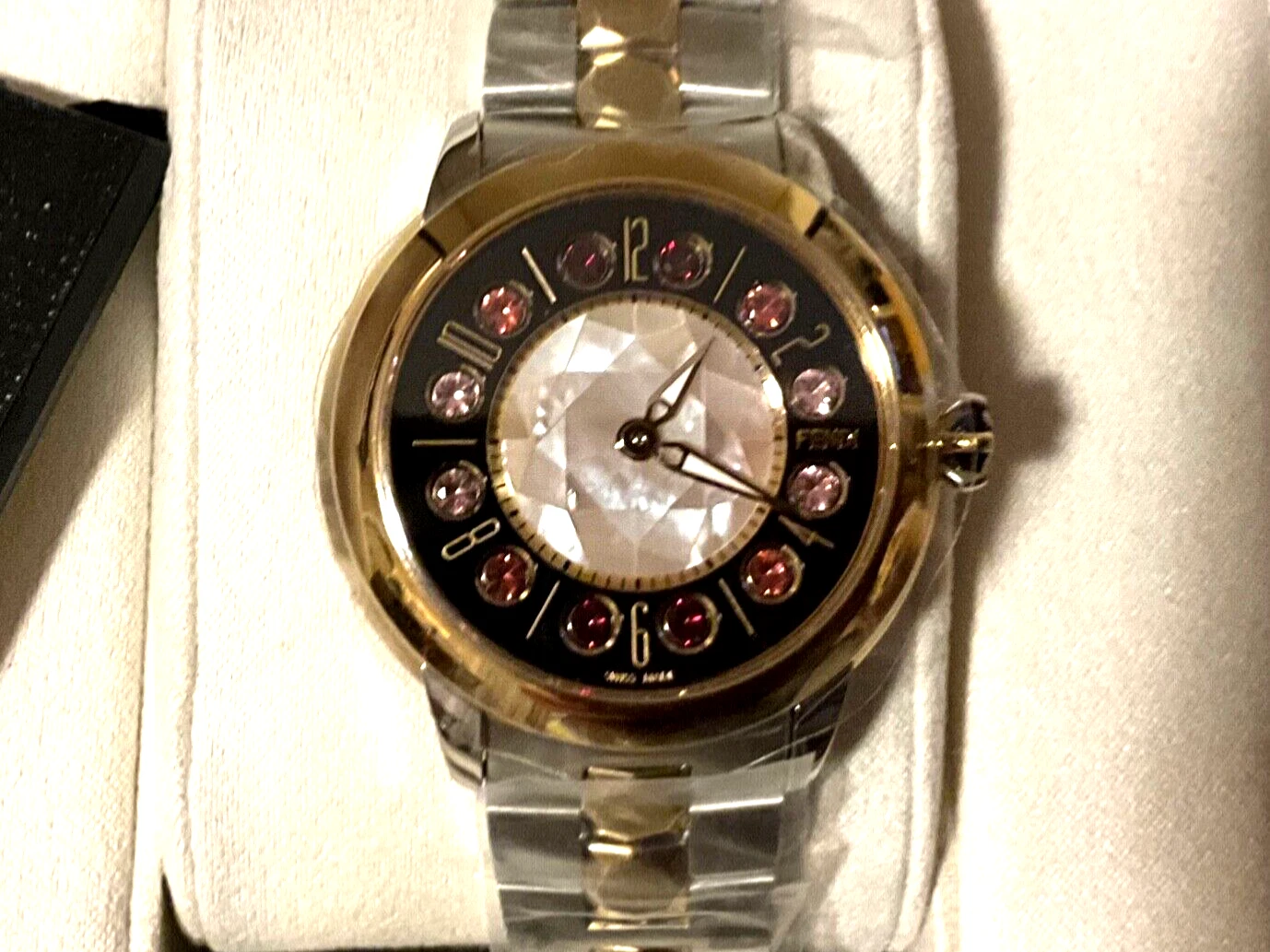 Fendi IShine woman's stainless steel watch, 18 Kt gold plated, mother of pearl
