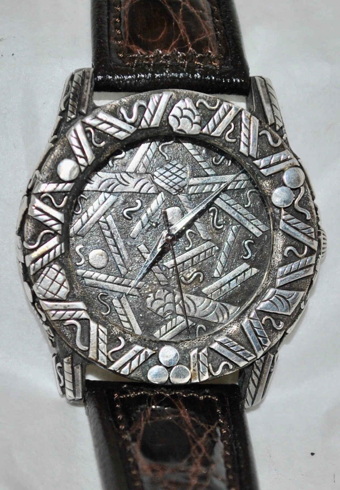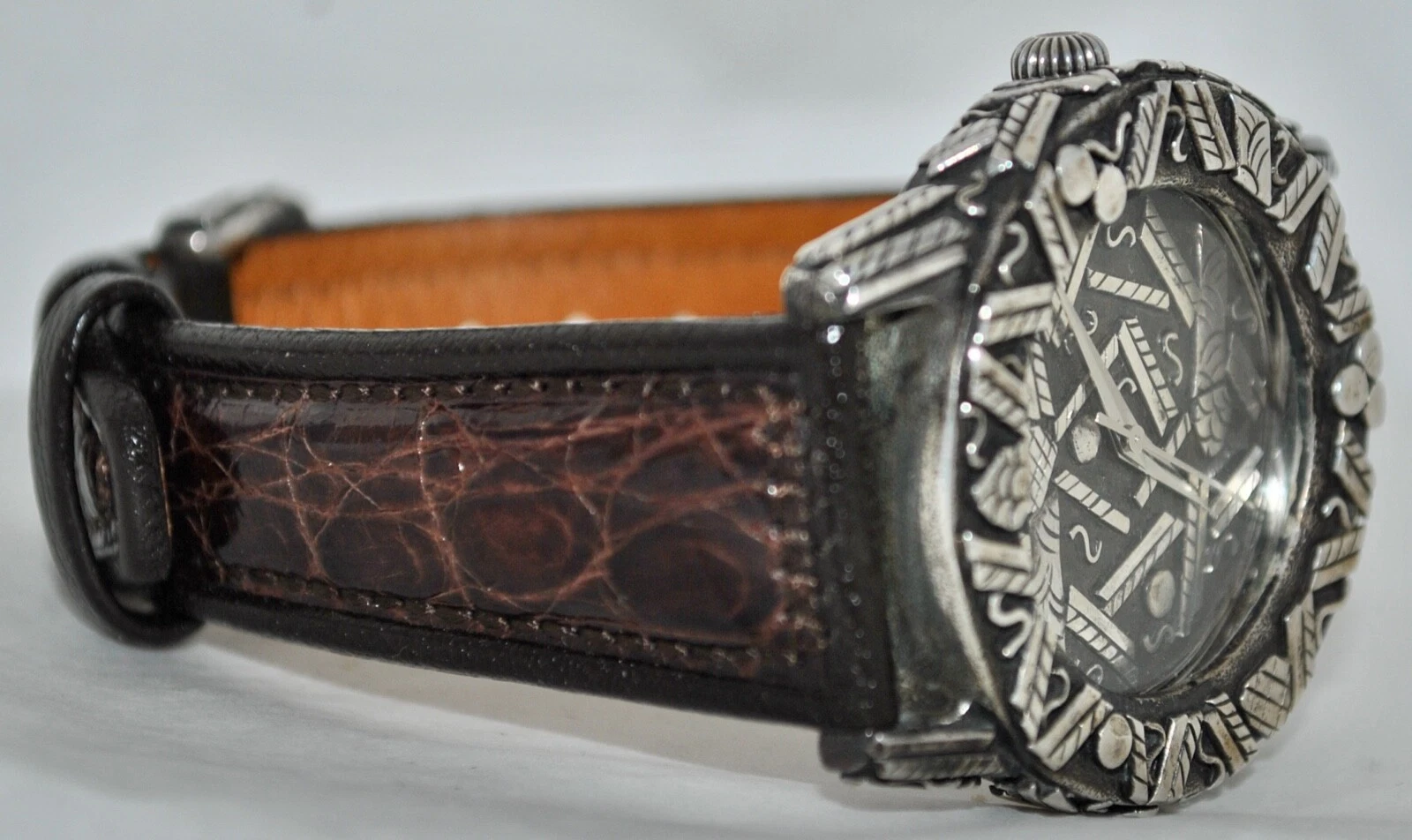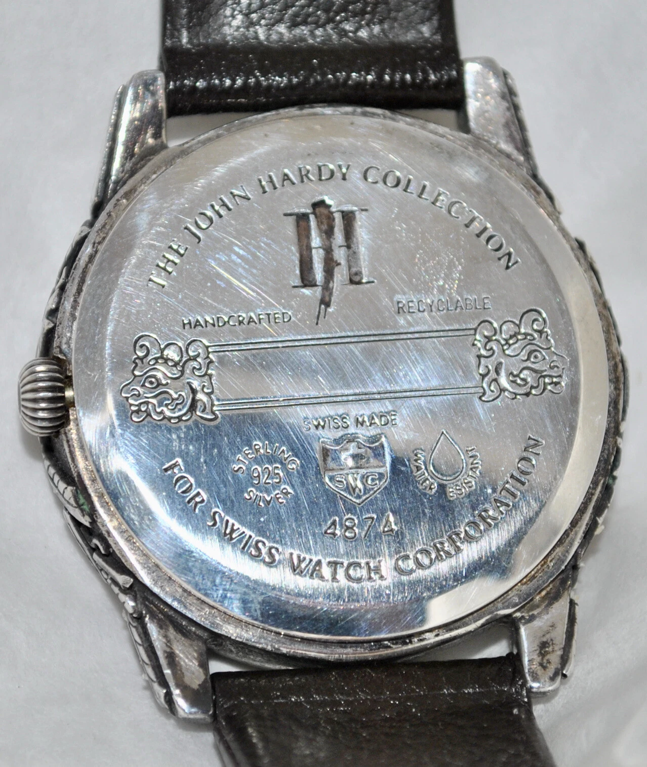 John Hardy Sterling Handcrafted Swiss Watch Funky Design w/Box & Croc Band 4874