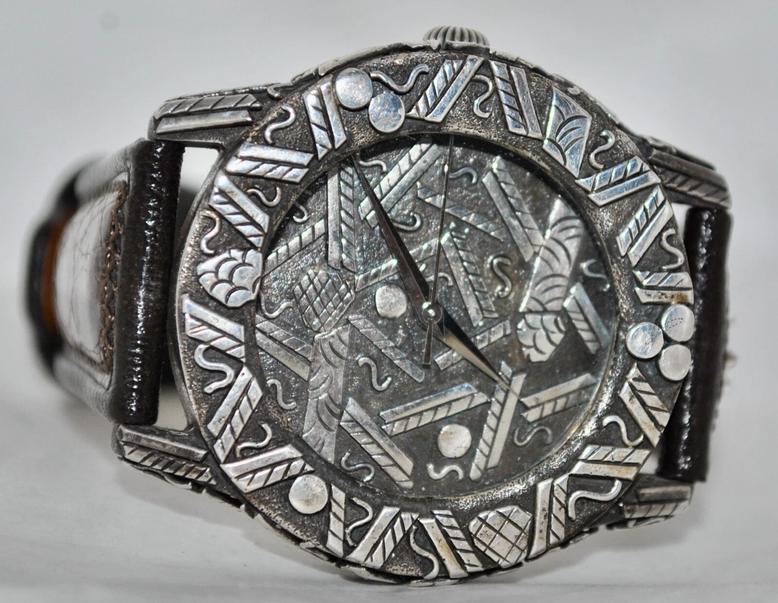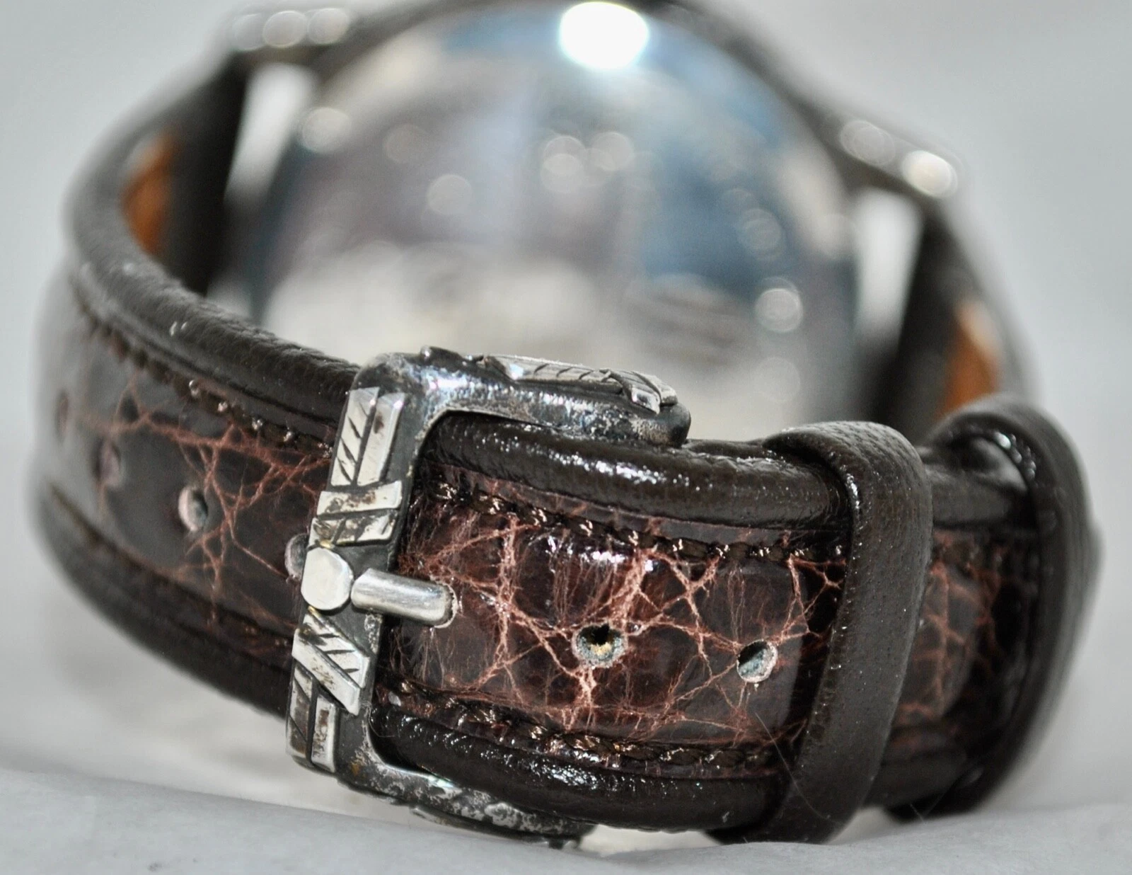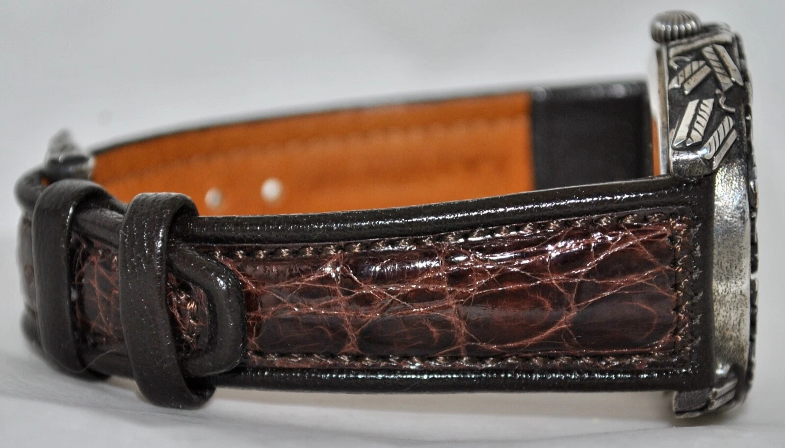John Hardy Sterling Handcrafted Swiss Watch Funky Design w/Box & Croc Band 4874