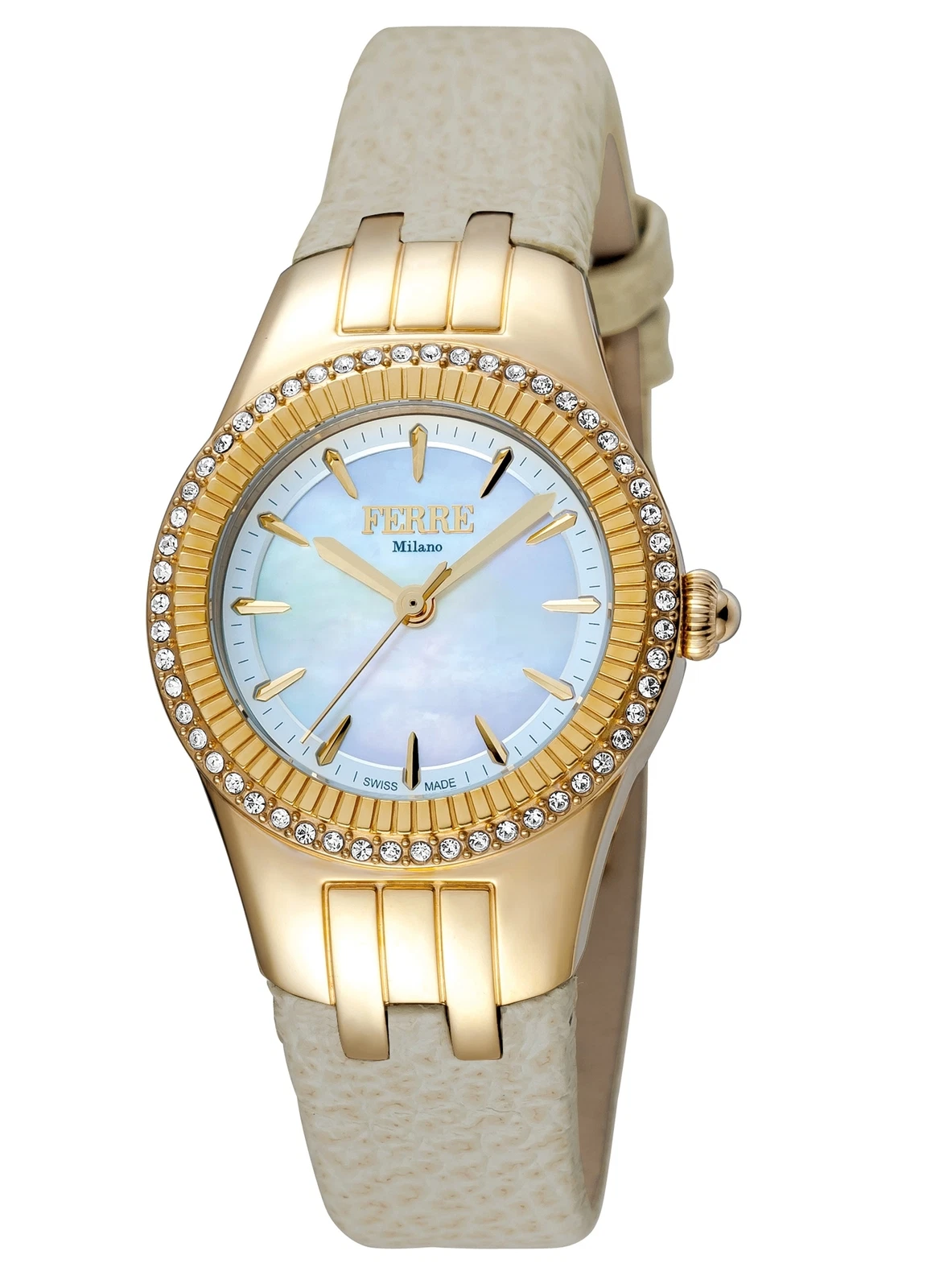Ferre Milano Women's FM1L089L0021 Gold IP Steel Cream Leather Wristwatch