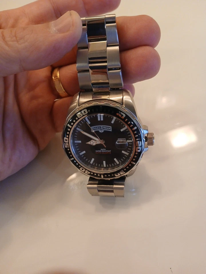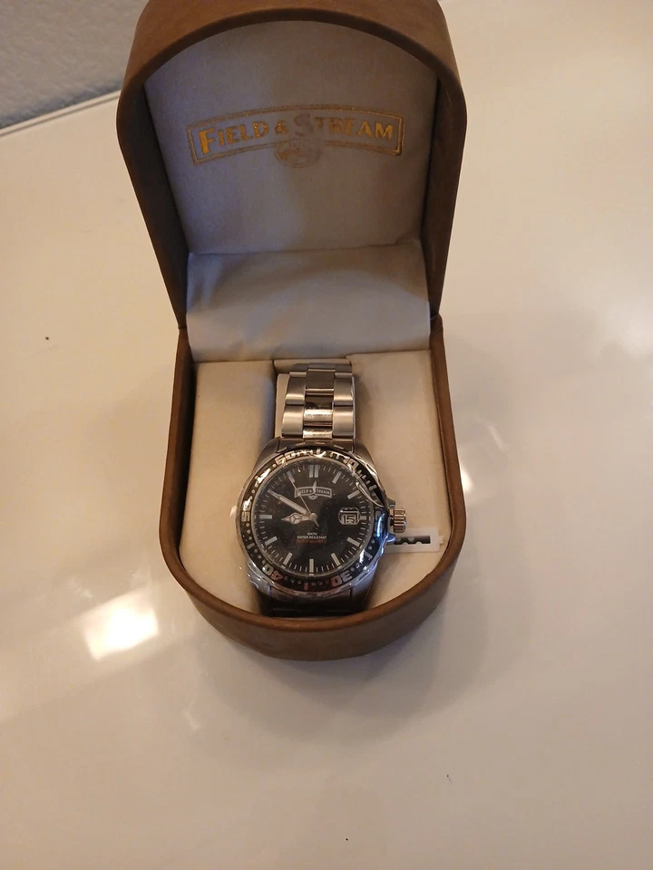 Field & Stream Auto-Quartz Date Black Dial St. Steel Men's Watch F196GKBS 10 ATM