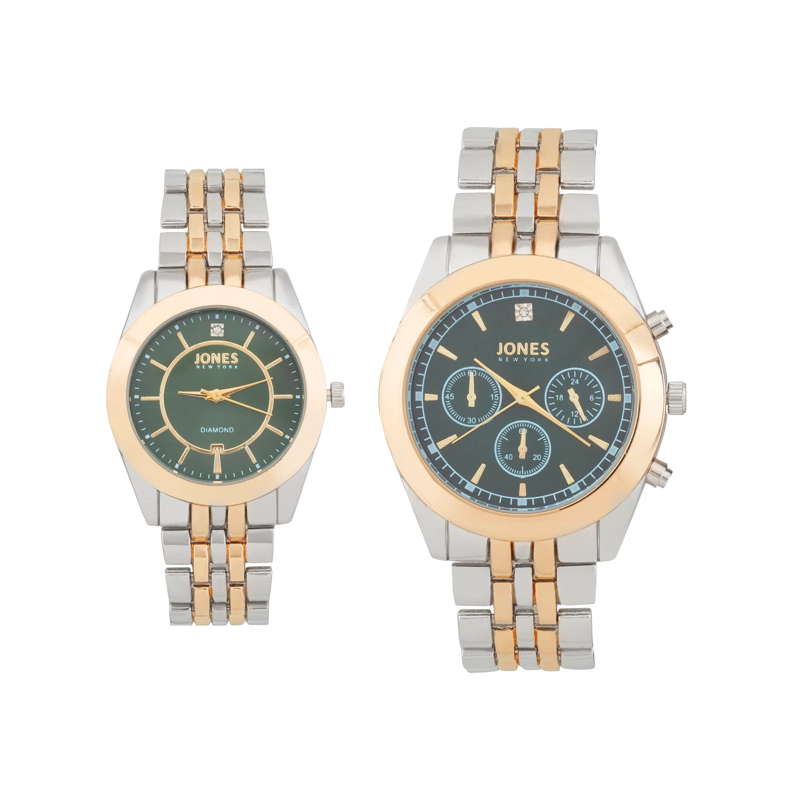 Jones New York Unisex Green/Gold/Silver His & Hers Watch Set